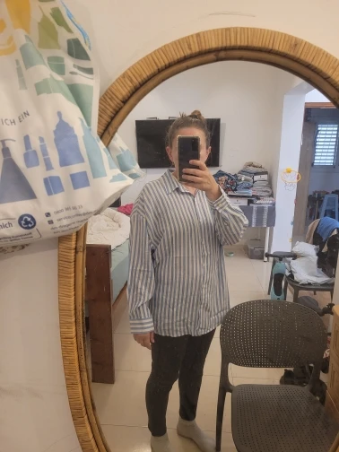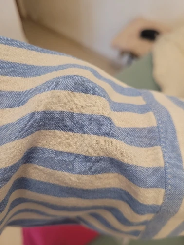 Рубашка тонкая летняя,форму не держит,сшита аккуратно,слишком широкая,на 44р и рост 165-гиппер оверсайз,больше подойдет на высокии рост от 170,рукава длинные,расцветка полосатого матраса🤔8723 u. 30 апреля 2025