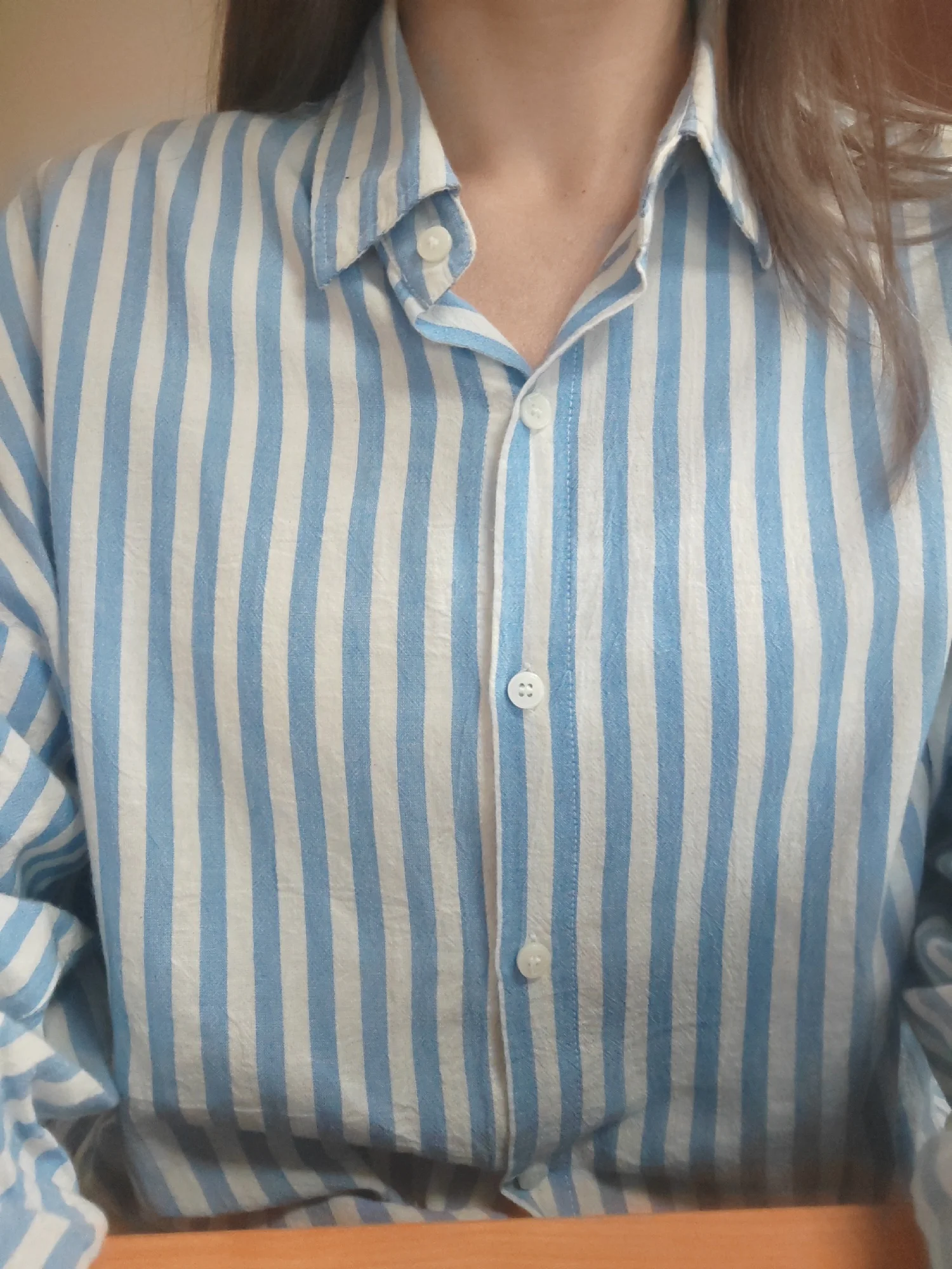 Бесподобная рубашка! Красивый голубой с красивым бежевым. Натуральная пластичная ткань. Сшита очень аккуратно.Olga L. 10 февраля 2025