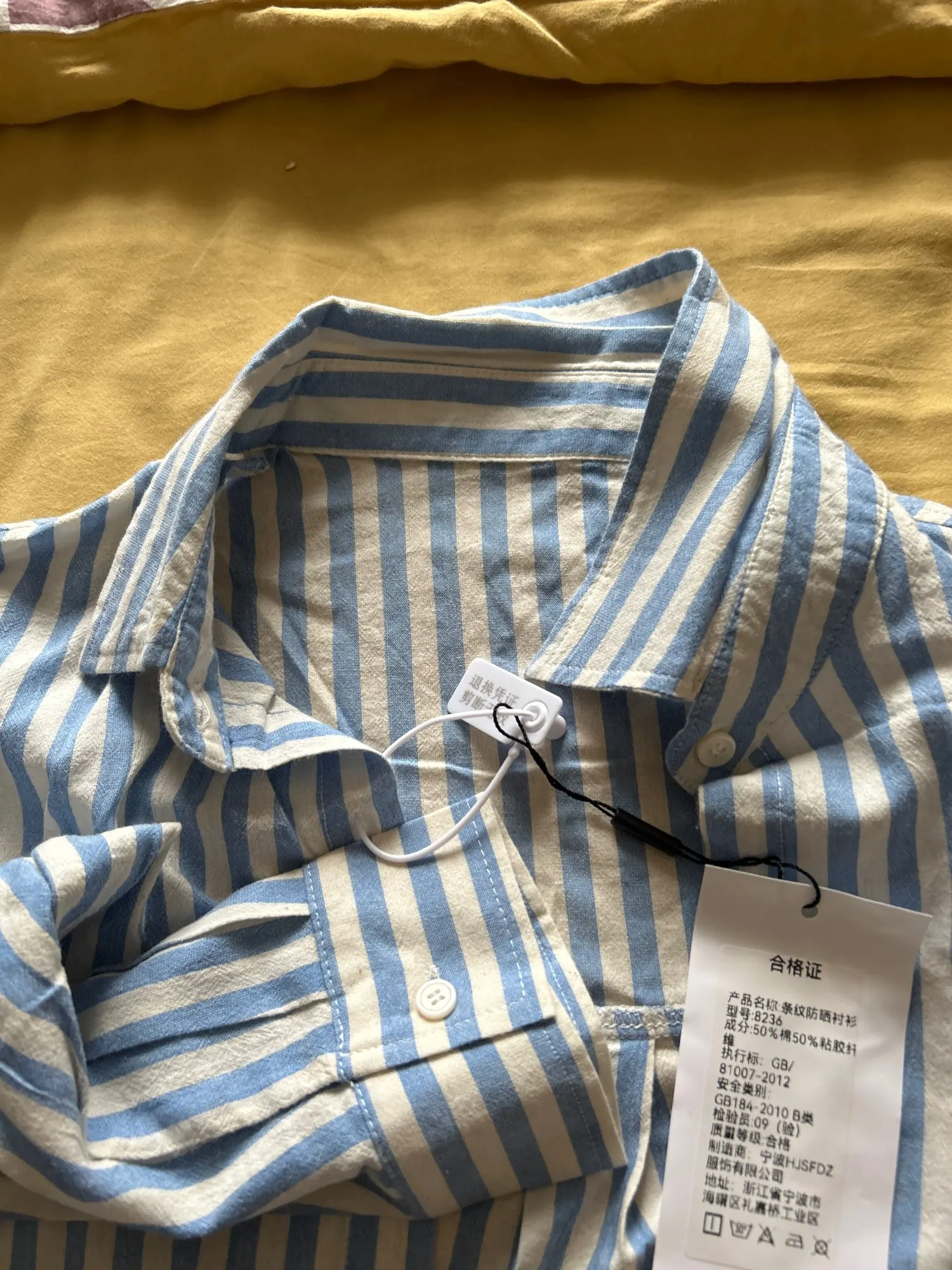 Полоски которые должны быть белыми с серо-желтым оттенком, не чисто белый цвет. Смотрится грязноватой. В целом сшита хорошо, мягкая, не колется.