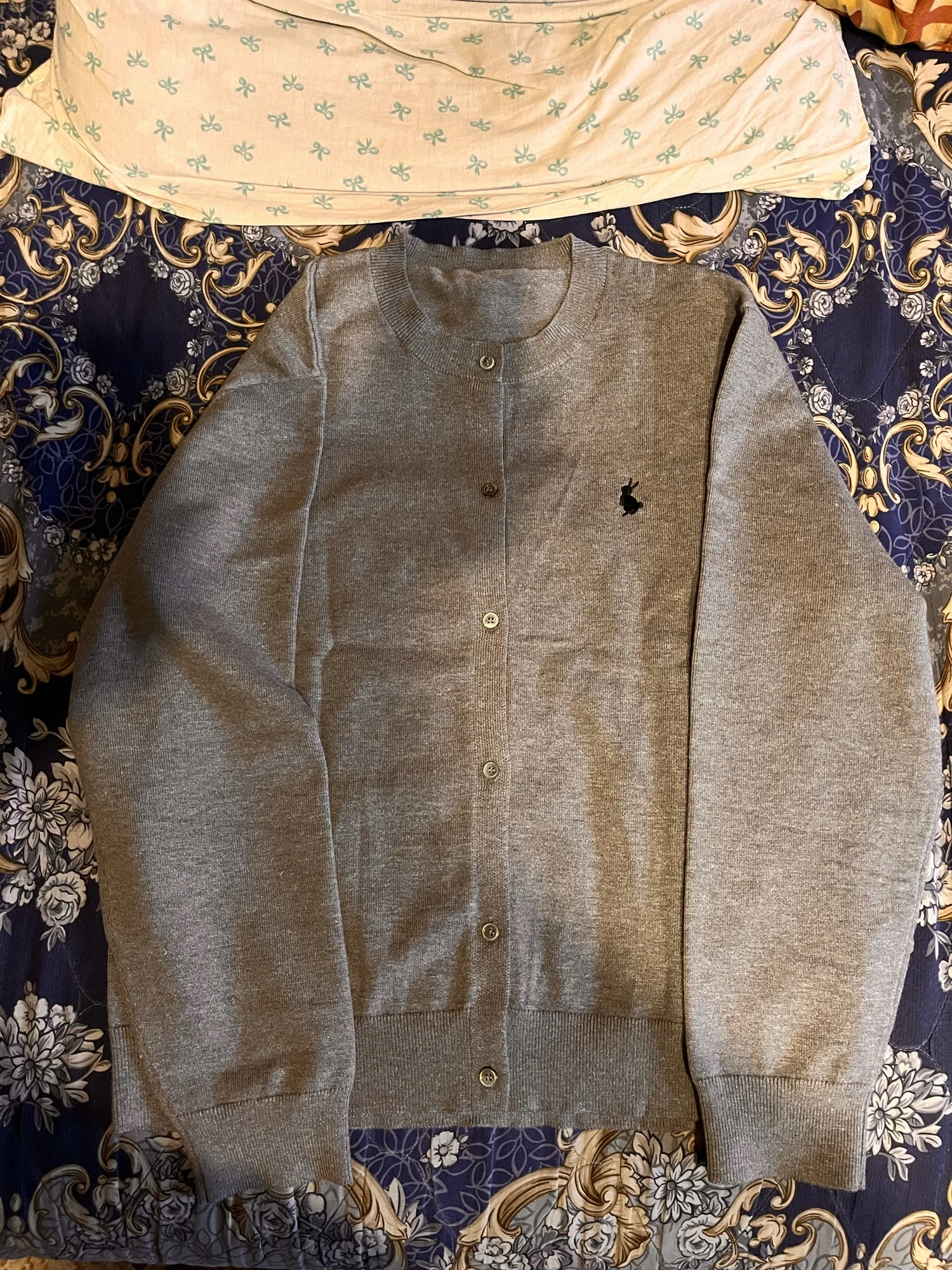 Отличный кардиган. Ткань мягкая, сшит качественно, зайка милый, а главное - по размеру XL на российский 48 сел идеально. Ни разу не жалею о покупке. Люблю носить подобные кофточки зимой, на футболку. Уже покупала продукцию данной фирмы. В целом, всегла оставалась довольна. Только один раз размер не подошел(( В общем, респект продавцу) Спасибо))