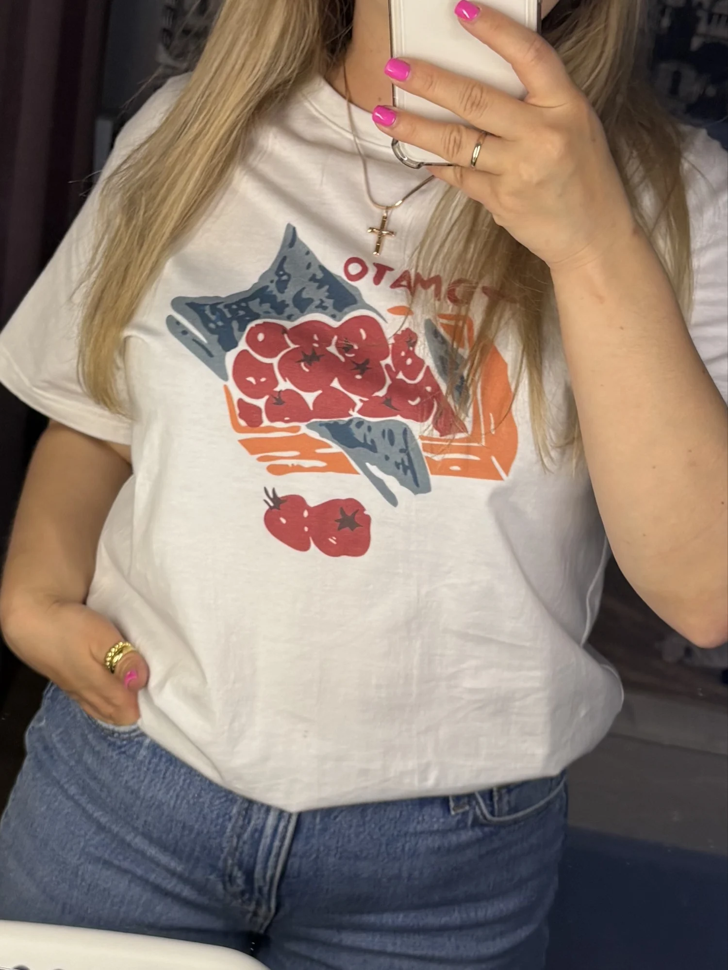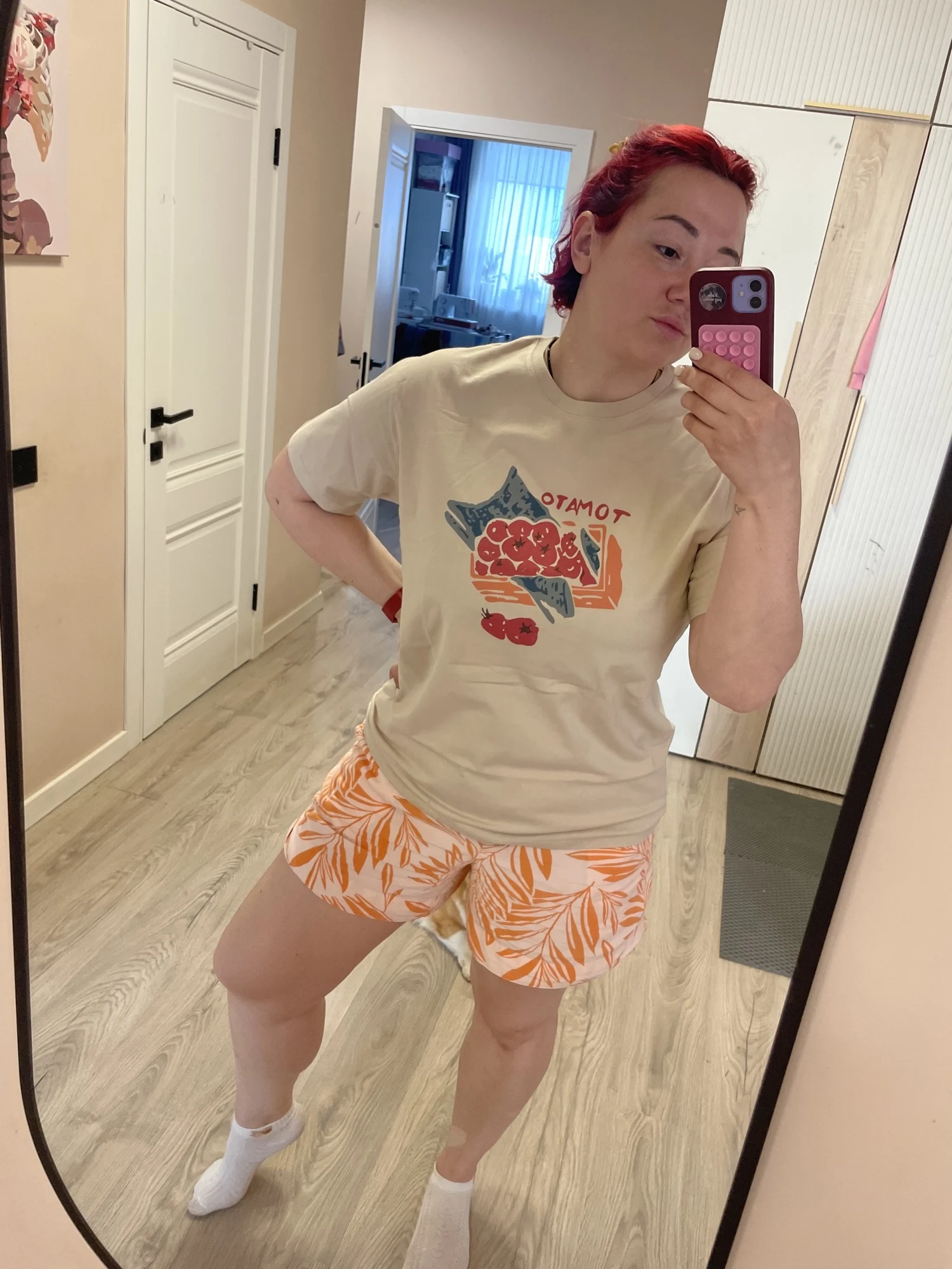 Супер футболка, на свой 46 взяла 48, отлично села. Но размеры на ярлыках разные- см фото. Ткань прекрасная, плотная и мягкая. Помидорки чудесные, в отпуск поедет!Helgla99 u. 3 июня 2025