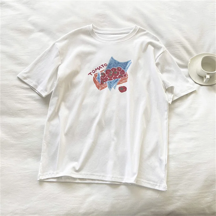 2022 Tomato Sweet 90s Trend Casual T-shirts Clothes Women Female Summer T...
