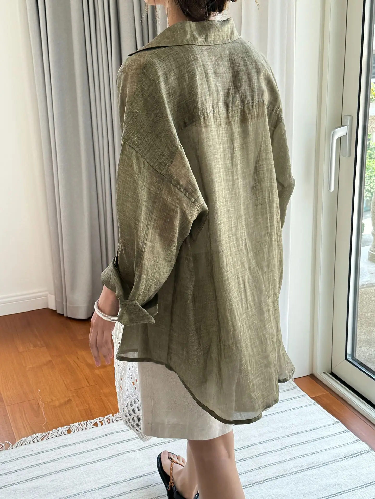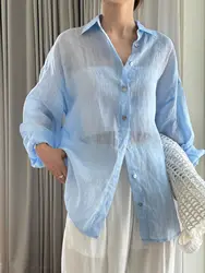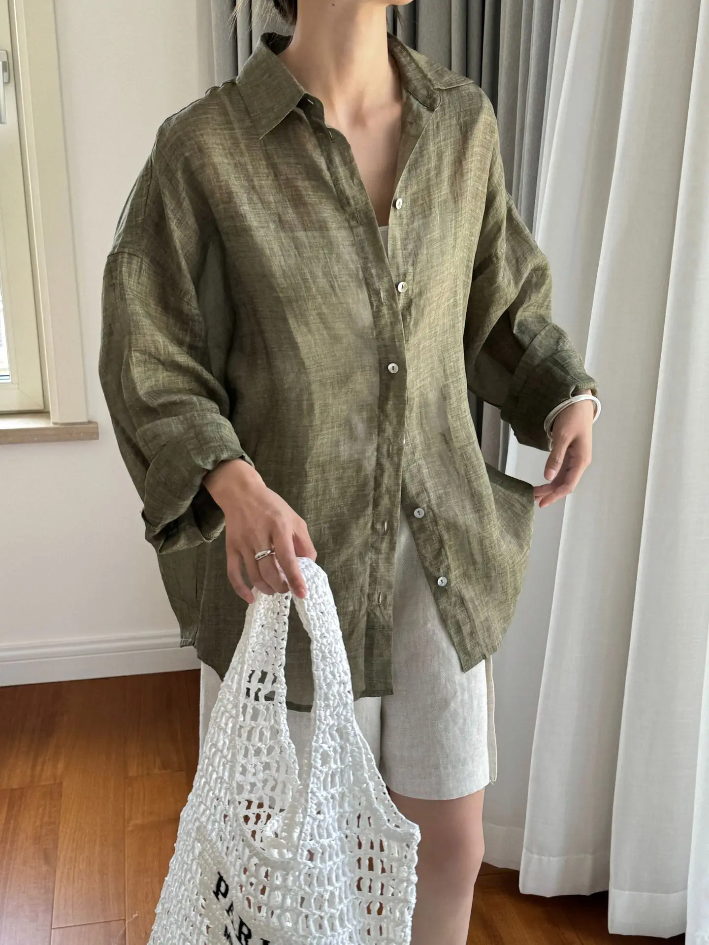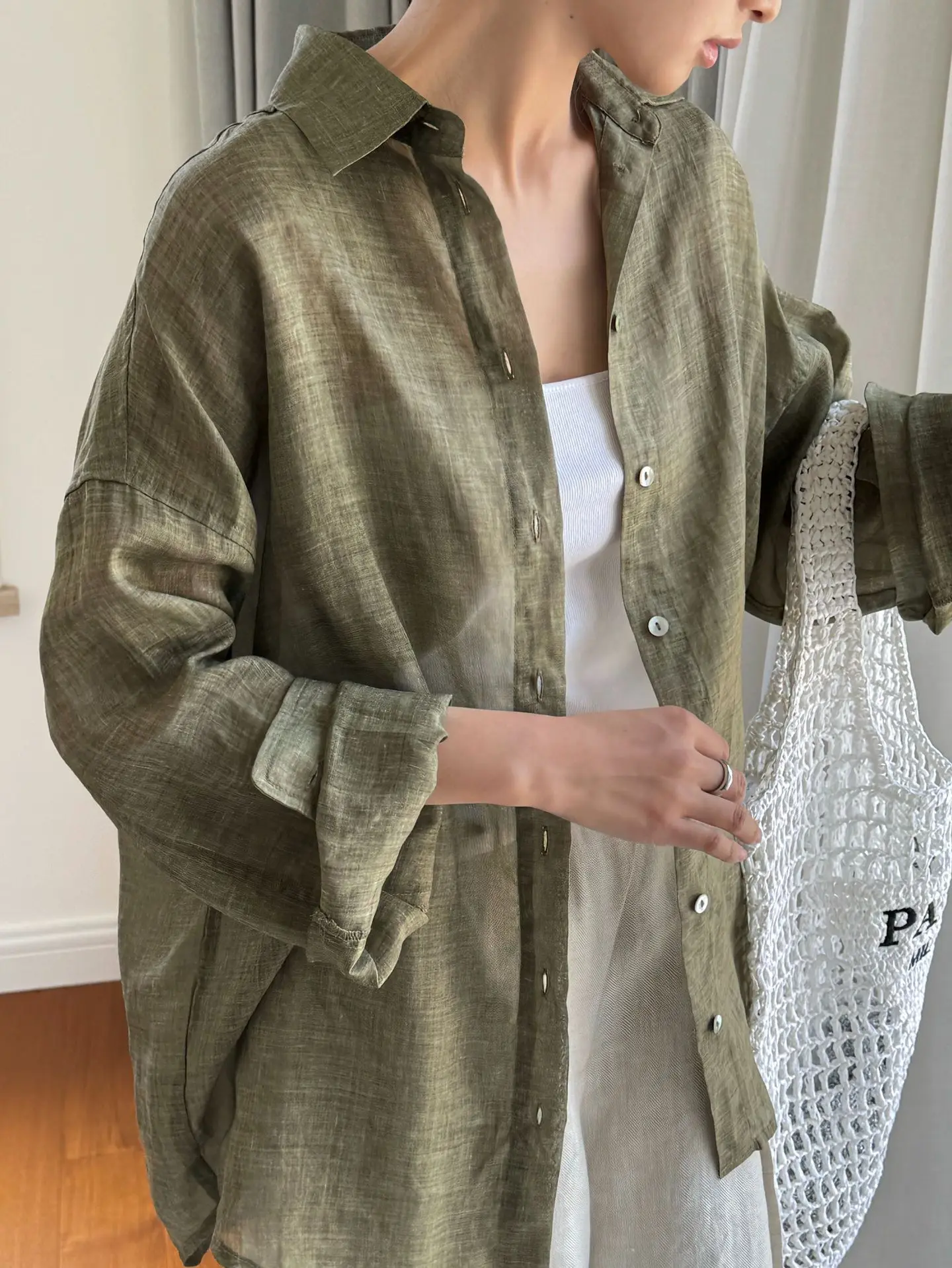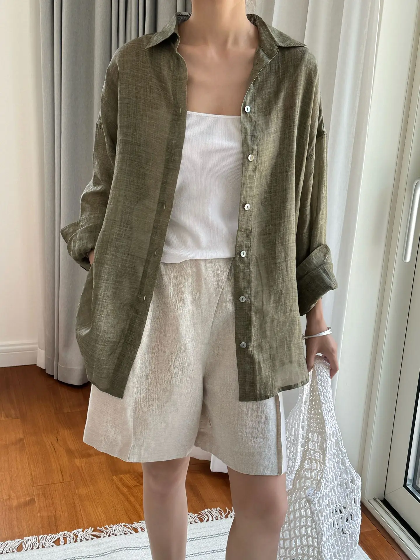 Spring and summer women's casual solid color lapel long sleeved loose fitting...