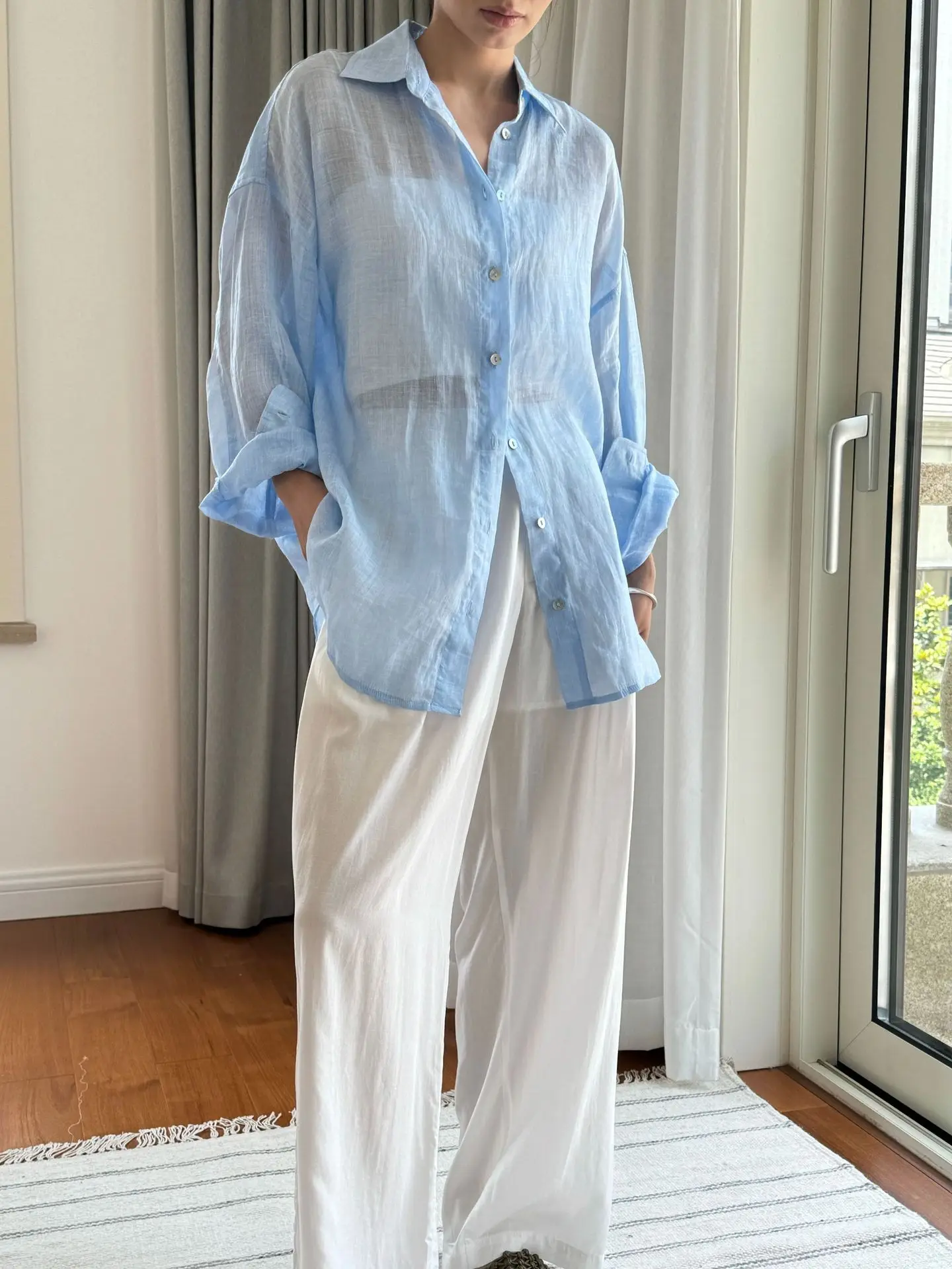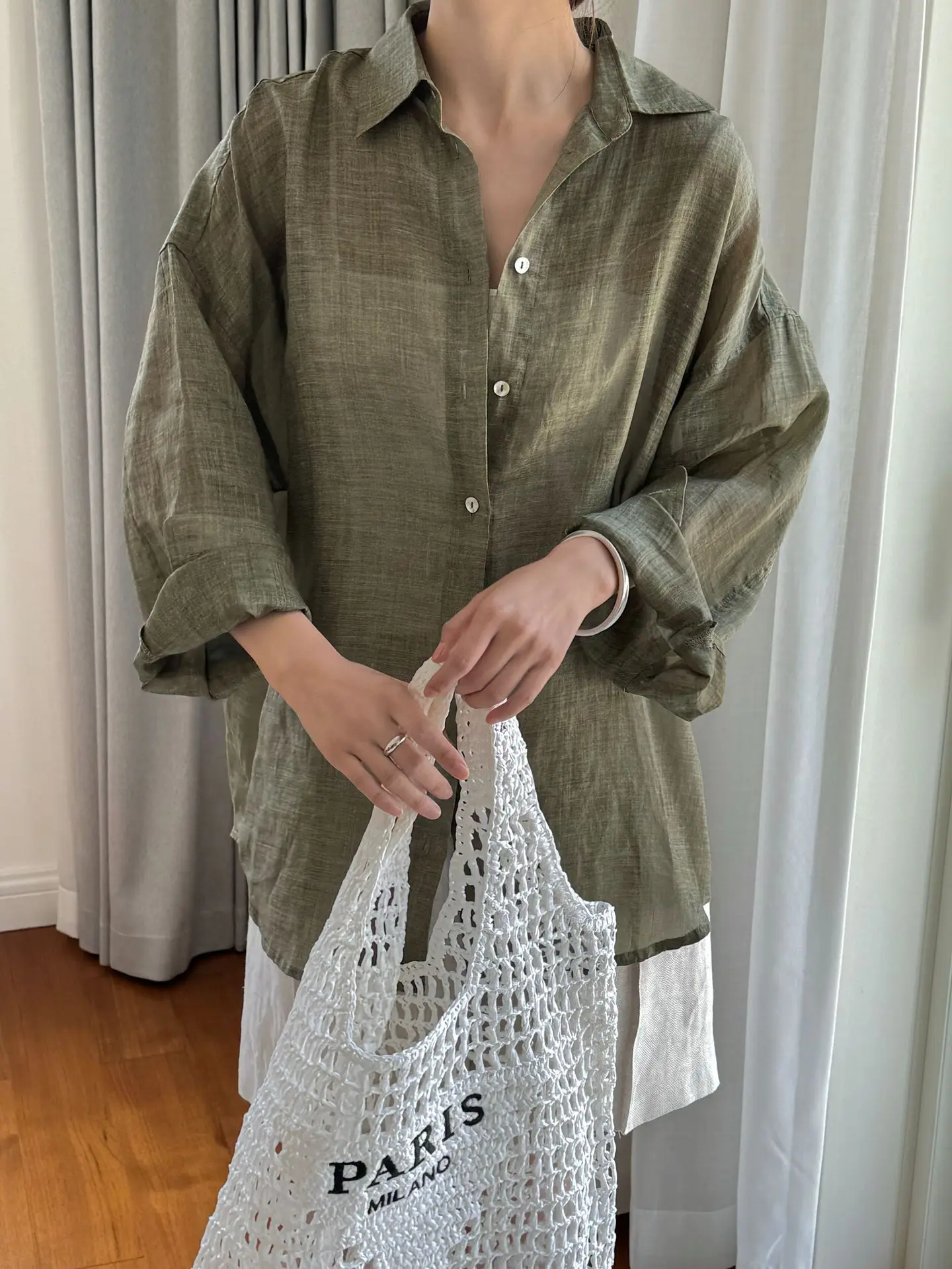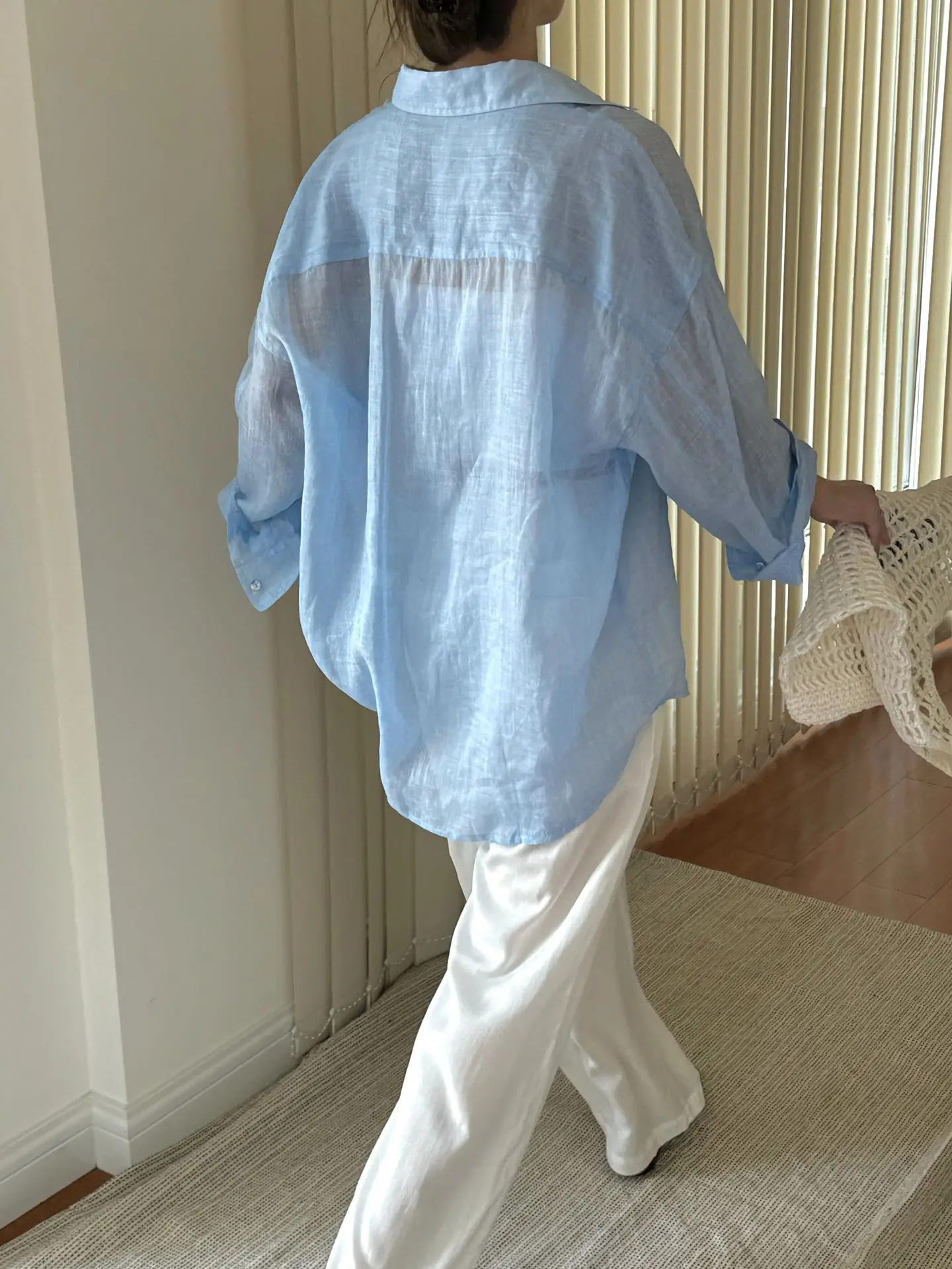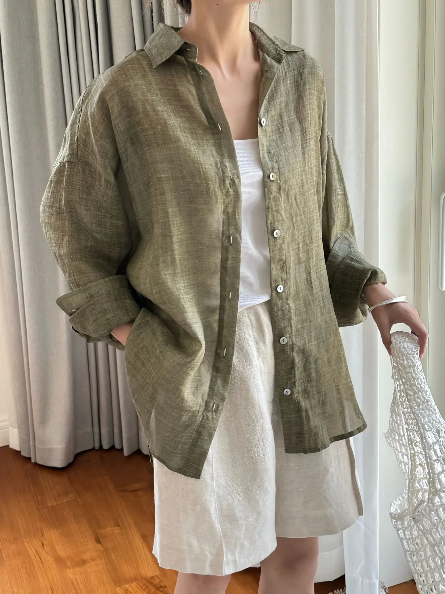Spring and summer women's casual solid color lapel long sleeved loose fitting...