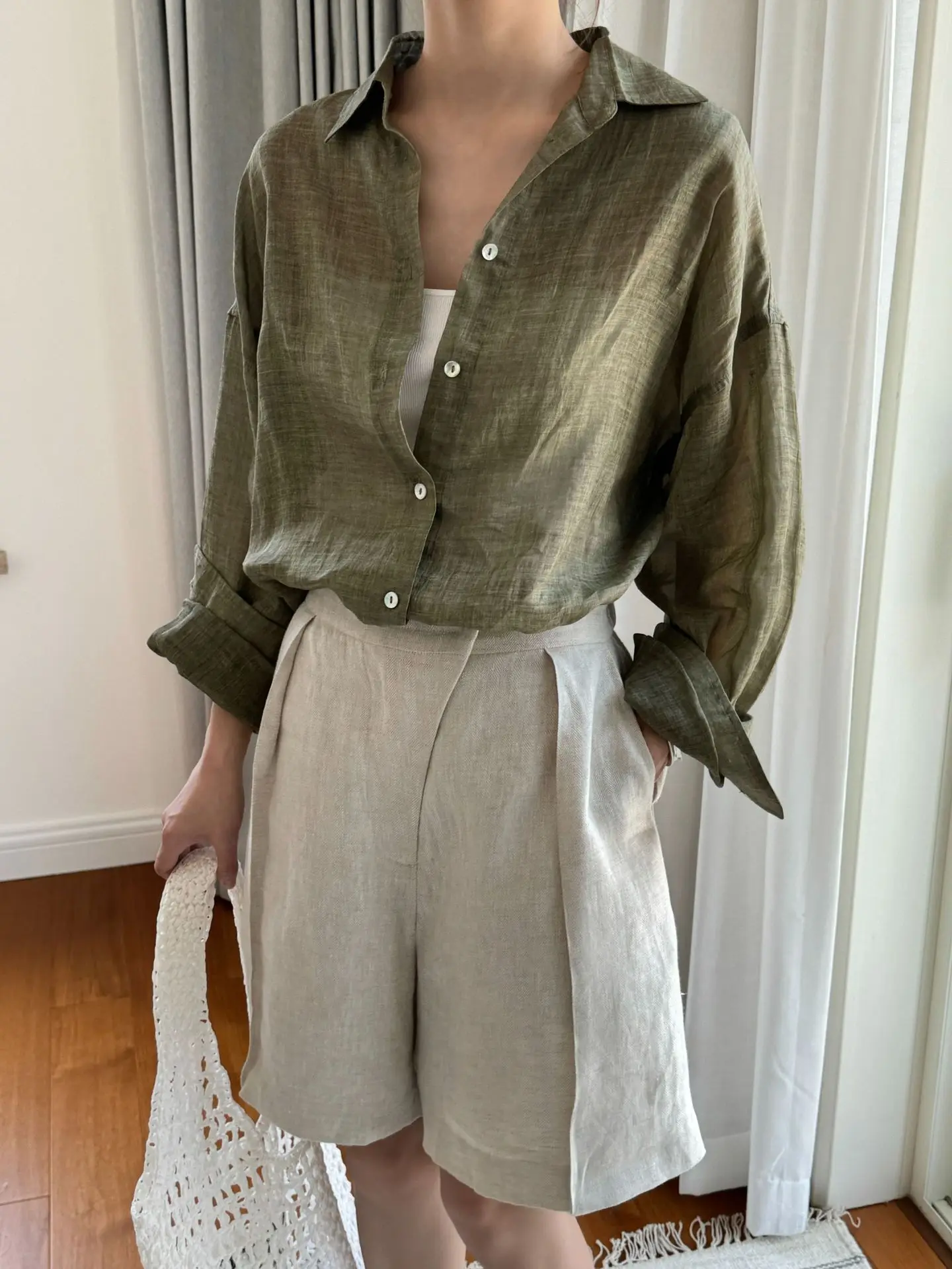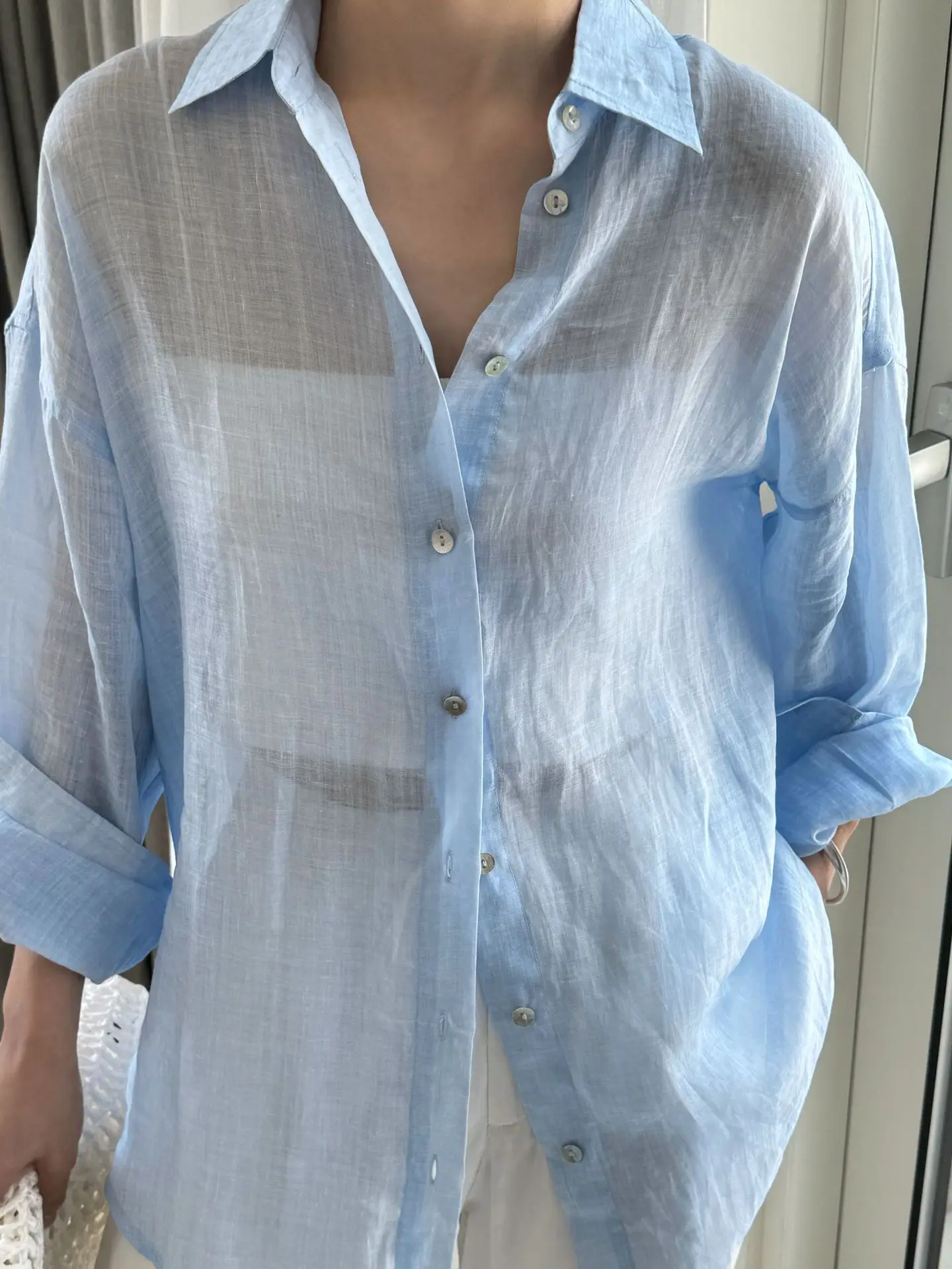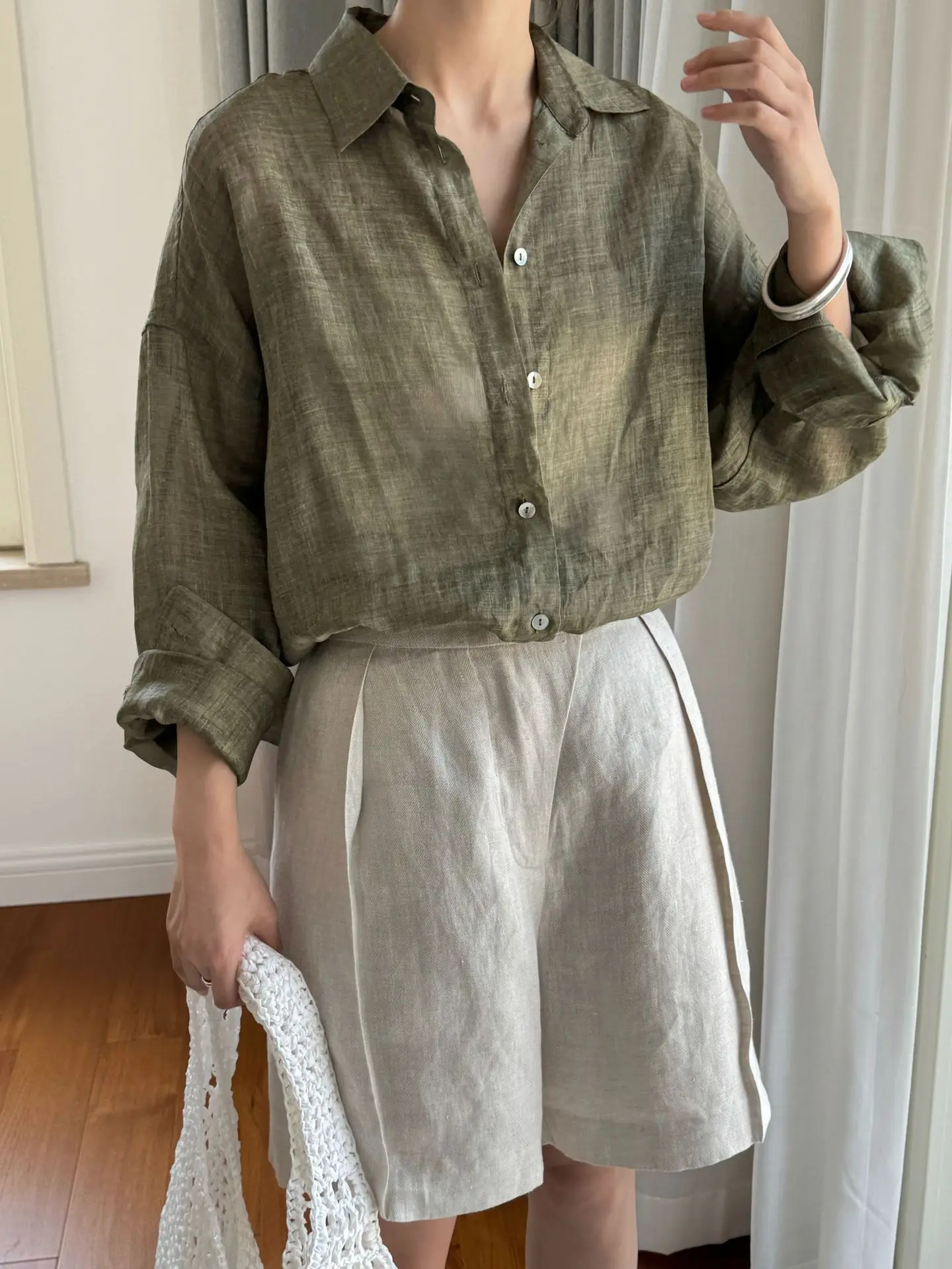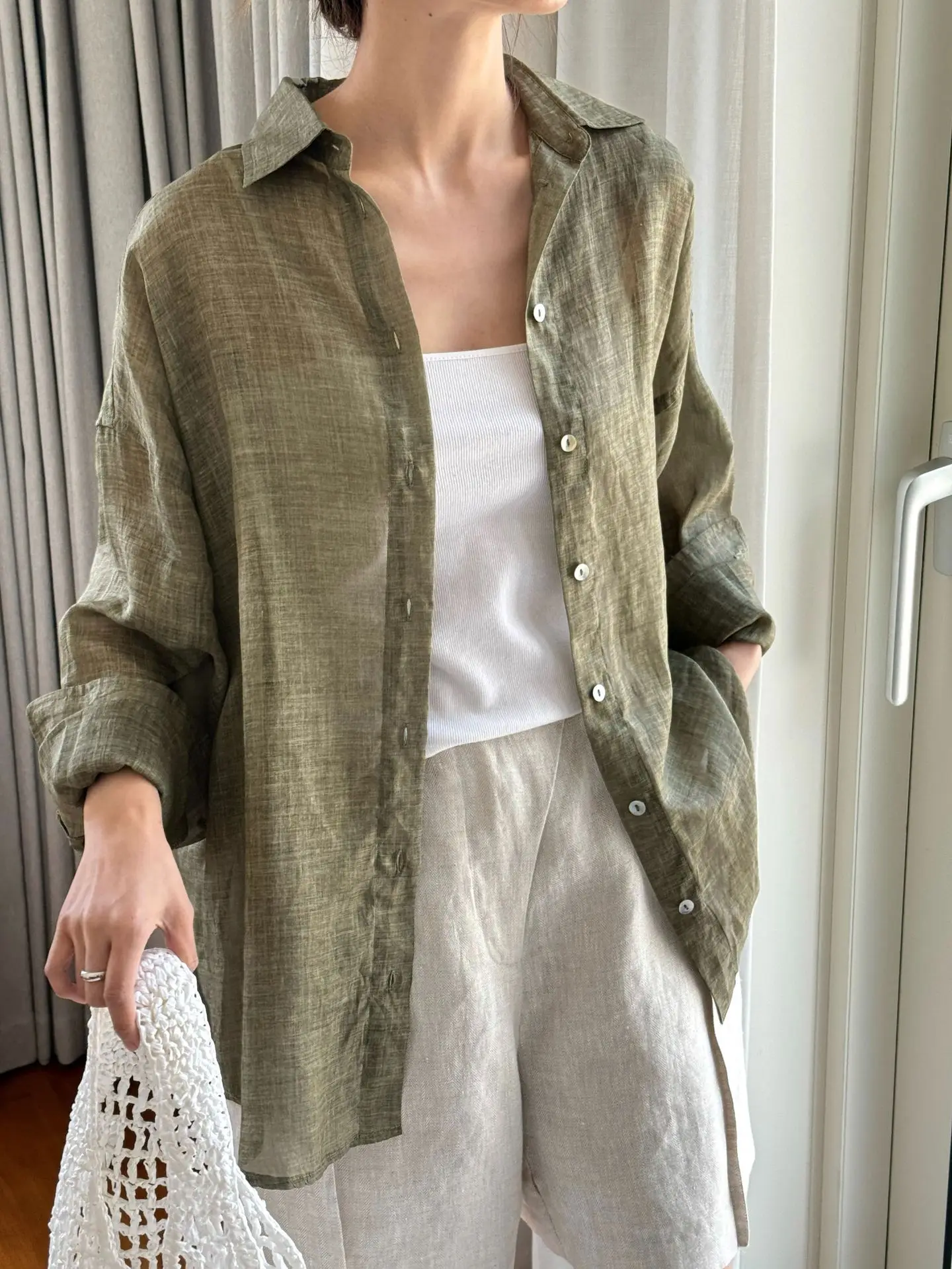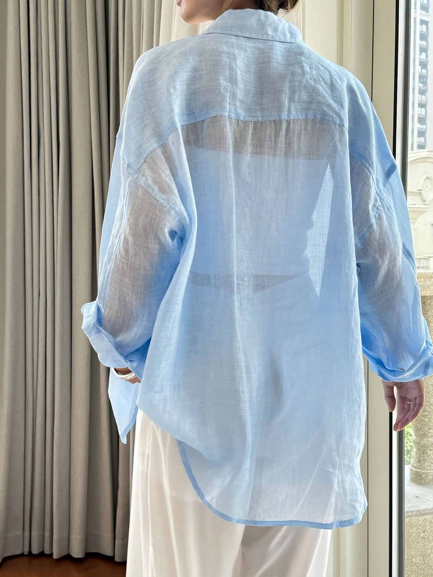 Spring and summer women's casual solid color lapel long sleeved loose fitting...