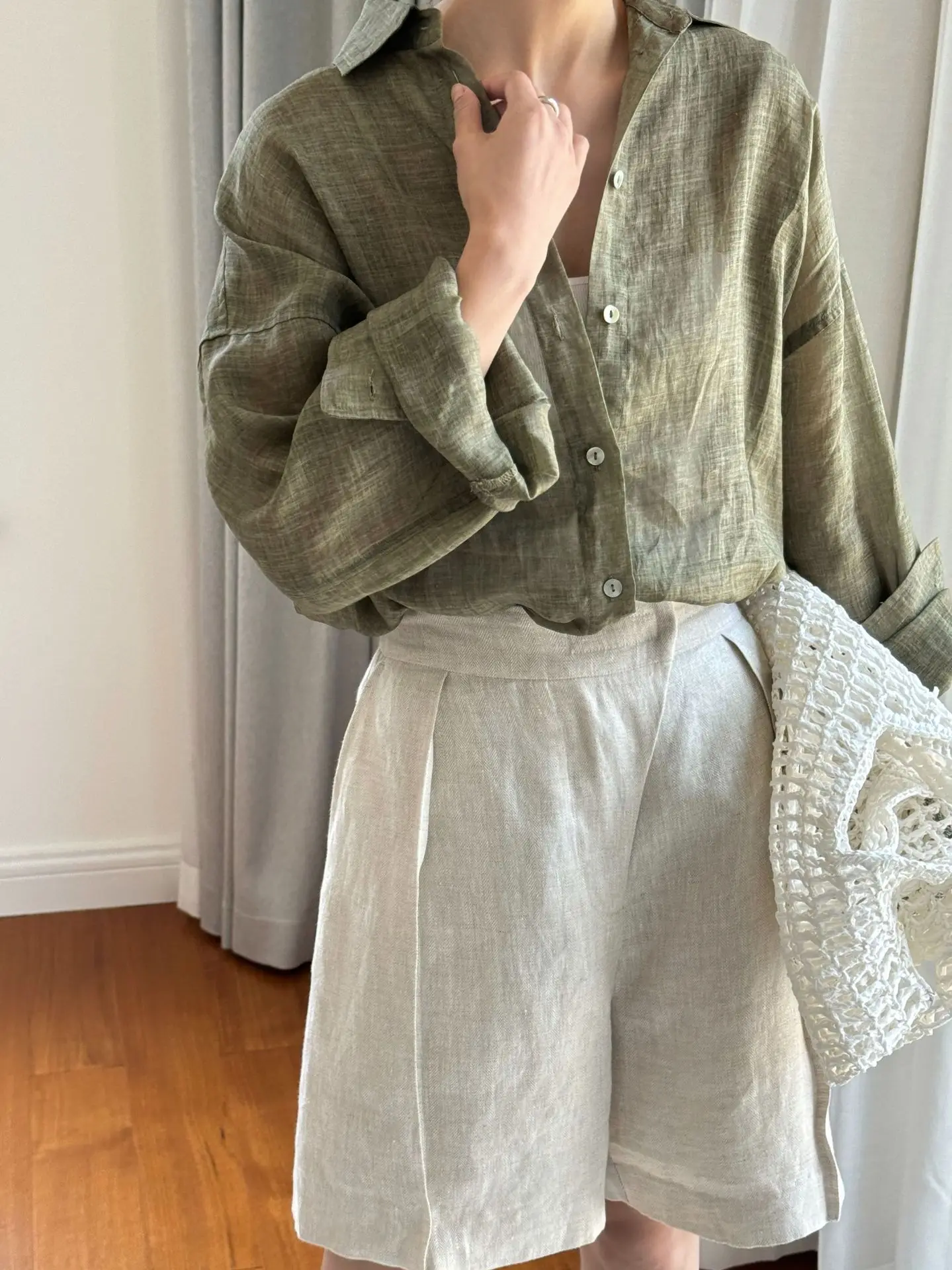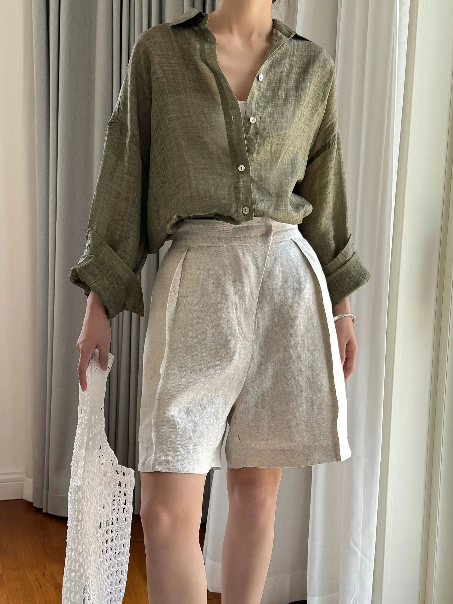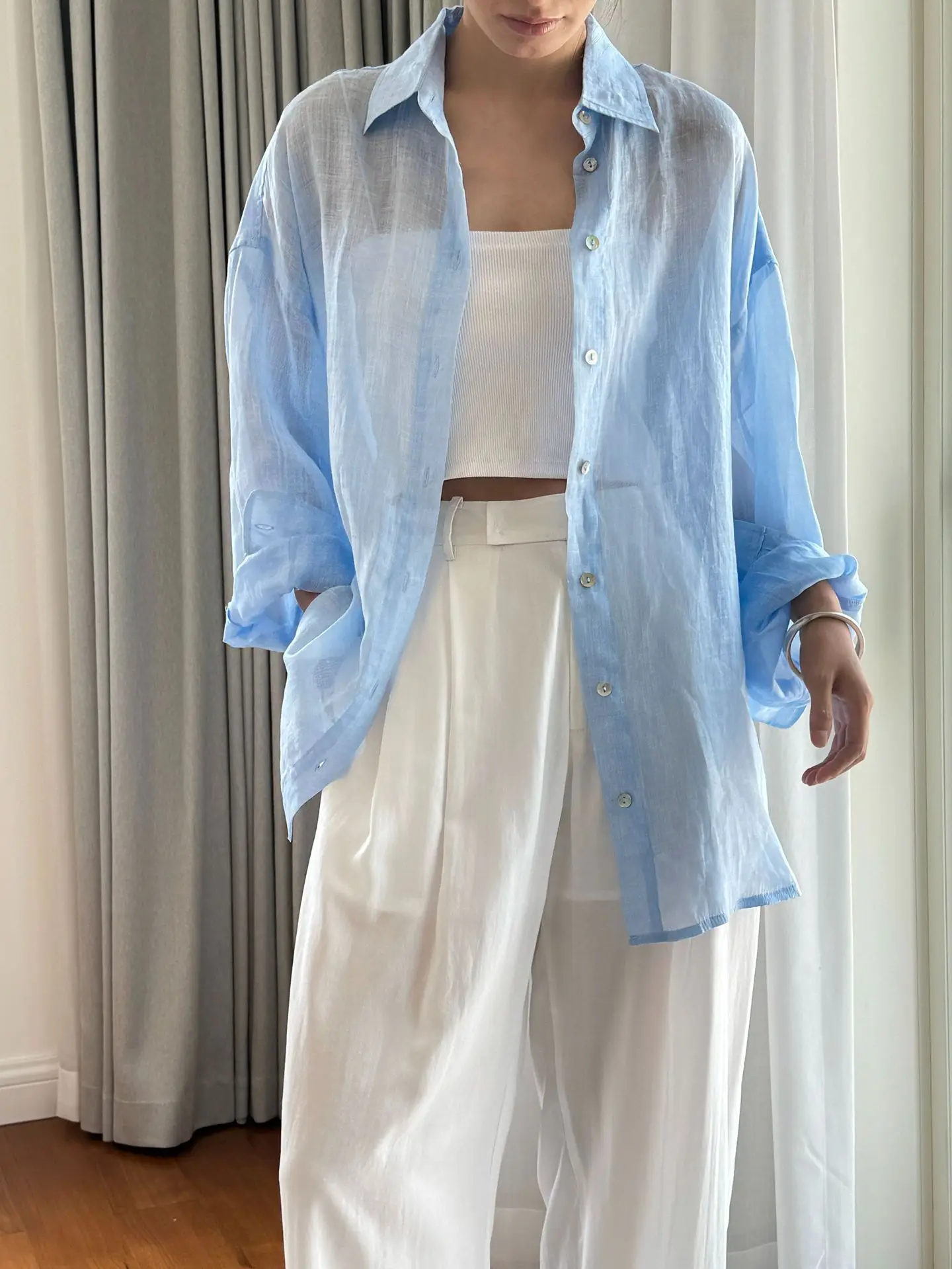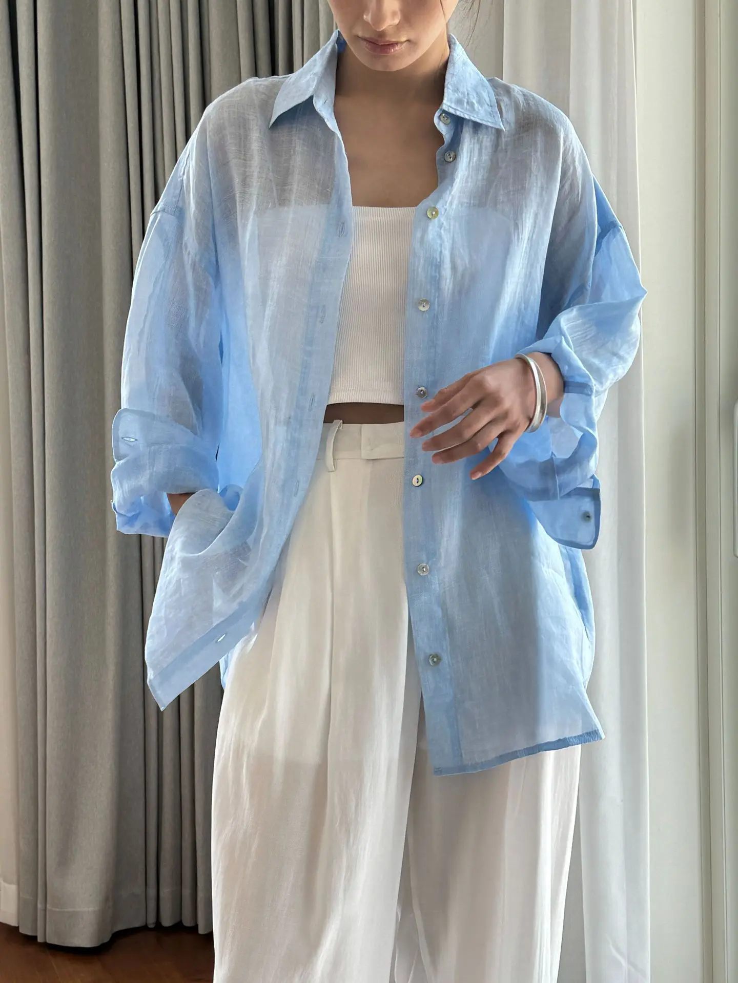Spring and summer women's casual solid color lapel long sleeved loose fitting...