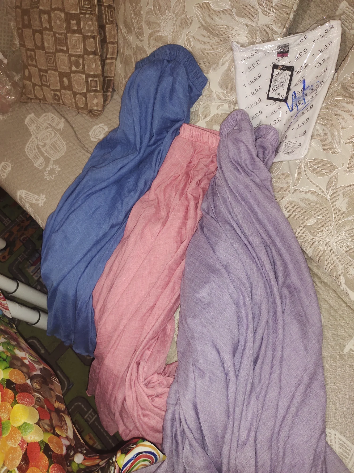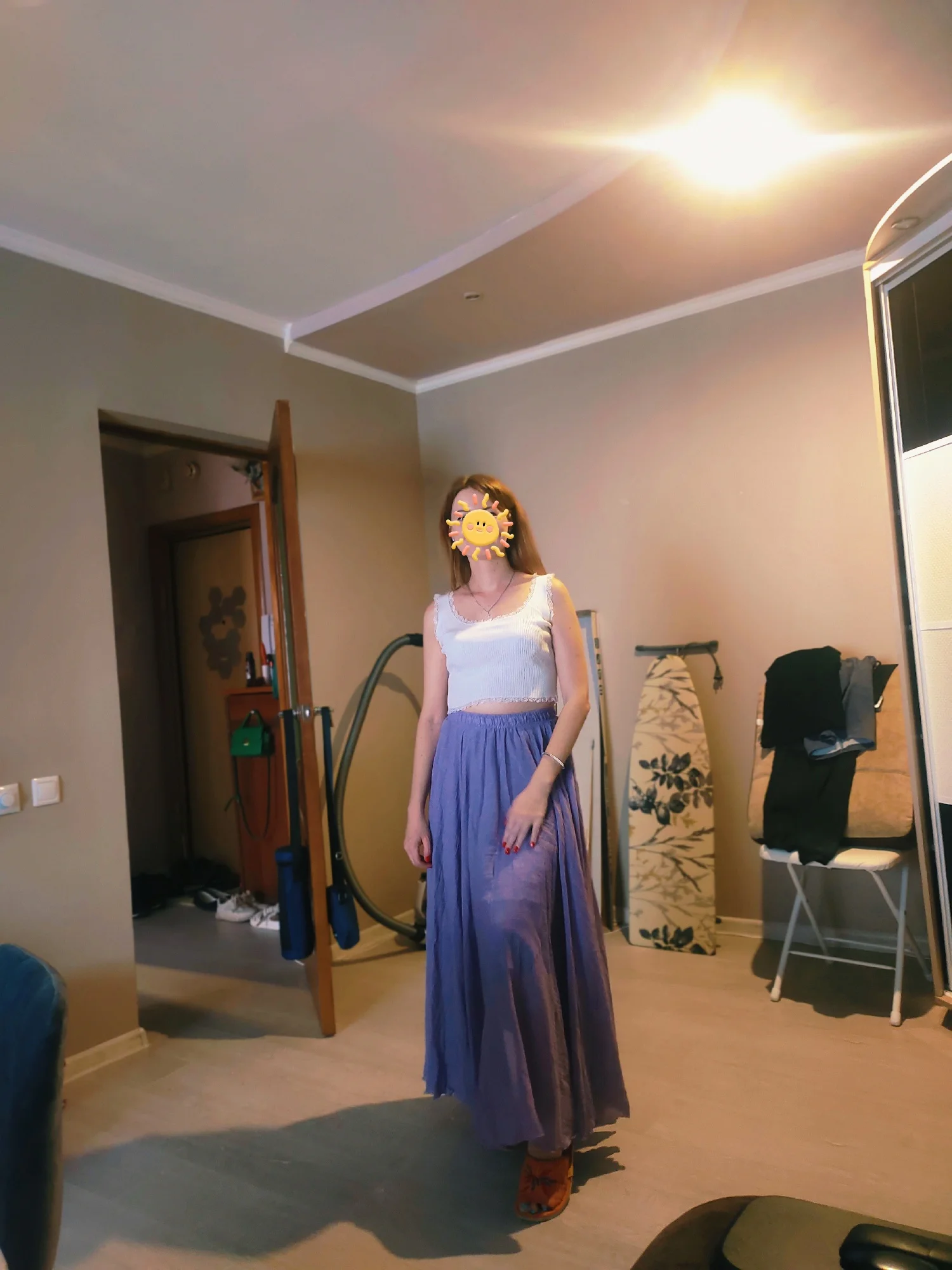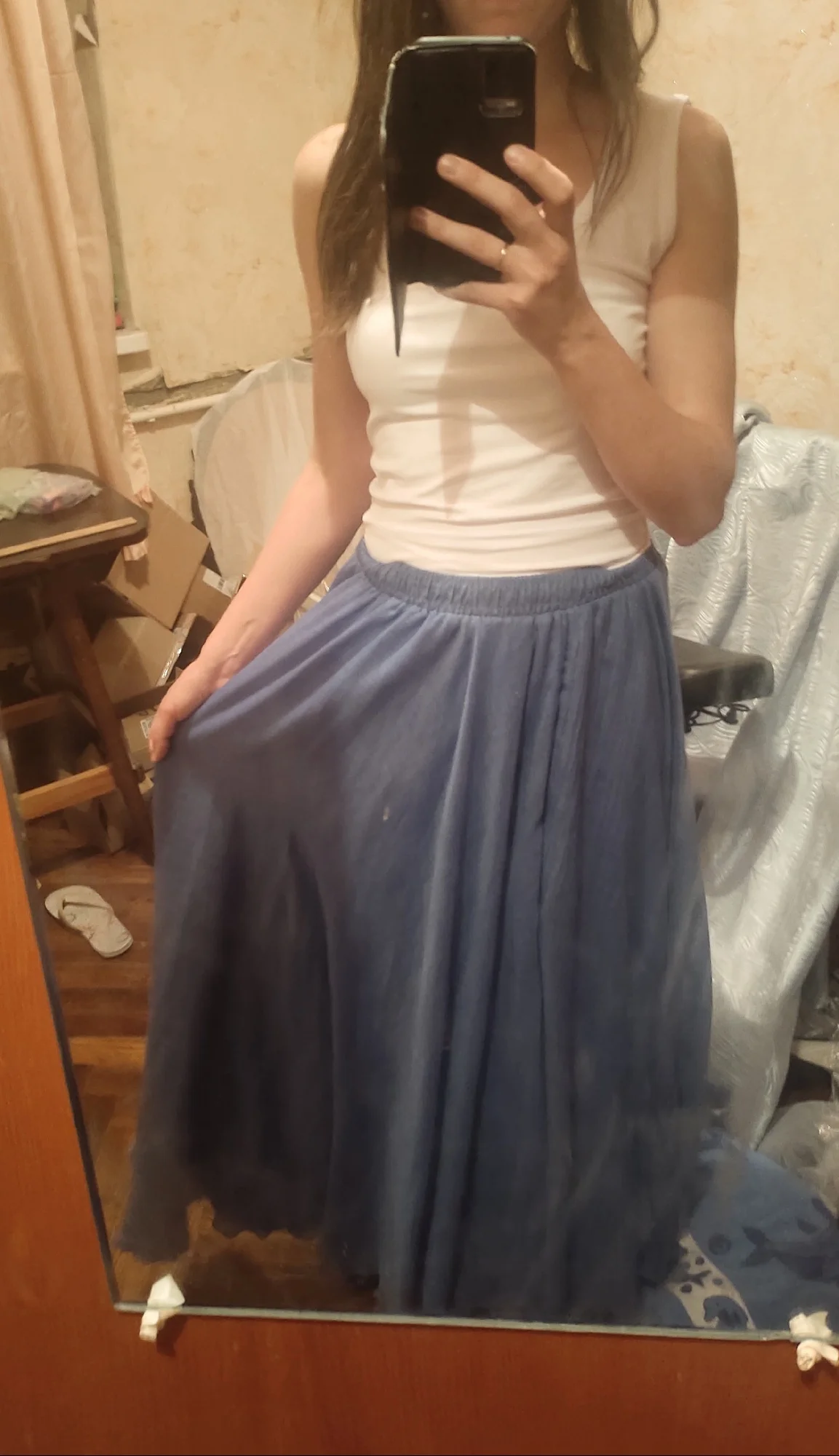 Брала 3 юбки, синюю, розовую и сиреневую/фиолетовую. Материал мне очень нравится, не очень на лен похоже, ну может лёгкий хлопок или папин, но ткань замечательная, я в 36° жары испытала её, создаётся вентиляция, ветерок и защищает от солнца, кожа совсем не потеет, в отличие от шорт или мини-юбок, где пот в три ручья. Пошито качественно все три юбки, по цвету вживую мне больше всего понравилась сиреневая, хоть я и не ношу такие цвета, но её у меня выпросили, в итоге одну сиреневую подарила родственнице, и такую же ещё заказала для подарка другой на д.р. Для себя больше всего хотела эту синюю/голубую, но вживую она оказалась не такого цвета как на фото продавца и на фото отзывах покупателей. У покупателей она более голубая (какую я хотела), в итоге пришла более синяя (мне не совсем идёт этот оттенок), поэтому одну звезду сняла. Видимо партии разные и цвета могут отличаться. Фото с разным освещением прикладываю. (На последних двух фото 9,10 - фото другого покупателя и фото продавца, цвета отличаются с тем, что мне пришло).4655 u. 11 июля 2024