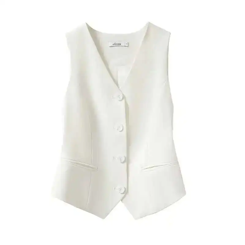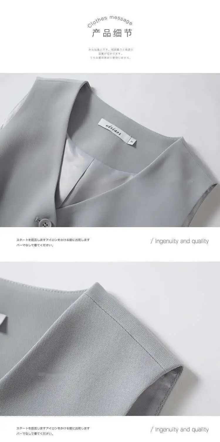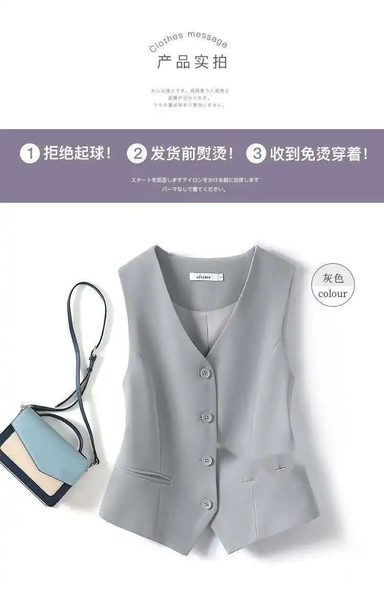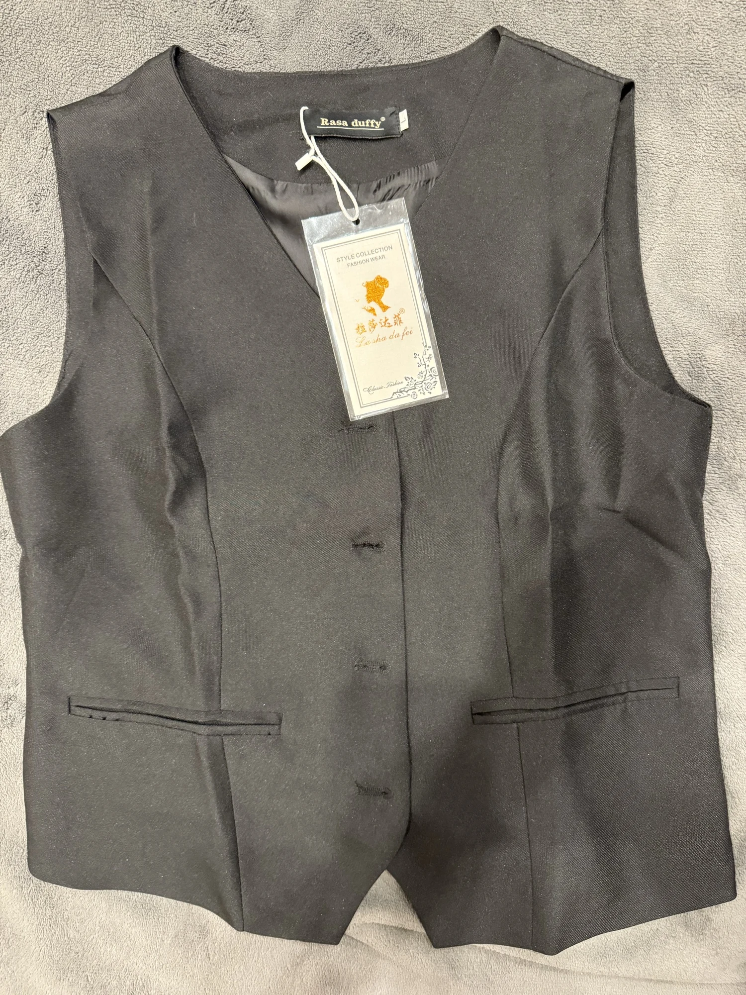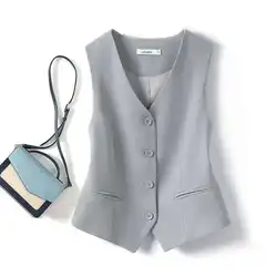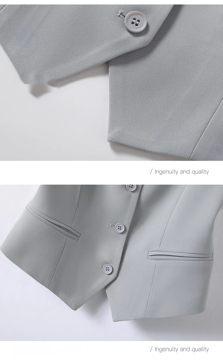 #0738 Black Gray White Short Blazer Vest Women Single Breasted Office Vest Coat...