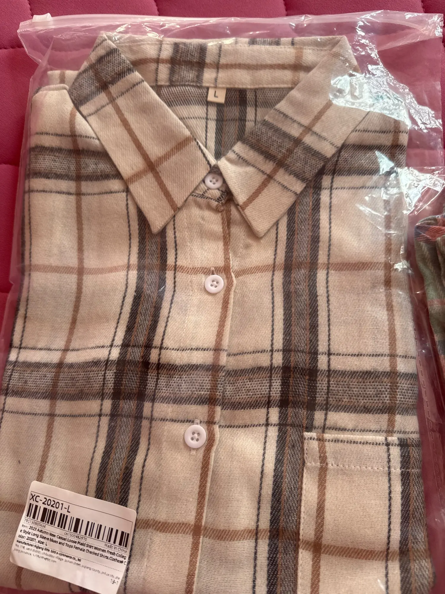 2023 Autumn New Casual Loose Plaid Shirt Women Fresh College Style Long Sleeve...