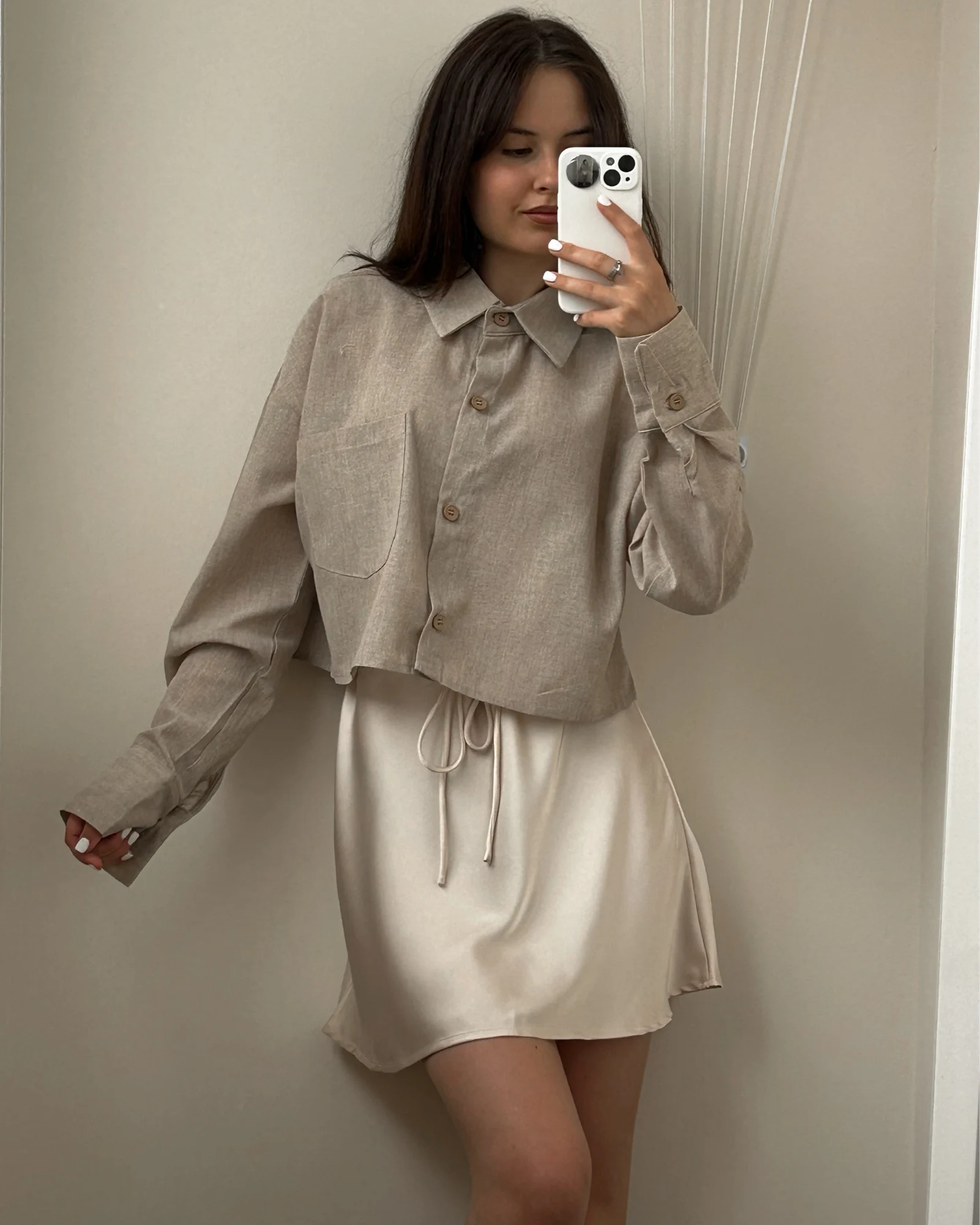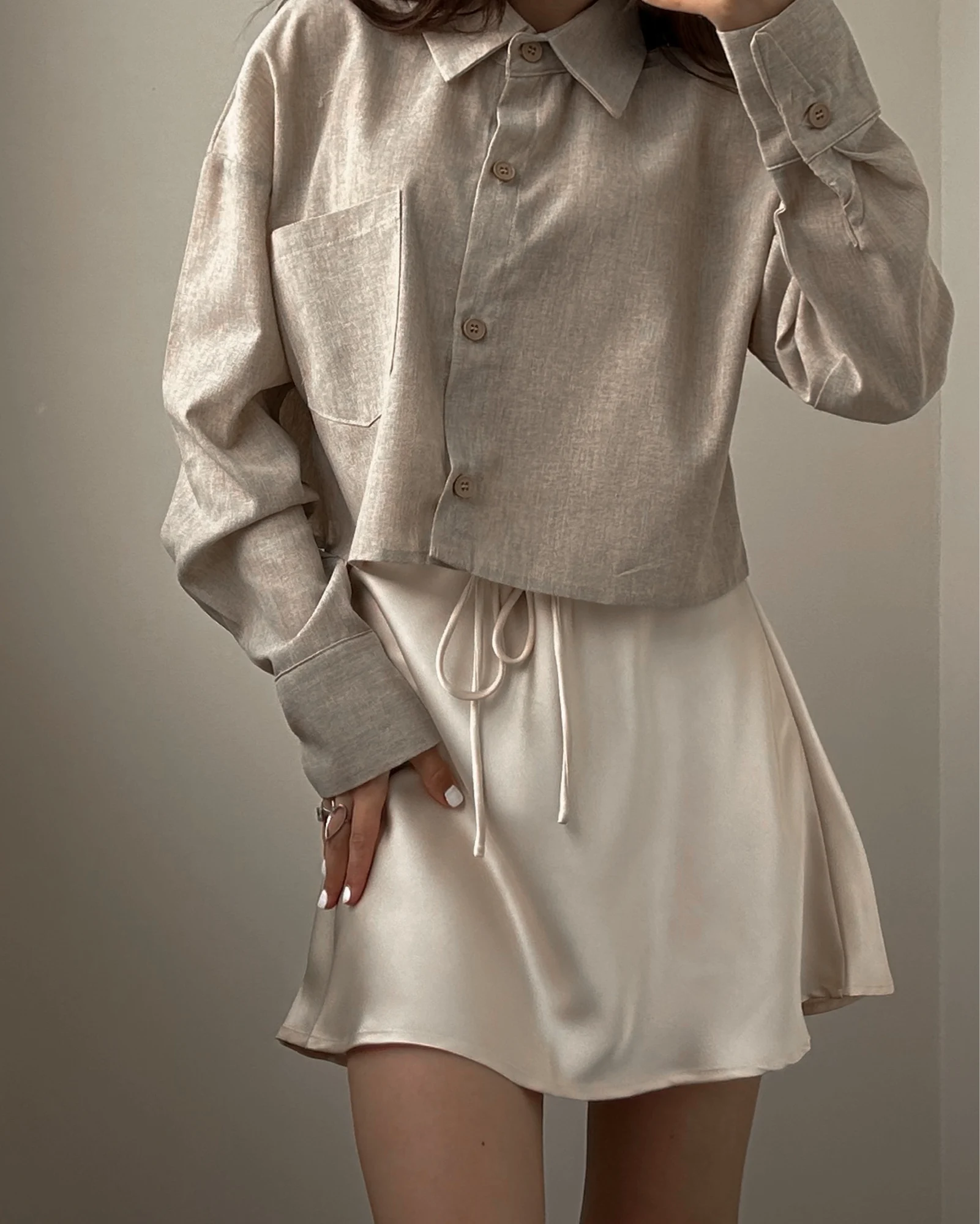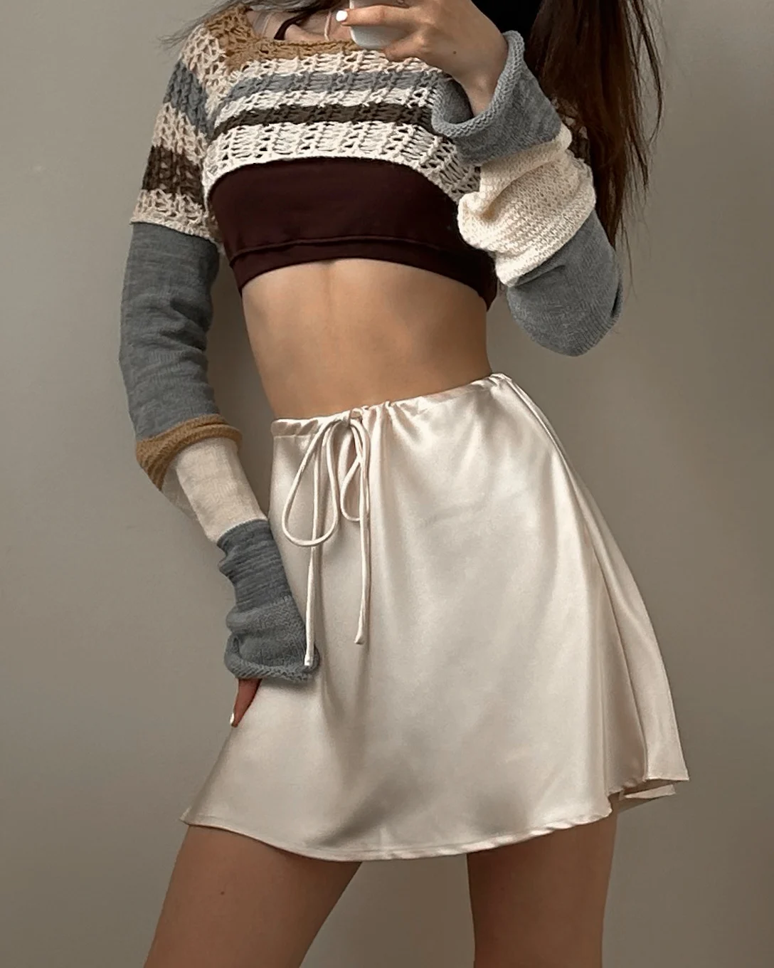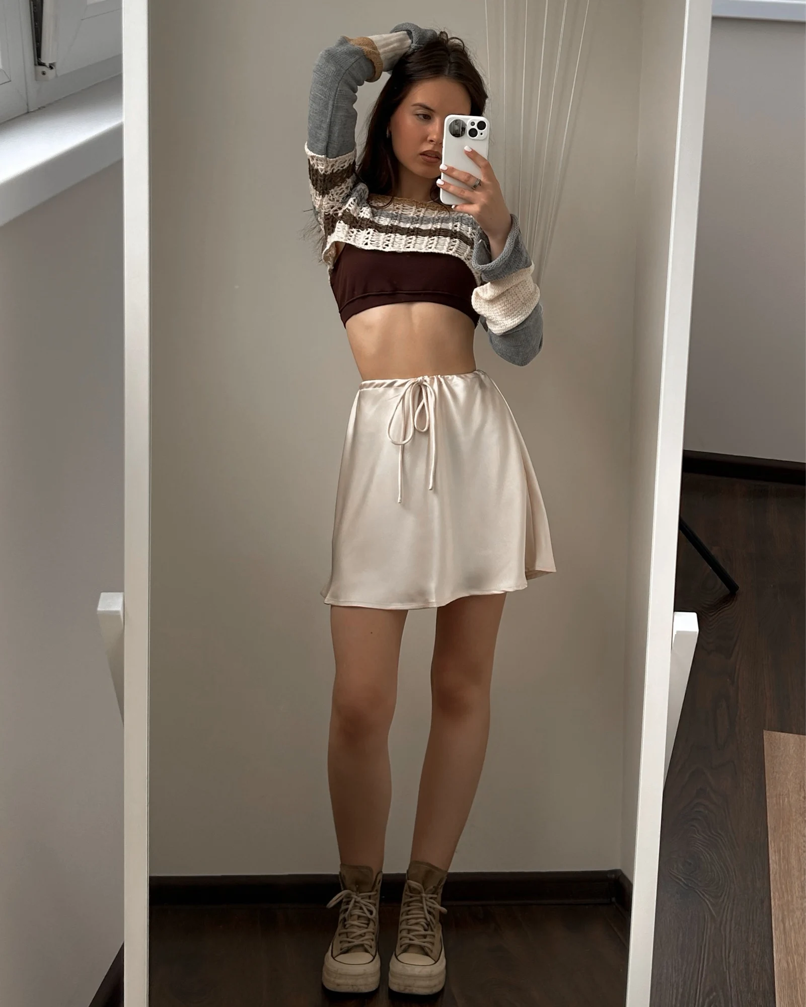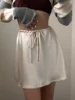 Satin Mini Skirts Women Summer Beige Silk Short Skirt For Woman Drawstring High...