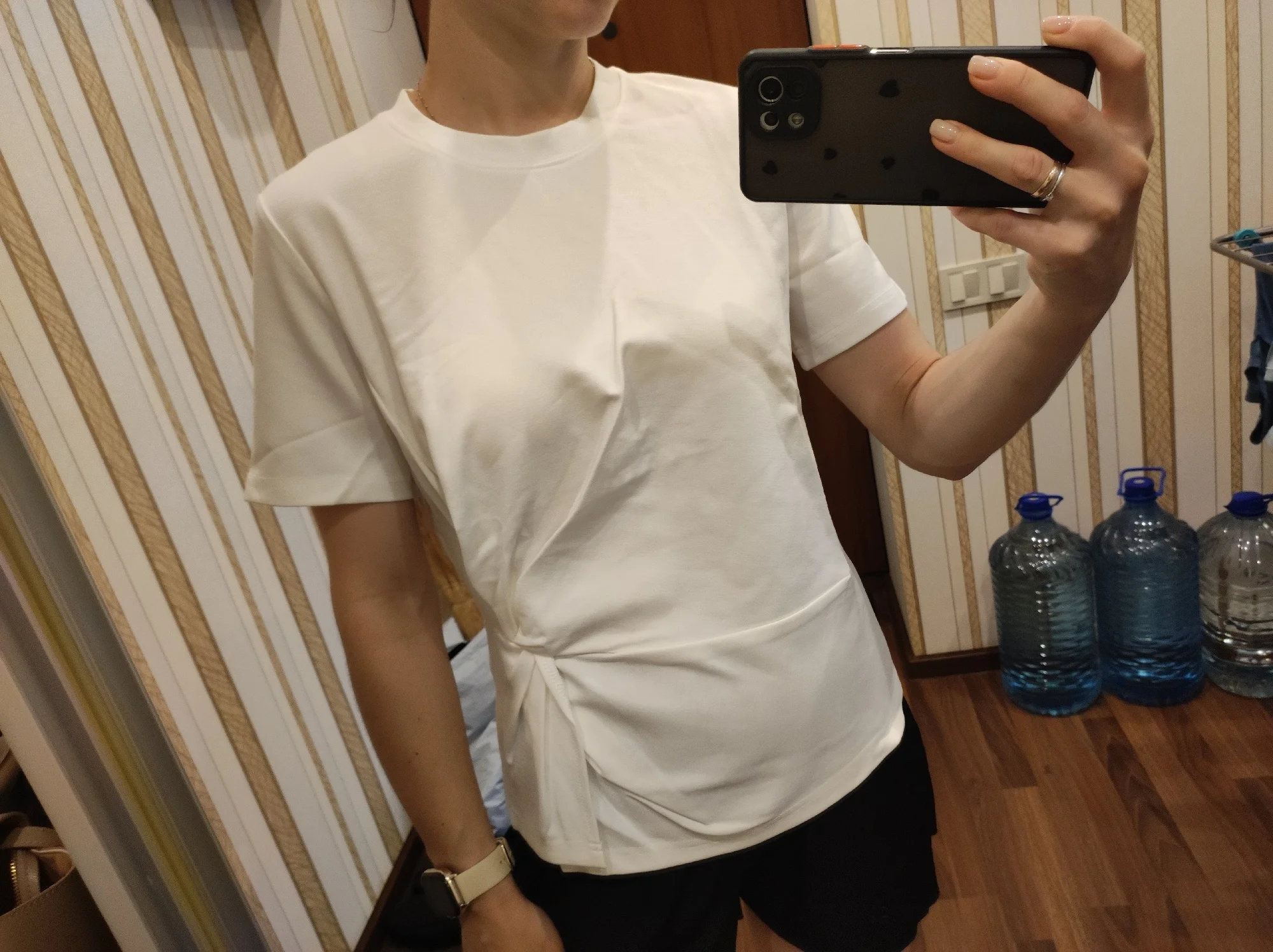 Футболка понравилась. Интересный фасон, спортивный стиль. Материал не хлопок. но вполне комфортный. Размер L на параметры 90/75/102, рост 163 подошёл идеально.
