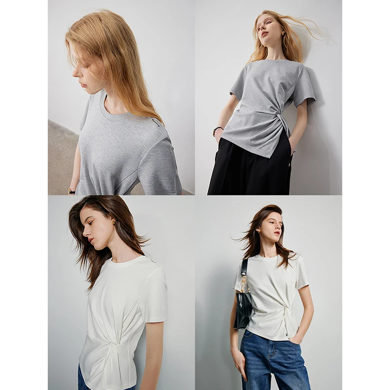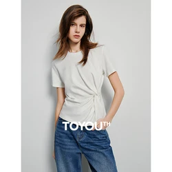 TOYOUTH Women Crop Tops 2024 Spring New Pleated Tie Irregular Solid Color Short...