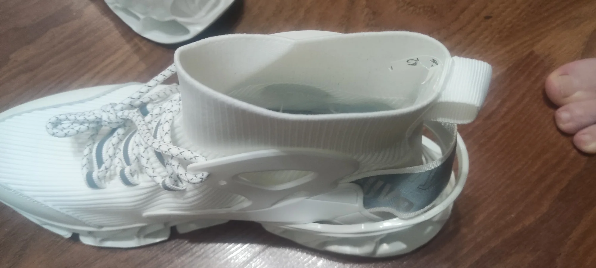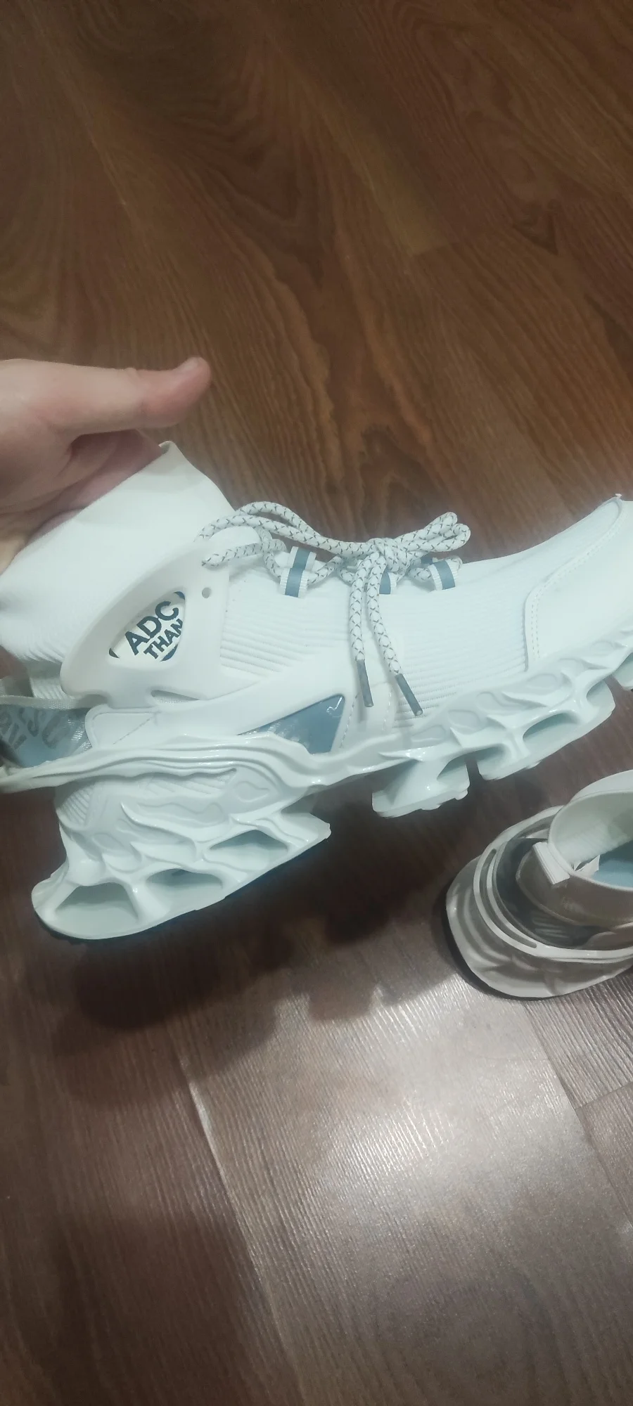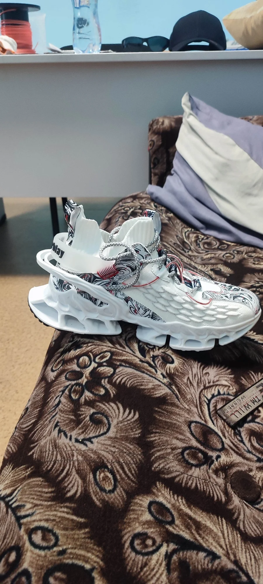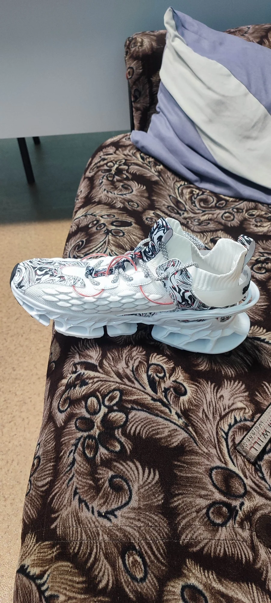 левый кросовок,. подошва приклеена не ровно. возможно при ходьбе, будут стаптываться. размер подошёл, но одев, в левом нога стоит не совсем ровно. Как-будто скатывается,. Из за того что приклеена подошва не ровно. А так тапки, прикольные. Качество сборки не очень!!!0976 u. 16 июля 2024