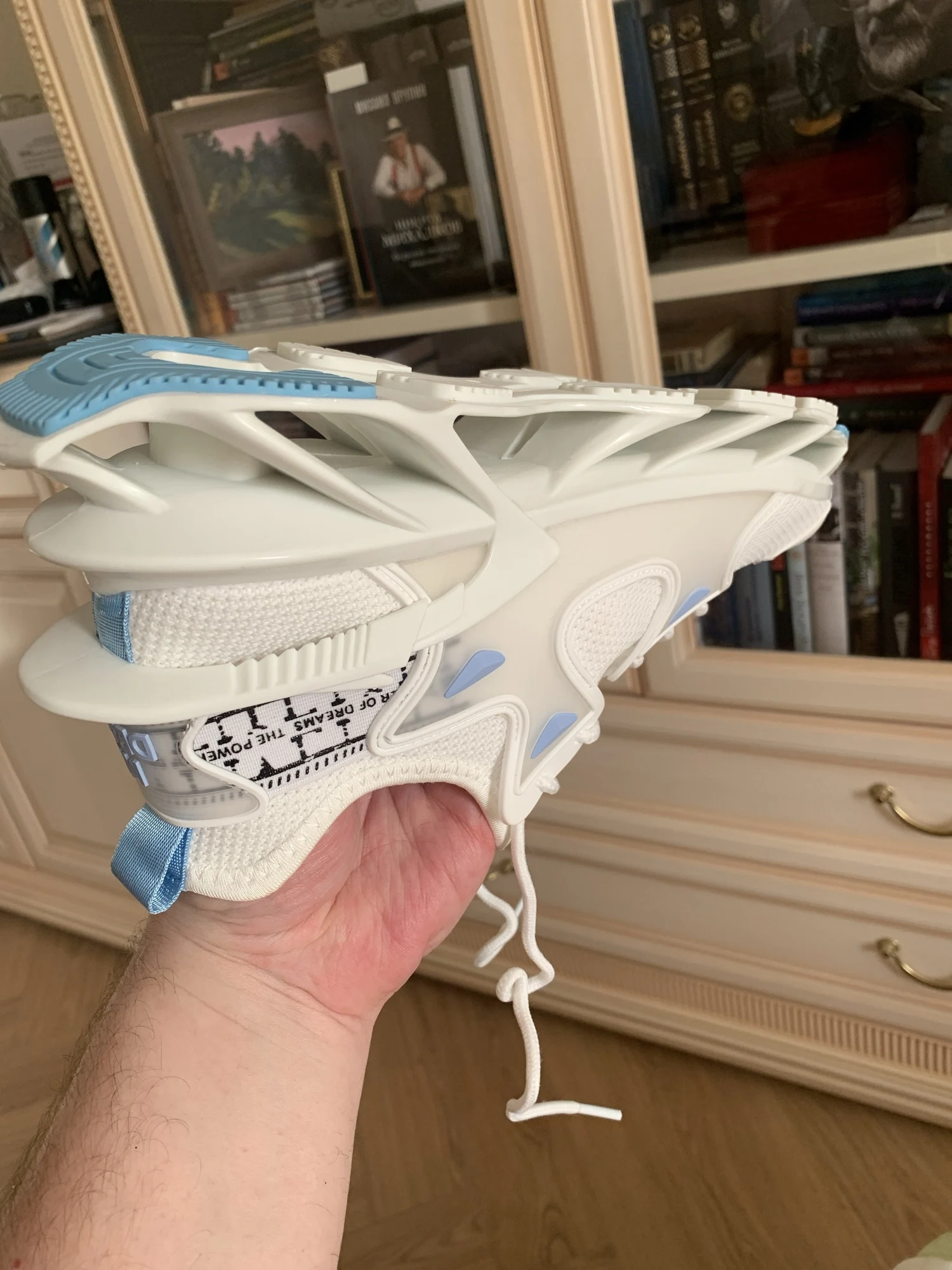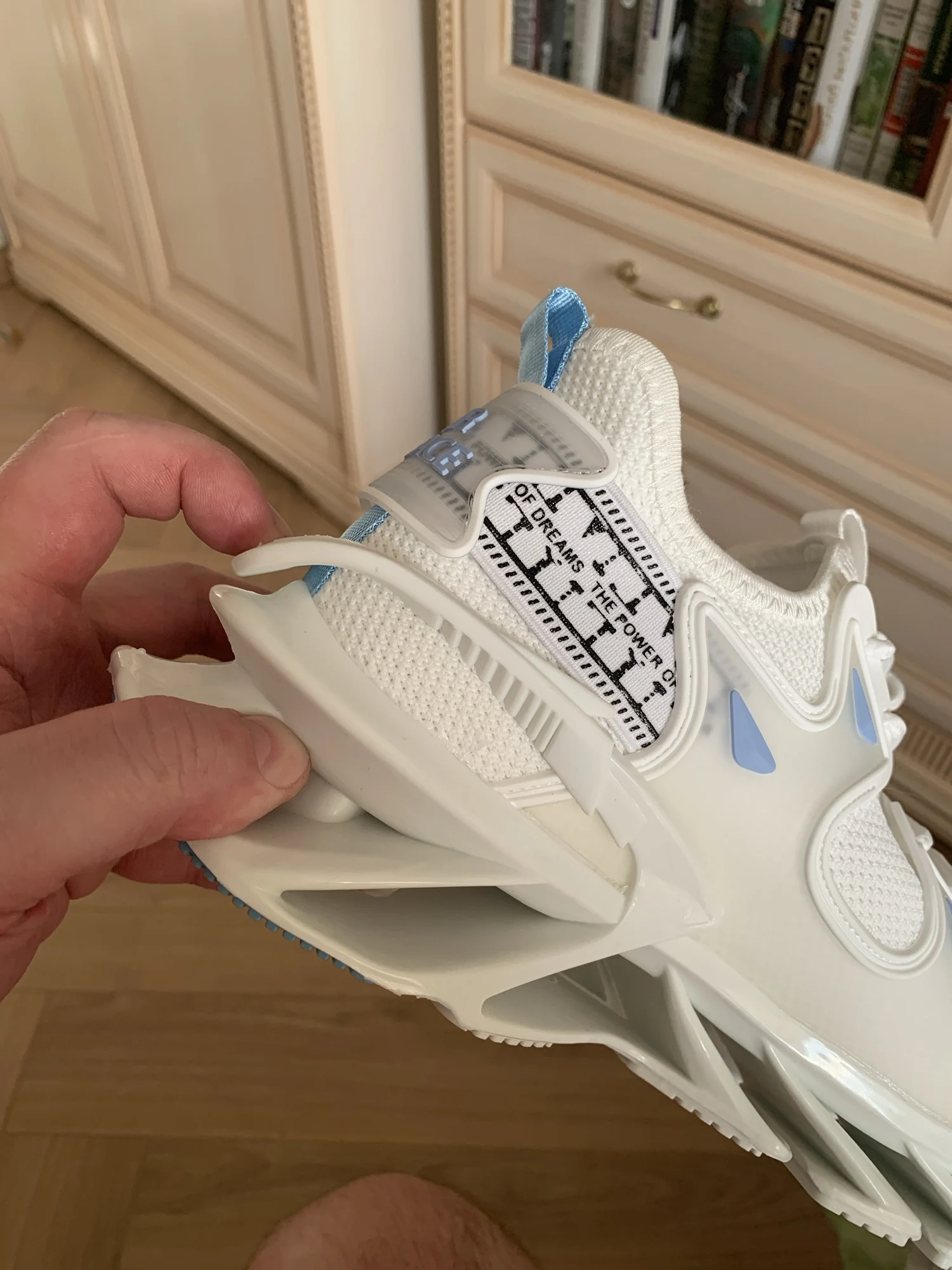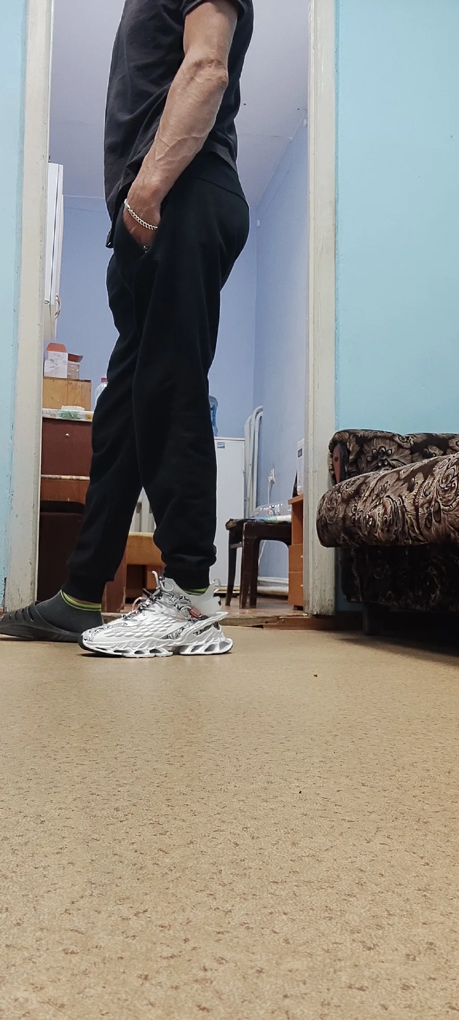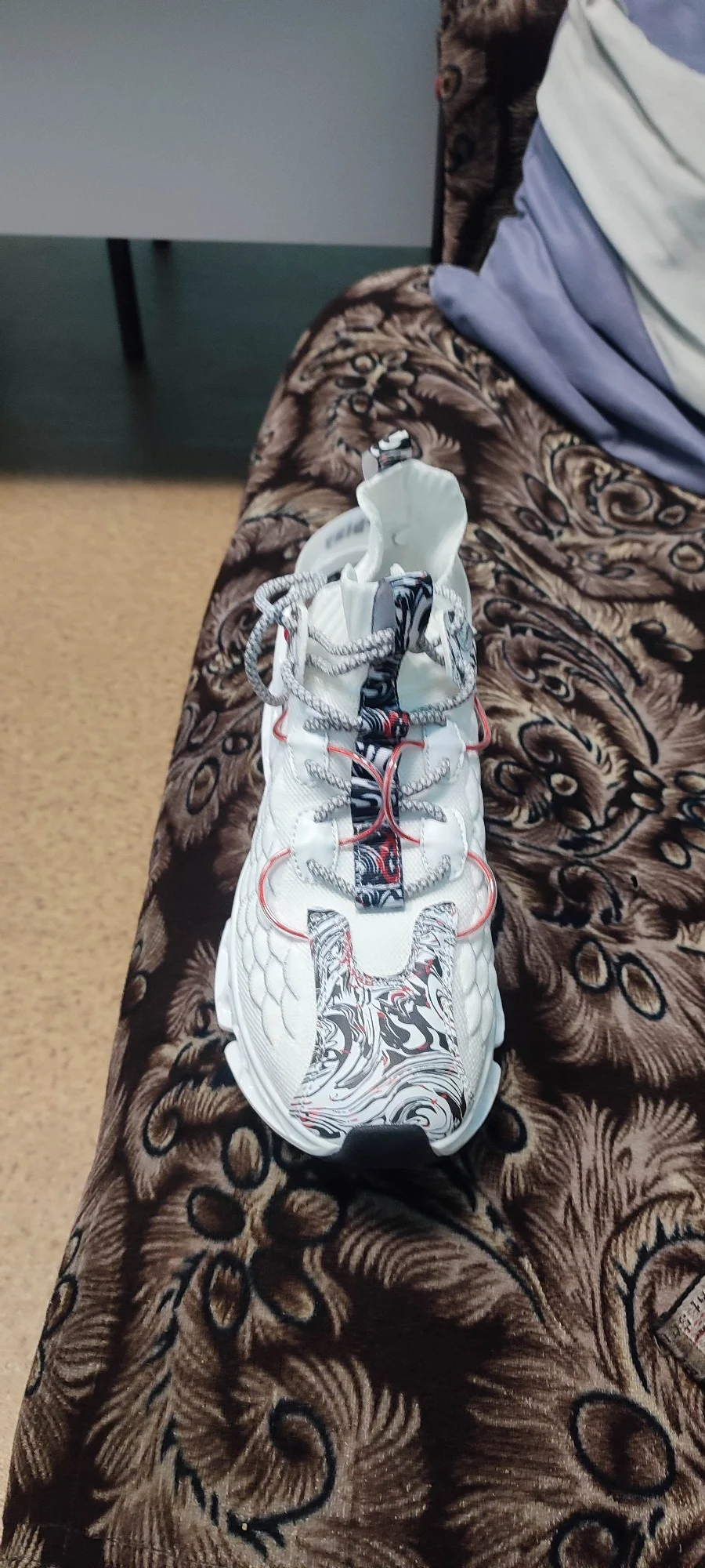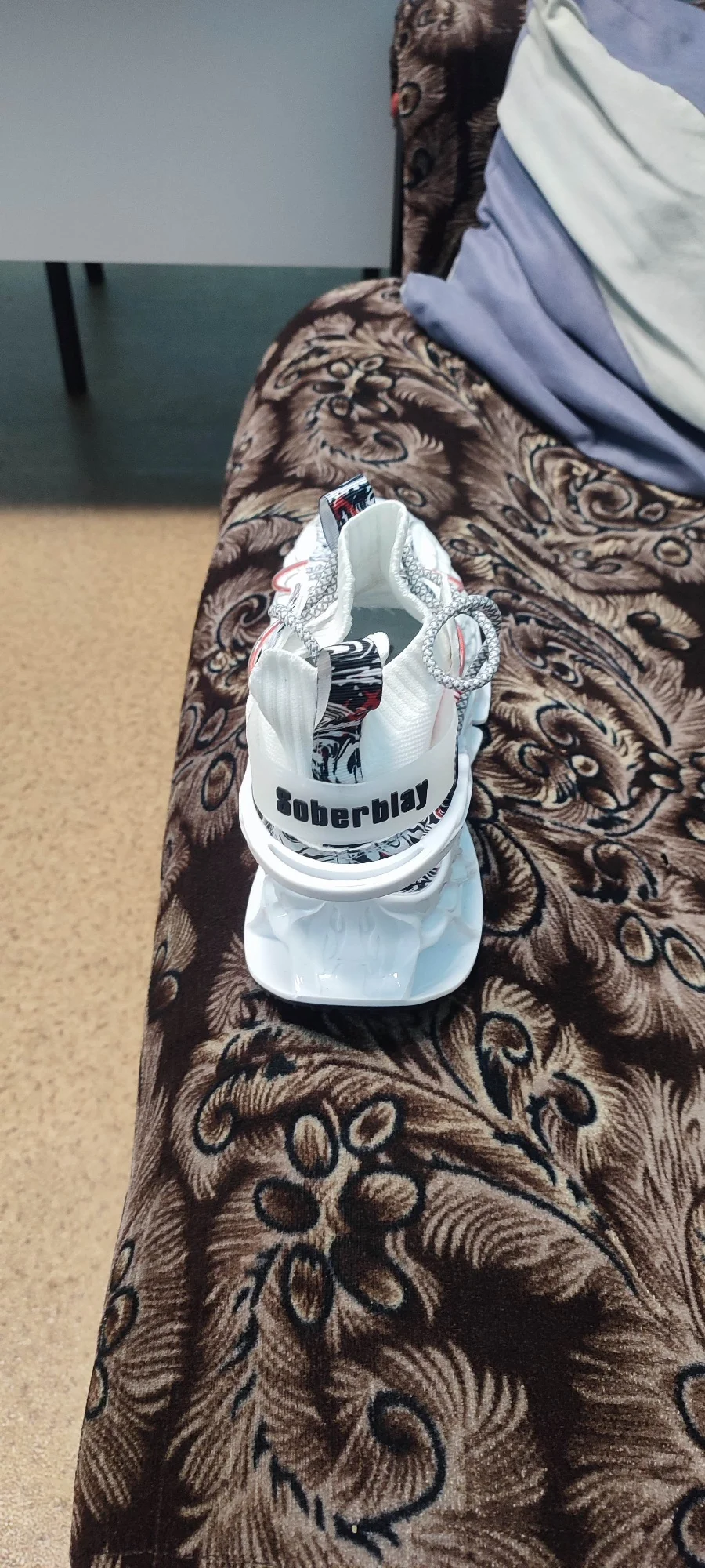 левый кросовок,. подошва приклеена не ровно. возможно при ходьбе, будут стаптываться. размер подошёл, но одев, в левом нога стоит не совсем ровно. Как-будто скатывается,. Из за того что приклеена подошва не ровно. А так тапки, прикольные. Качество сборки не очень!!!0976 u. 16 июля 2024