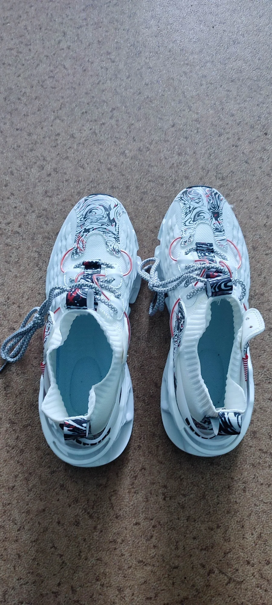 Производителю спасибо за хорошие кросовки, за 16,2 $ это очень качественные кросовки подошва не дряхлая, как на обычной обуви, крепкая, ткань плотно вата и мало дышащая, но это не минус, шнурки со временем со трутся как по мне, подошва гибкая, не знаю лопнет ли она при ходьбе от 2 месяцев до года дизайн полностью соответствует картинке и предпочтению, для шнурков неудобный или его отсутствие случившегося элемента, его просто нет, и резинки нет то есть когда шнурки тянешь чтобы обувь сидела плотнее тянется носок, а не крепление по всей обуви кросовки однозначно советую, тем кто не гонится за качеством и Брендом за большие бабки советую брать на сезон или даже на два точно хватит