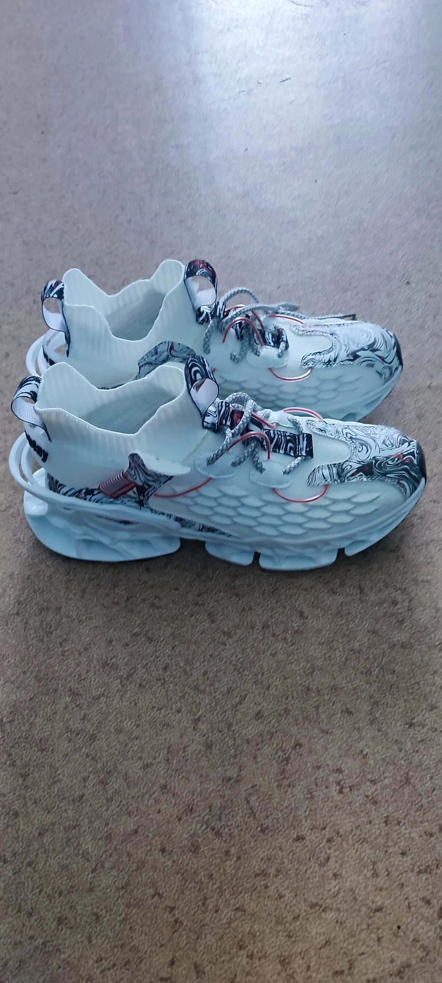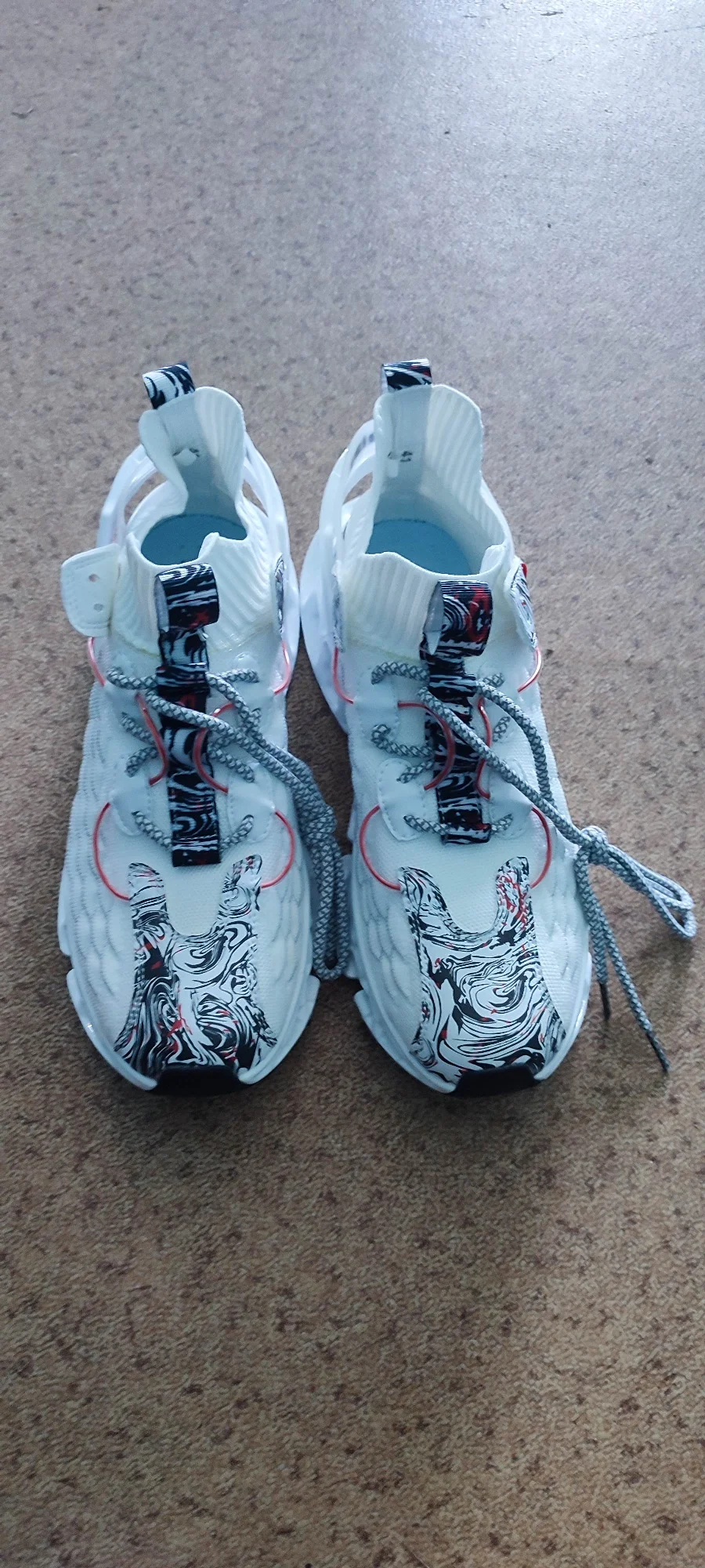 Маломерят на свой 45 взял 46 и всё равно жмут и неудобные. При длительной носки жарко ноги потеет подошва скользит на твердом и шумит как погремушка. Кроме футуристического вида нечего полное г...о. Не советую эту модель по траве хорошо газон щипать.