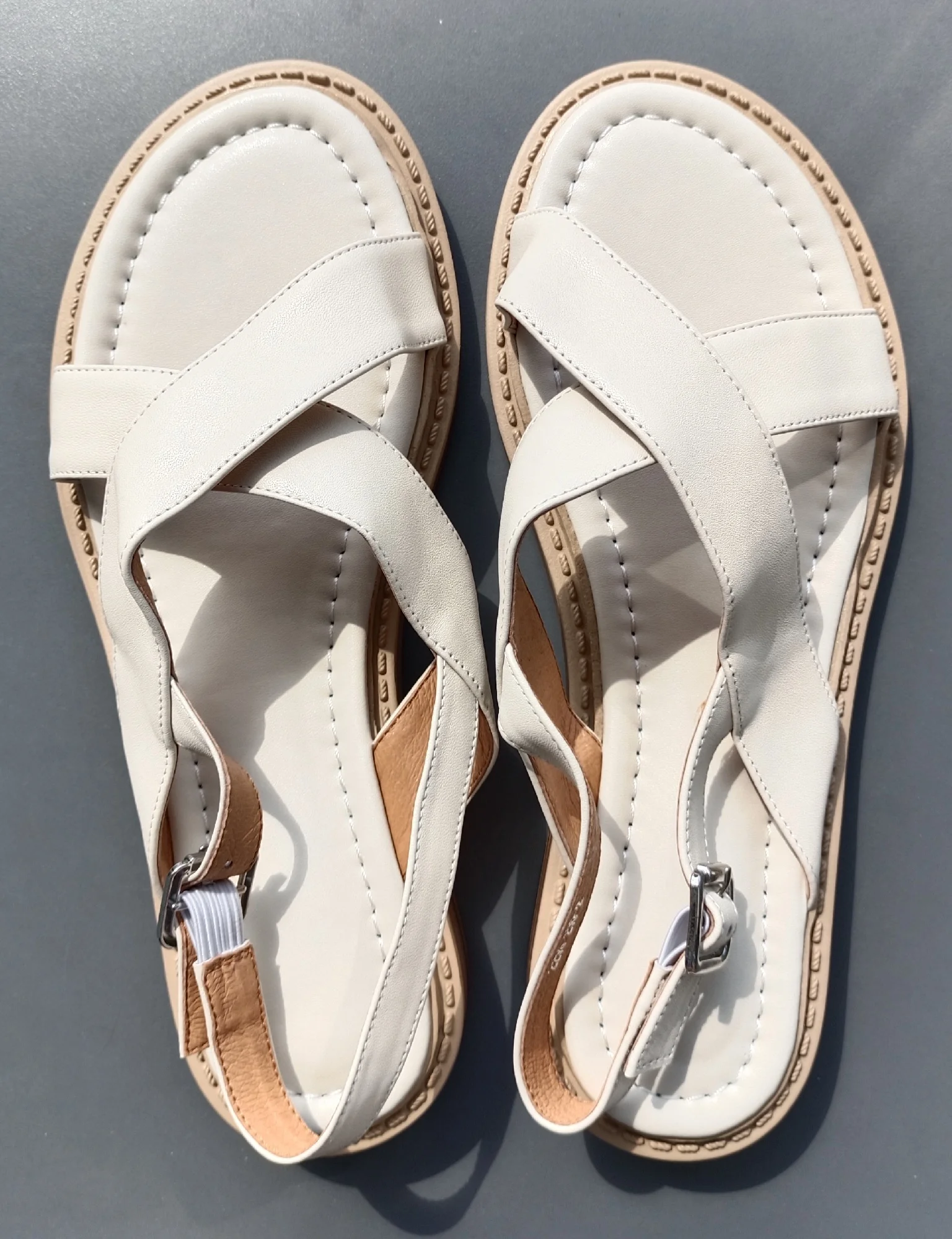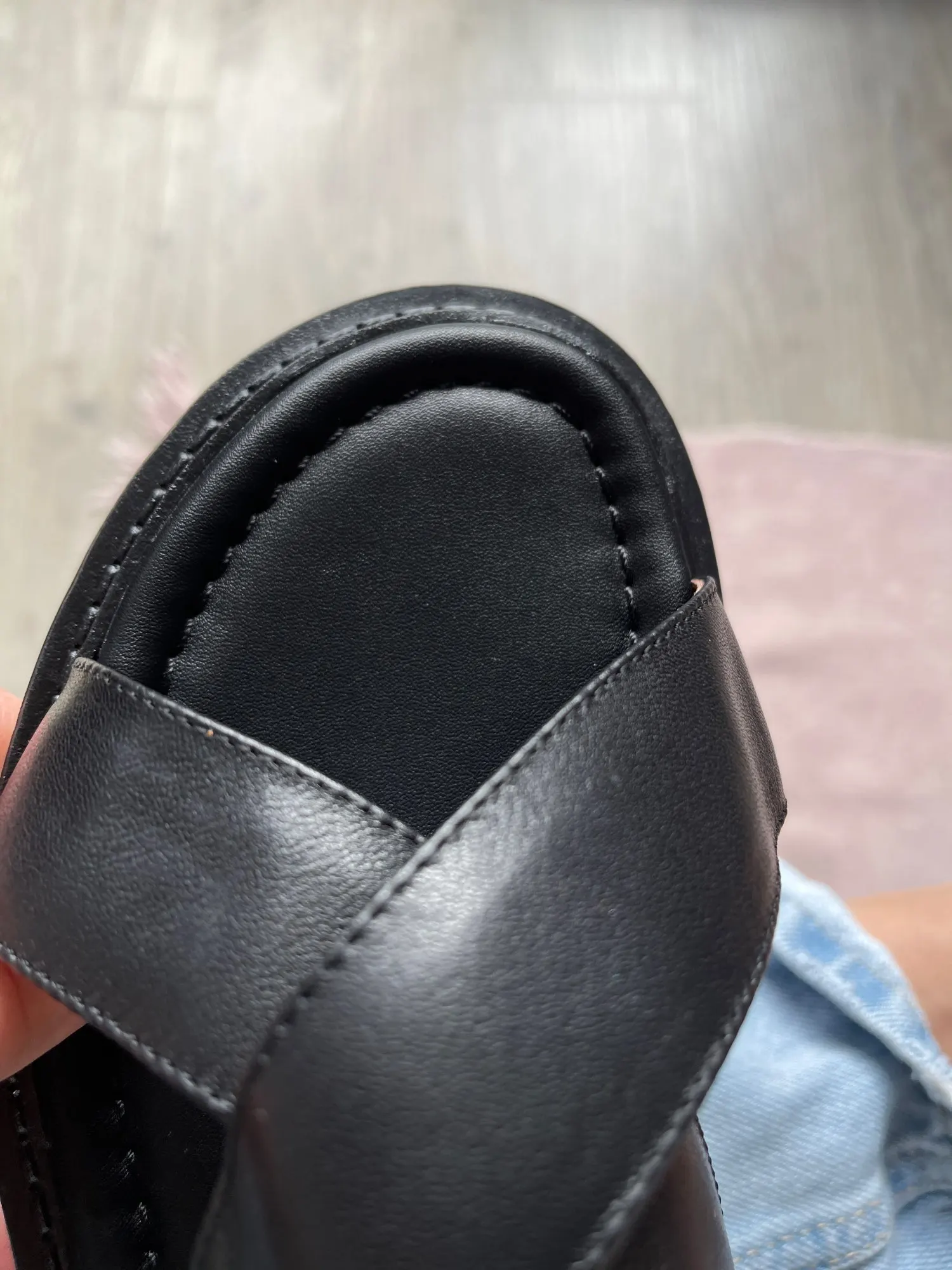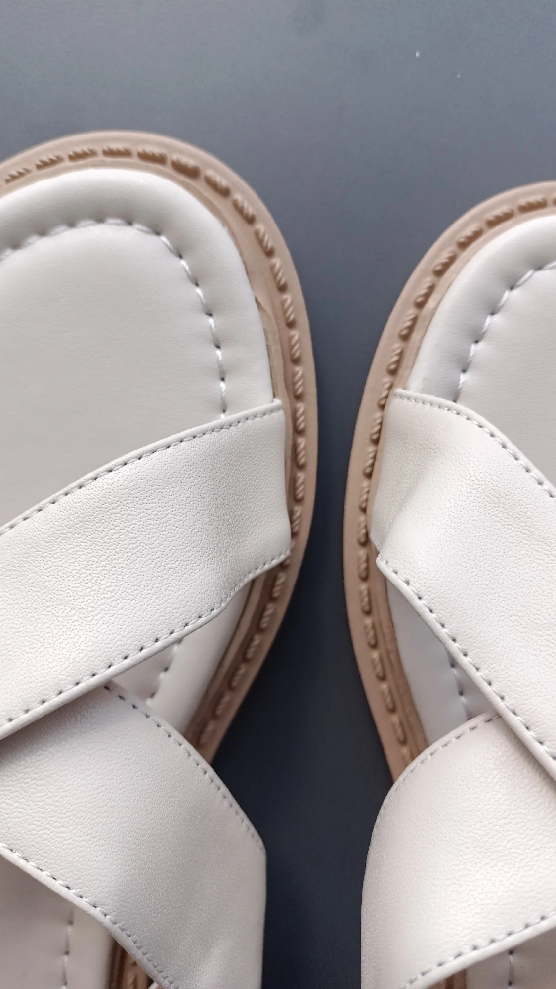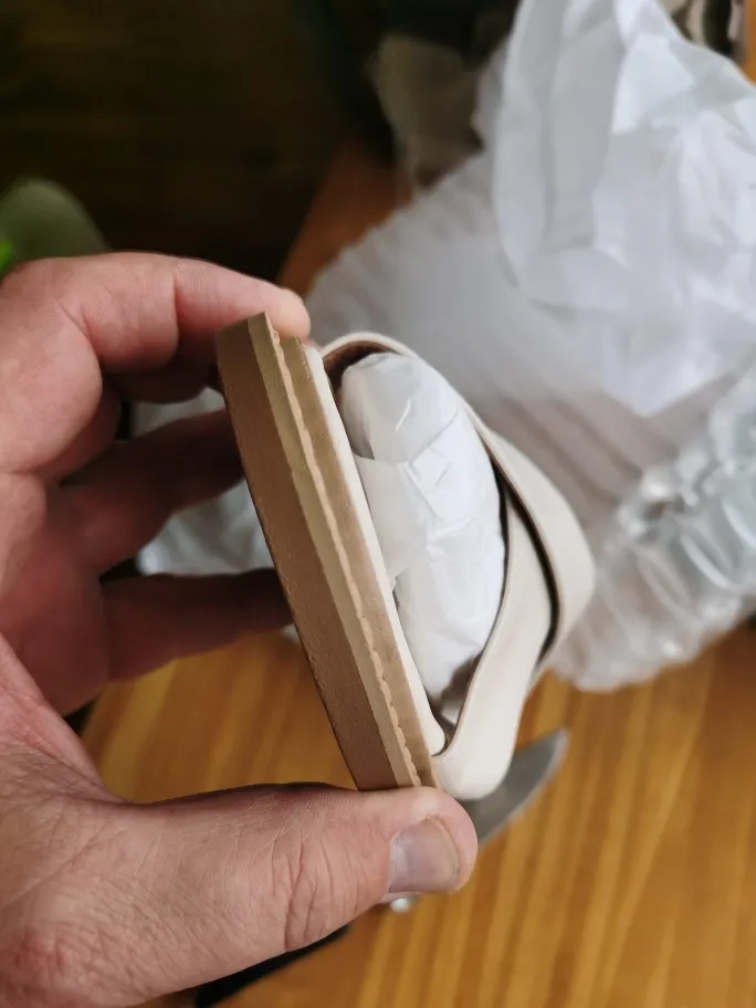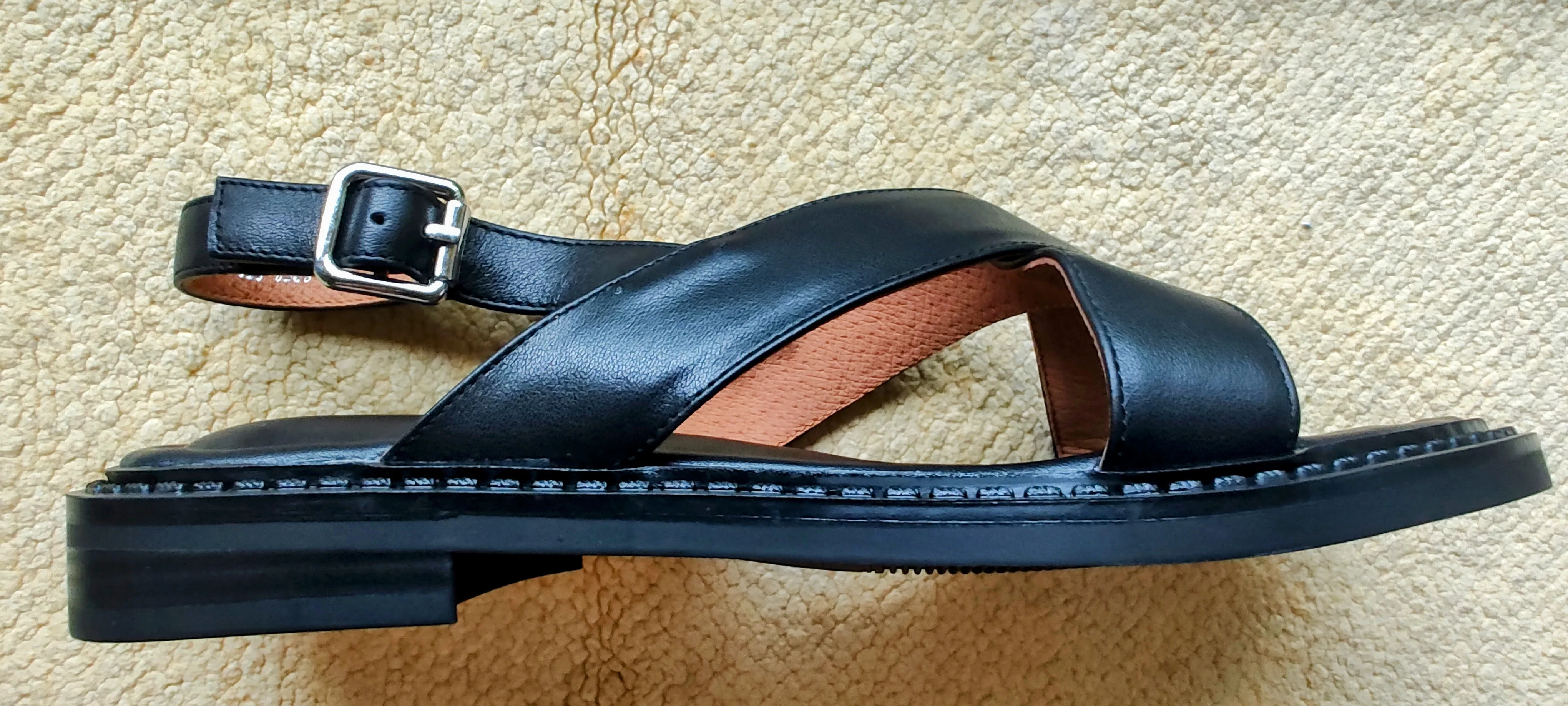 Сандалии реально крутые! Классные, удобные очень. На широкую стопу 24,5 взяла 39 размер, сели как надо. Пальцы не торчат, не соскальзывают. Сидят на ноге не вплотную, свободно, но при ходьбе комфортно. За такую цену(2500) прям подарок! Упакованы отлично, ничего не помялось! Следов клея нет, пахнут кожей. Я очень довольна покупкой! Возьму белые ещё! Продавцу респект! И благодарности!Maria K. 18 июля 2022
