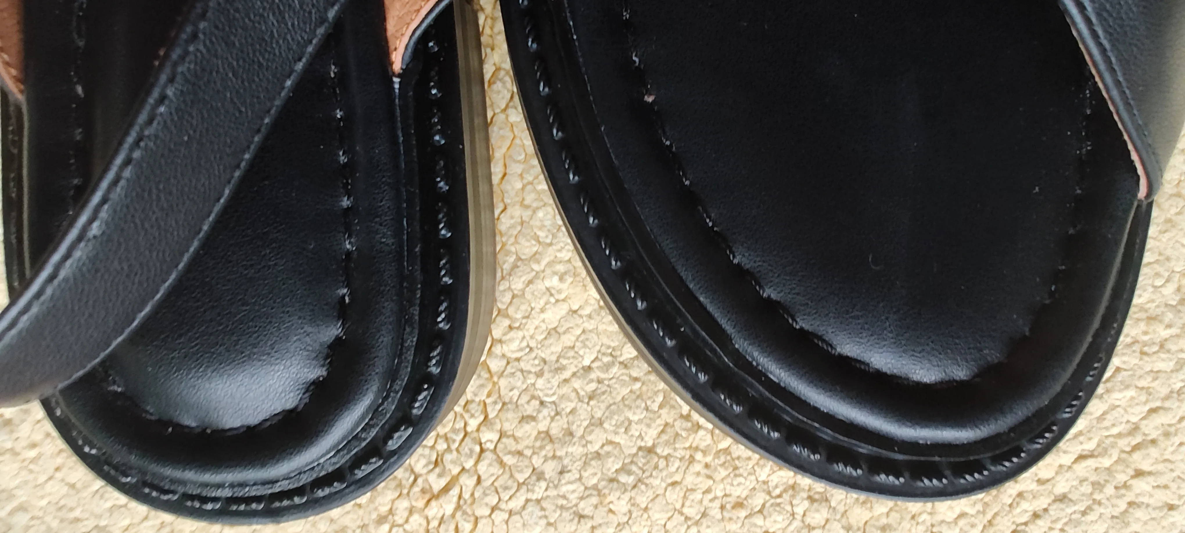 Сандалии супер качества. Прошиты идеально. На 35 худую стопу подошёл 36.Полнота как по мне шили. Пахнут клеем и КОЖЕЙ!