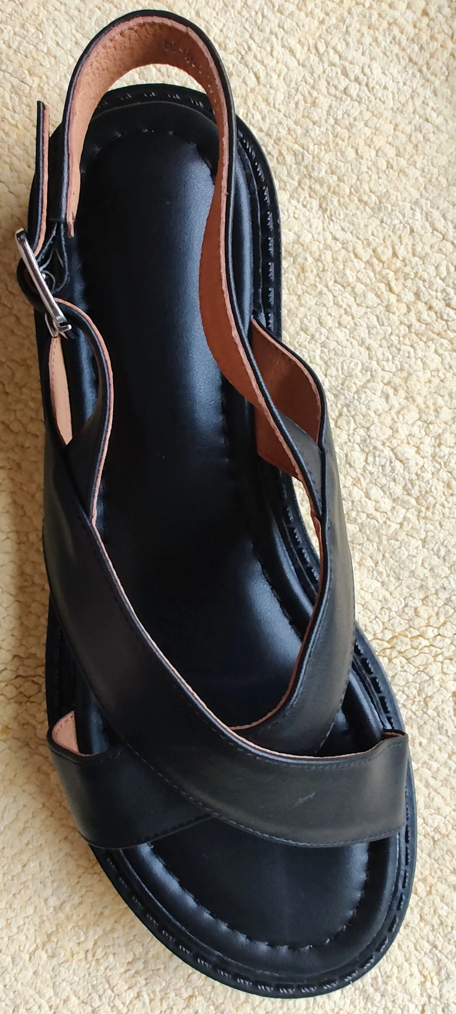 Сандалии подошли на р.39 размер (стопа 25 см). При этом были опасения, что не пройду в ширине стопы, т.к. у меня широкая нога, но сандалии подходят для широкой стопы. Между швами в самой широкой части стопы на стельке около 8.5 см ширина. Сами сандалии удобные, легко надевать, сзади есть резинка возле ремешка. Есть недочёты с обрезкой по контуру на подошве, но это если сильно присматриваться, не заметно на общем плане, поэтому оценку не снижаю. Был сильный запах клея, но 3 дня на балконе и всё выветрилось. Но это очевидно, т.к. обувь едет с производства. Упаковано в воздушный пакет, ничего не повреждено, хотя слегка помялись, но это должно выправиться в носке.