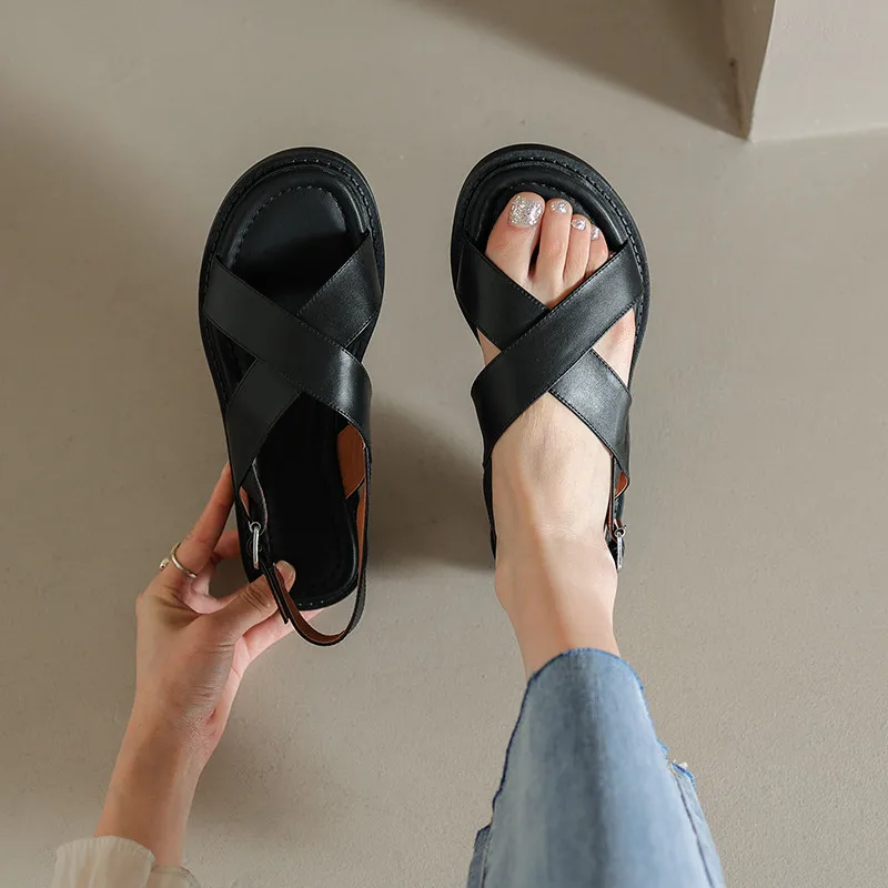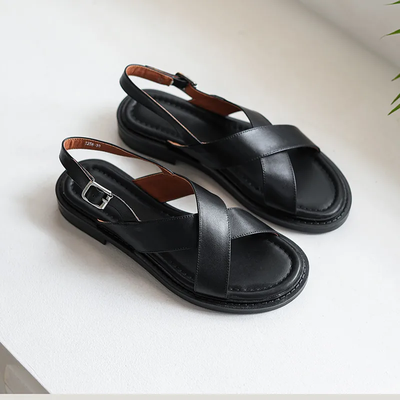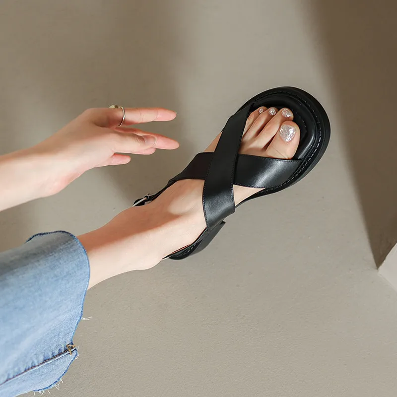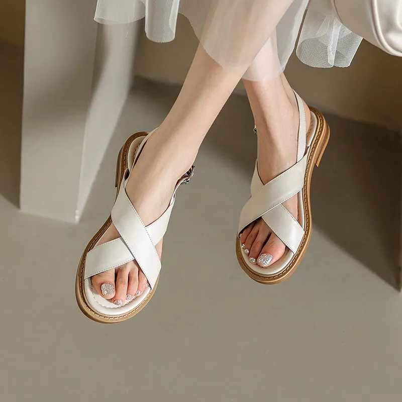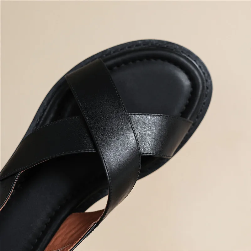 FEDONAS Women Sandals Retro Gladiator Casual Pumps Genuine Leather Low Heels...
