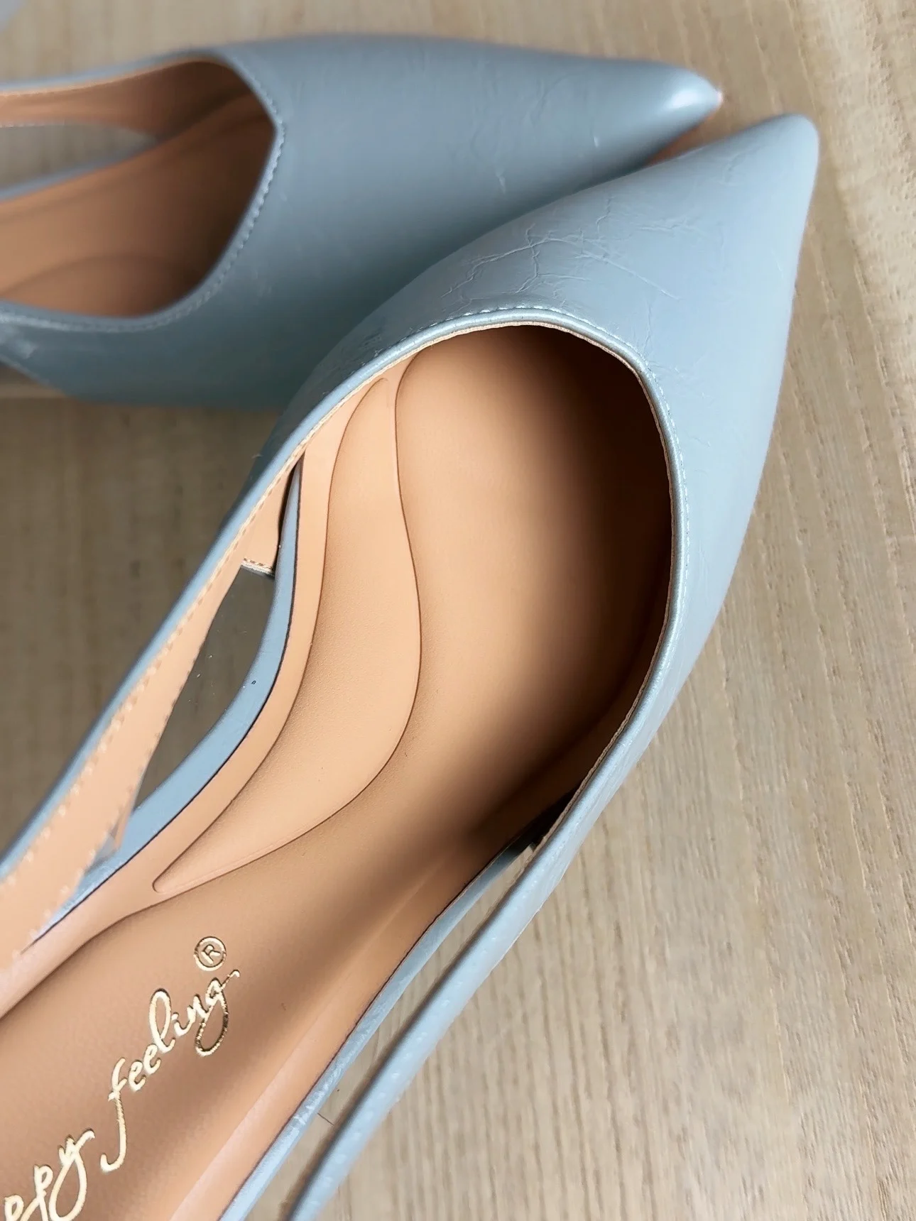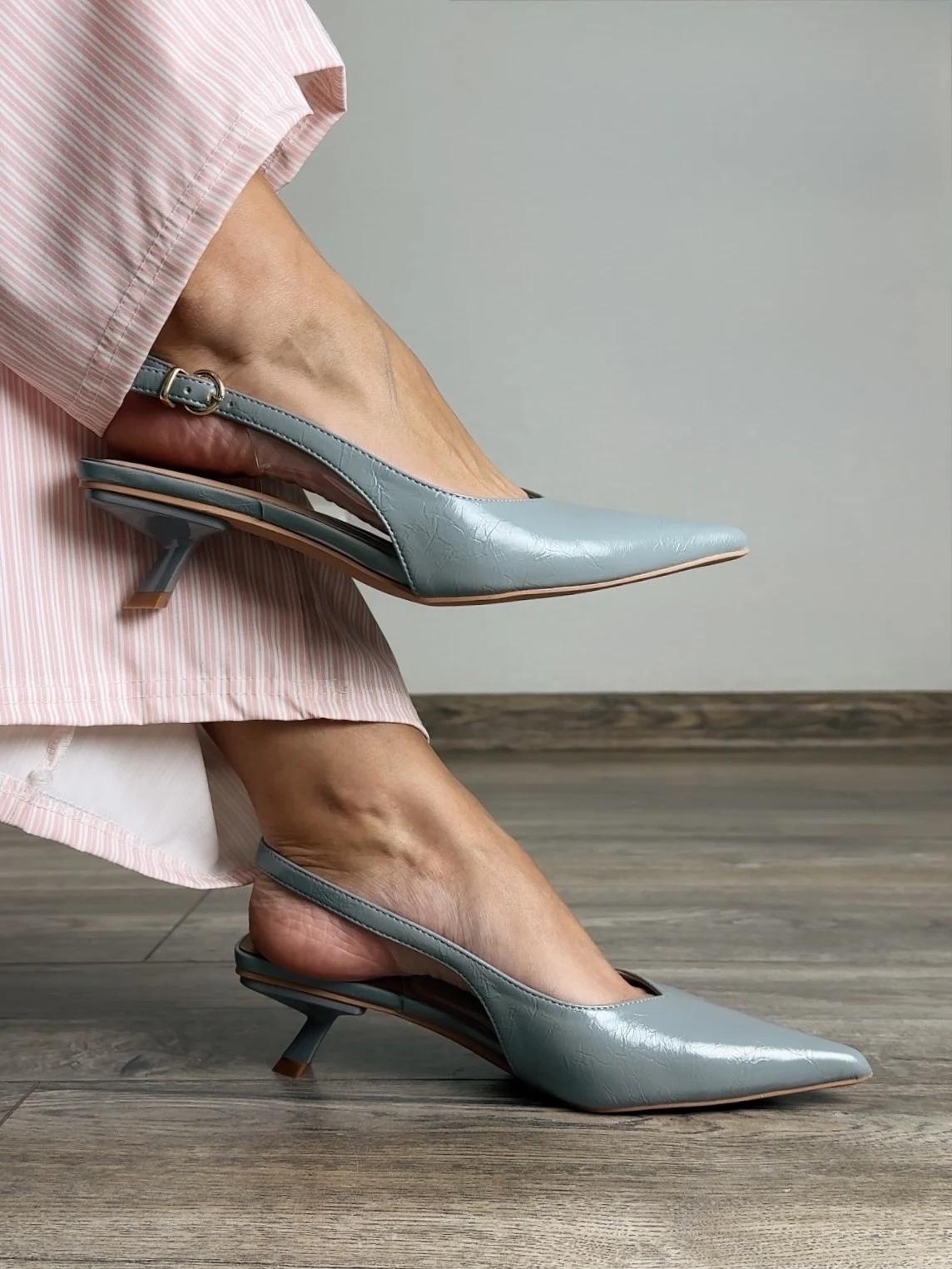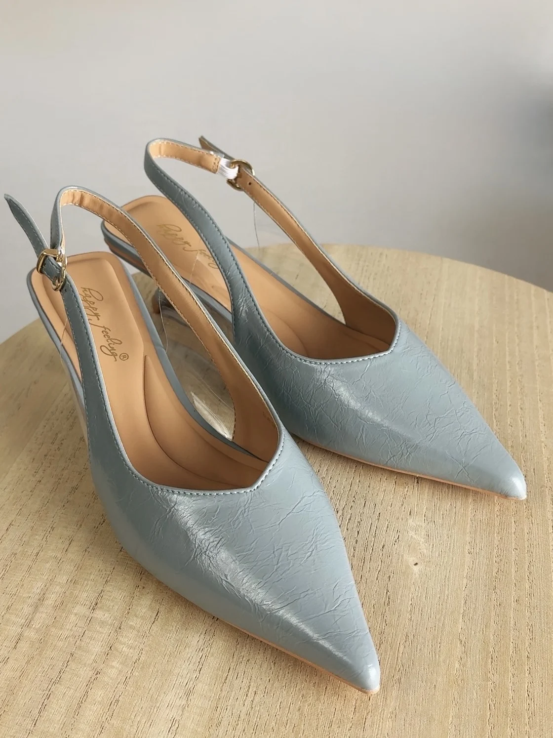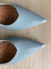 Как же меня радуют бюджетные покупки, особенно когда они превосходят все ожидания. Только посмотрите на эти роскошные слингбэки. Изящные, элегантные, цвет невероятный - очень красивый серо-голубой оттенок. Стелька мягкая с выпуклыми элементами, которая поддерживает стопу и равномерно распределяет нагрузку при ходьбе. Нужно ли говорить о том, какие они удобные? Каблук kitten hell не ощущается, ходишь будто в тапочках. Сбоку есть прозрачные вставки. На длину стопы 22,5 см взяла размер 36-сел идеально. Я в восторге, даже не верится, что обувь за ~1800 может быть такой шикарной.