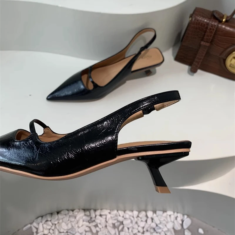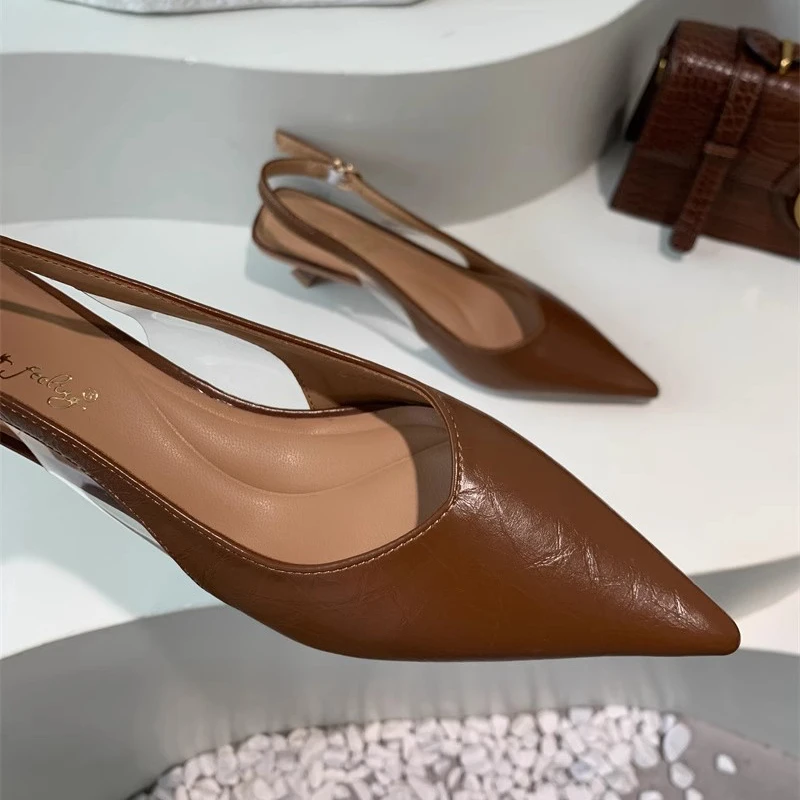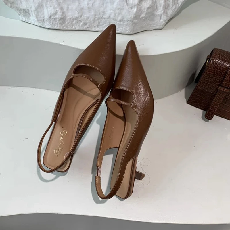 SUOJIALUN/Новые летние женские сандалии, модные женские туфли без шнуровки с острым носком, элегантные туфли без шнуровки на тонком среднем каблуке, модельные сабо