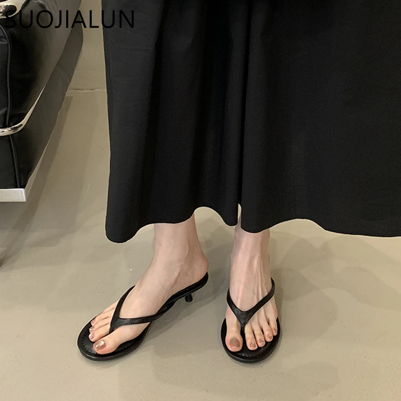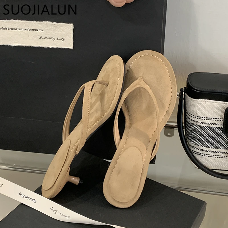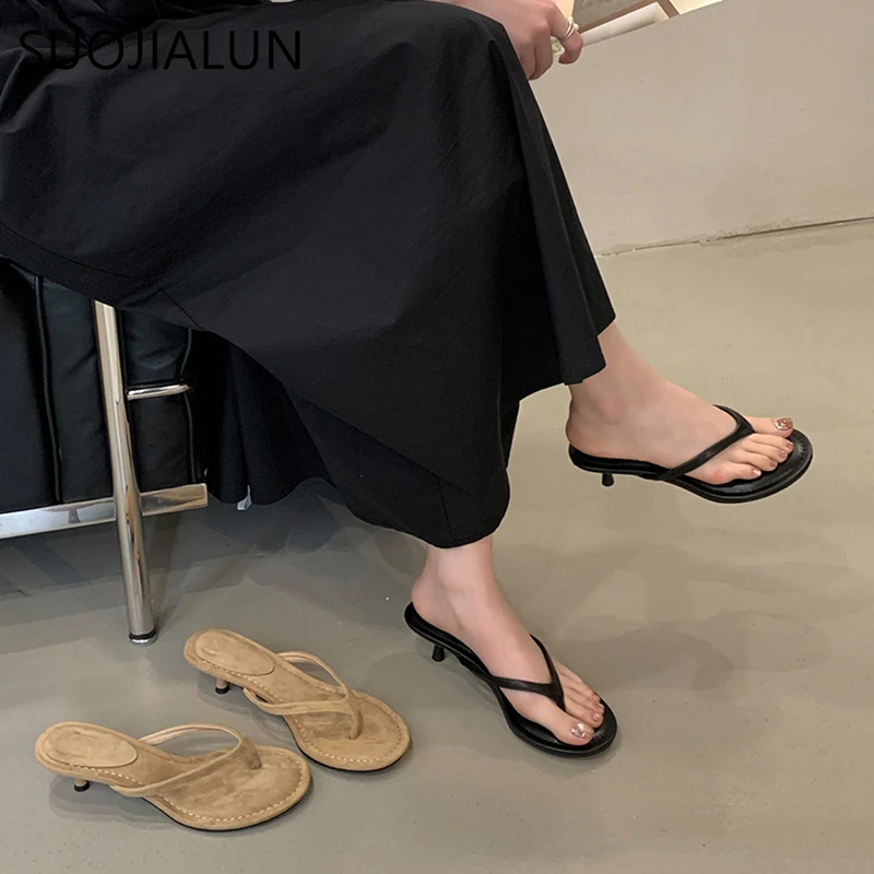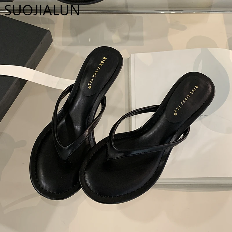 SUOJIALUN 2025 летние новые брендовые женские тапочки, модные женские повседневные шлепанцы с узким ремешком, уличное платье, сандалии для отпуска на плоском каблуке