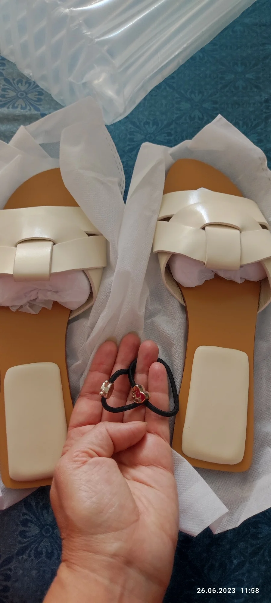 Получила посылку через 10 дней после оформления заказа в Израиль. С продавцом общалась по поводу размера , он любезно и доступно все рассказал мне и посоветовал. У меня косточки на ногах и я боялась что босоножки не пройдут, если они не будут мягкими. На свои 25.5 = размер 10 подошёл огонь !!!! Мягкие , стильные, удобные и красивые босоножки. Одна из самых удачных покупок обуви на Али. Продавец в подарок положил две резиночки, спасибо ;)))) Однозначно и несомненно рекомендую к покупке !!!