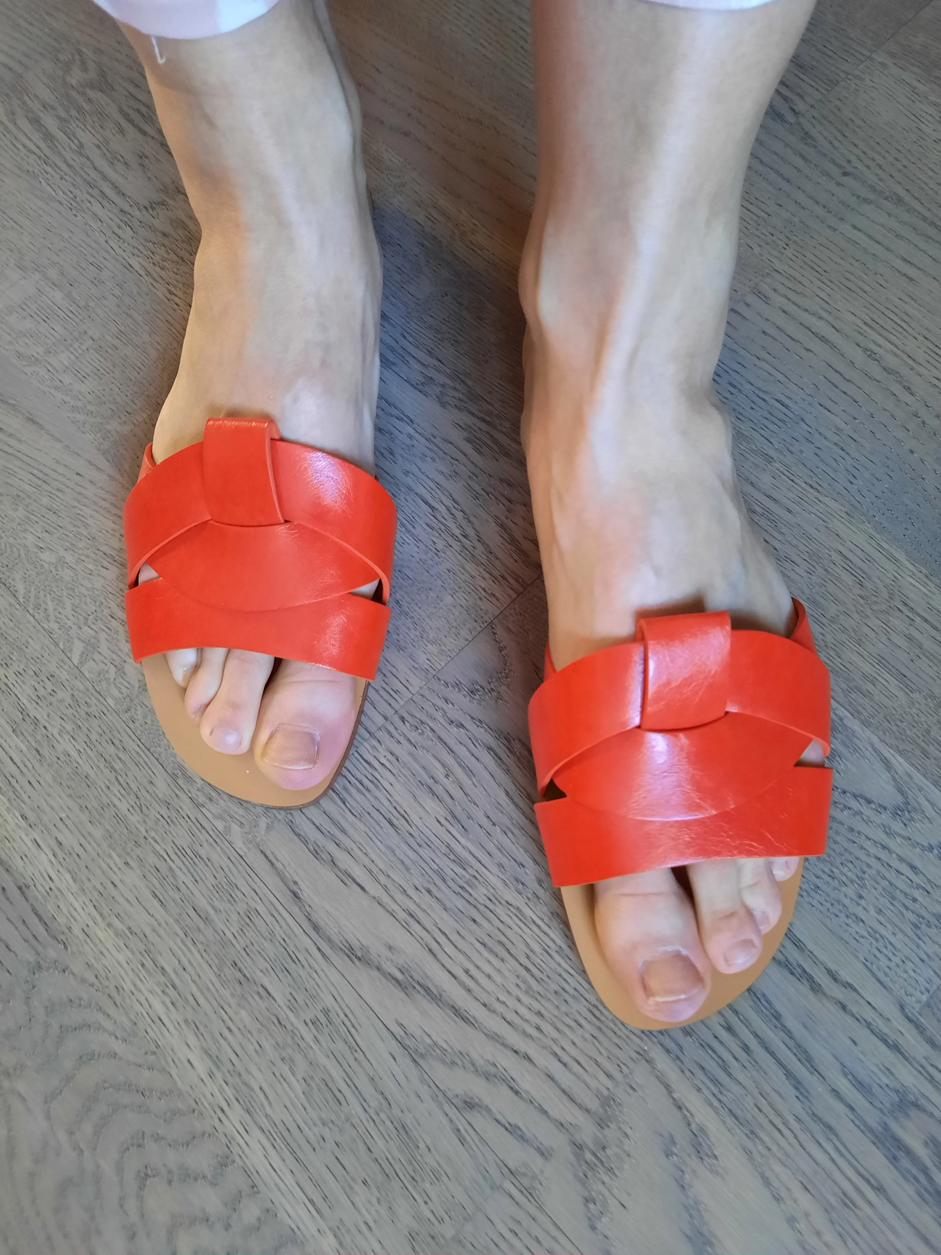 заявлены,как натуральная кожа...что ж... посмотрим в носке,так как не умею определять на внешний вид натуральная ли кожа....брала данный размер на 24,5 см в длину и 9см в ширину.ноги проблемные:с варикозом и выступающими косточками.верх узковат,пихала с небольшим усилием,чтобы влезли.по итогу, пройдясь немного по квартире видно,что нога отьезжает назад,как будто шлепки мне узкие...вывод: или растянутся или будут слетать при ходьбе.подойдут больше девушкам молодым без проблемок с ногами.пока их оставлю и буду тестировать.брала в распродажу.Andrey Y. 26 июня 2023