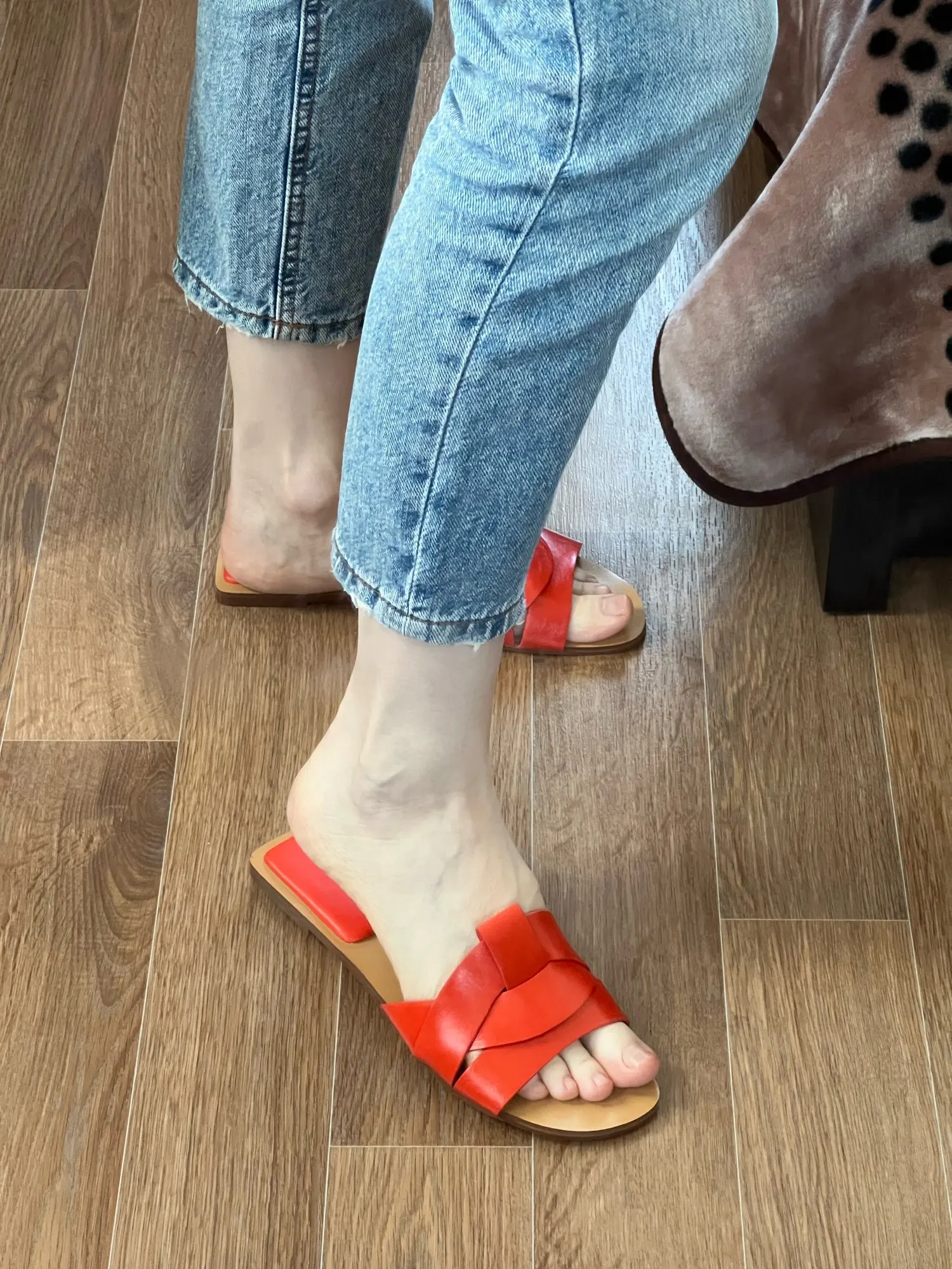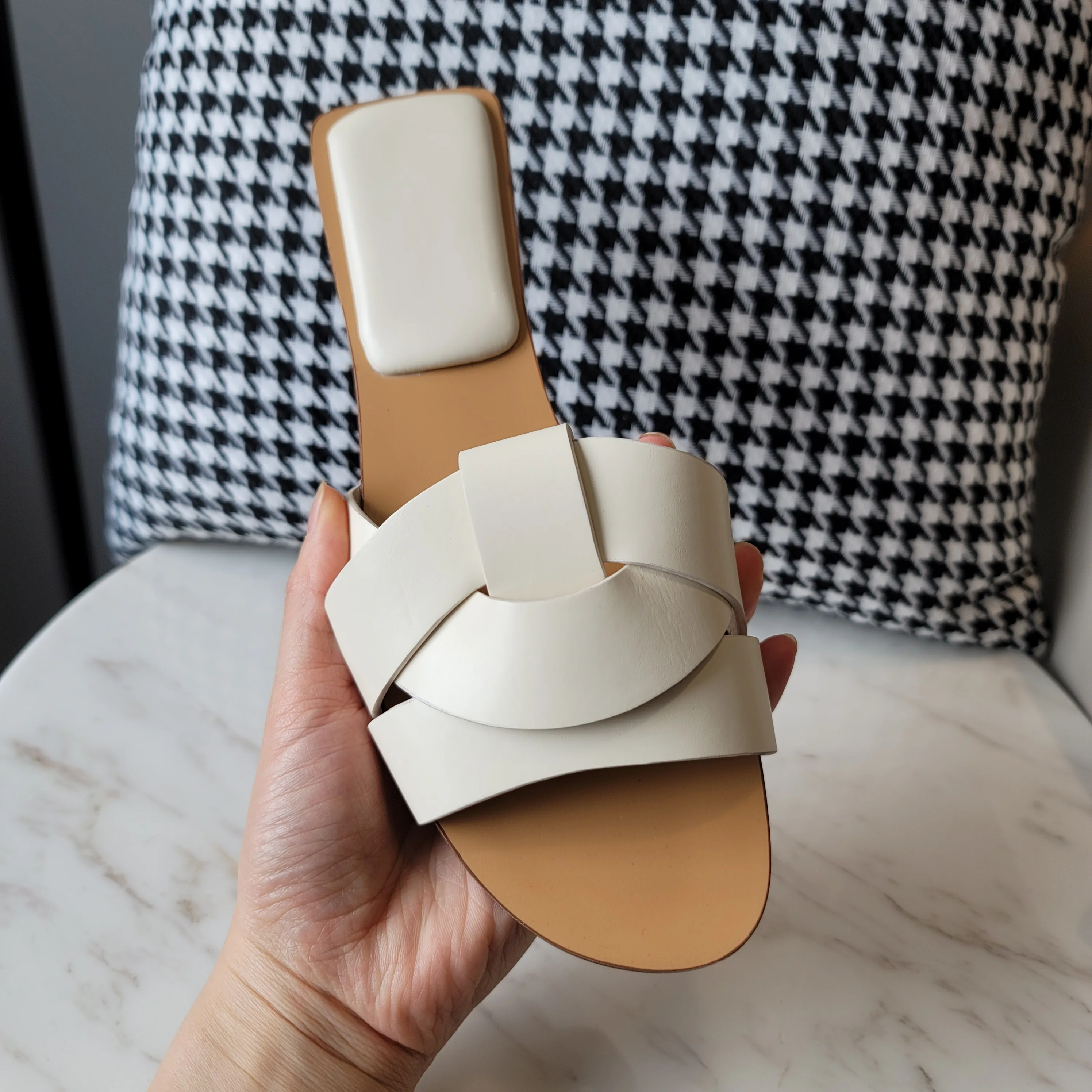 Очень удобные шлепки ZA. У них мягкая пятка. Хорошее качество, однозначно возьму с собой в отпуск на море. Выполнены аккуратно. Материал натуральная кожа. Размер 9 немного впритык, но удобно (стелька 25 см).