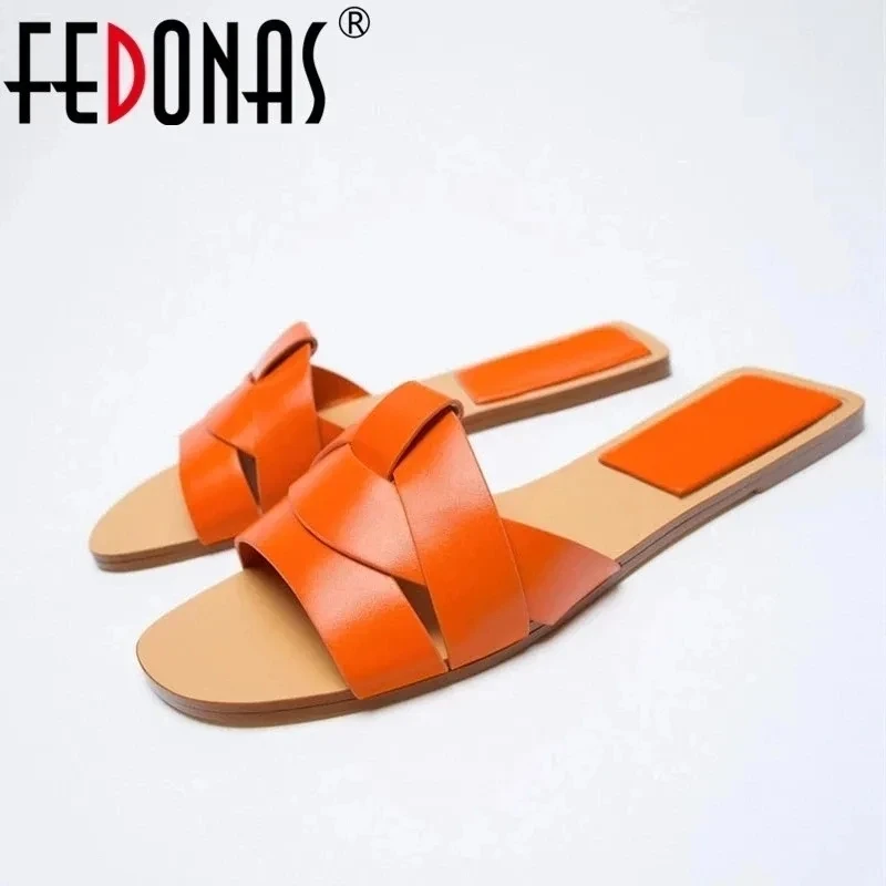 FEDONAS Ins Women Flats Sandals Genuine Leather Comfort Casual Shoes Woman...