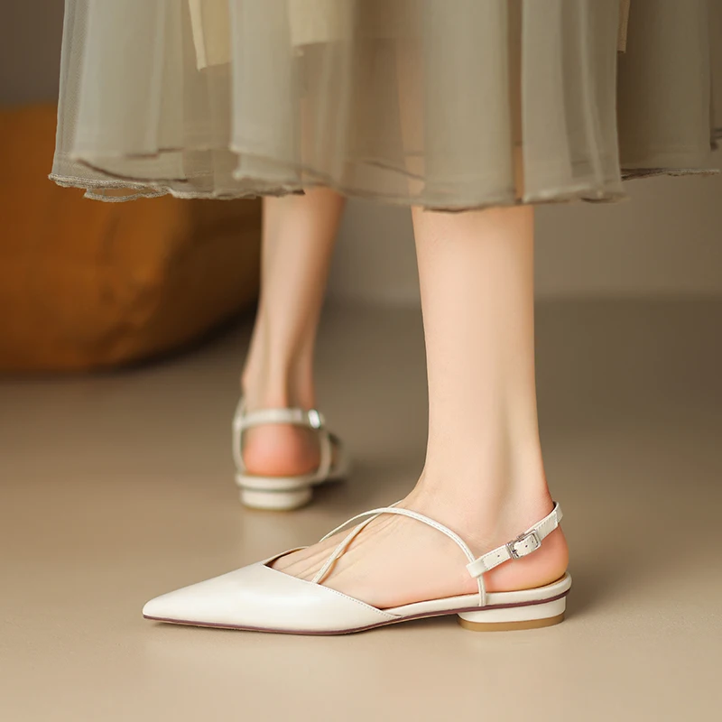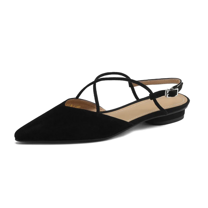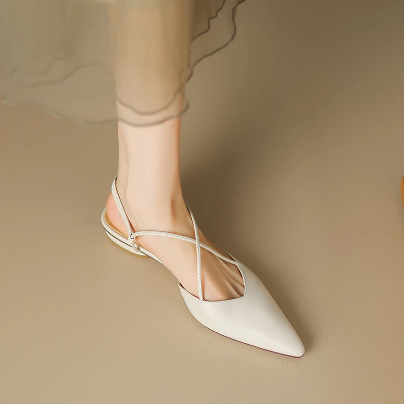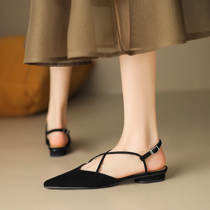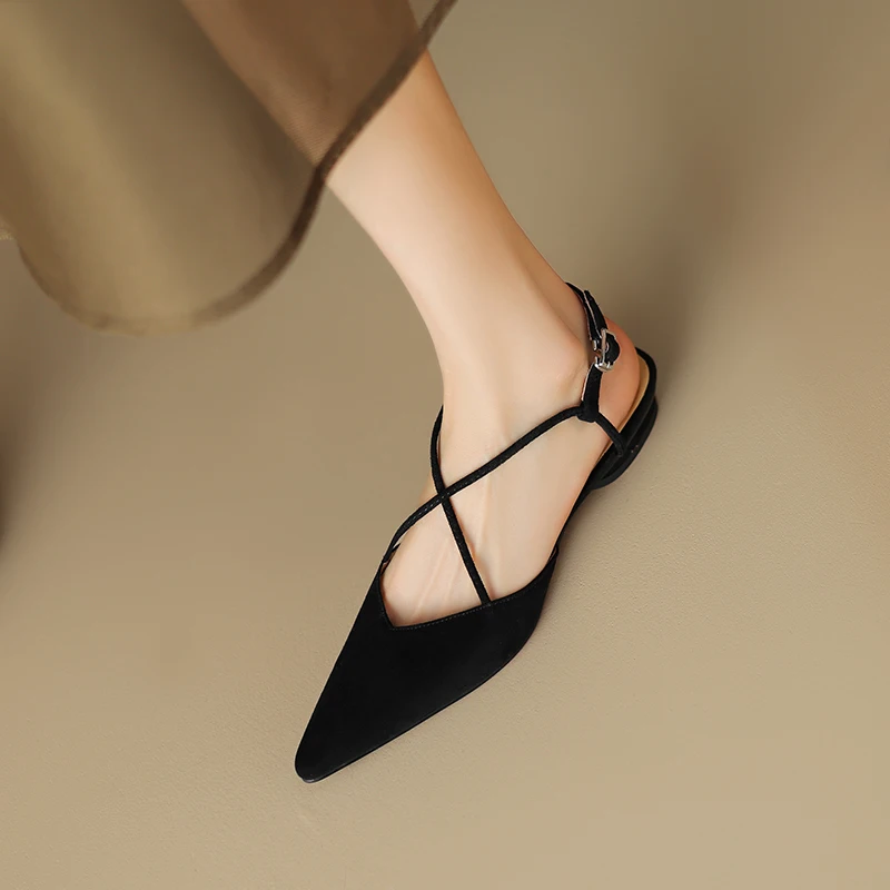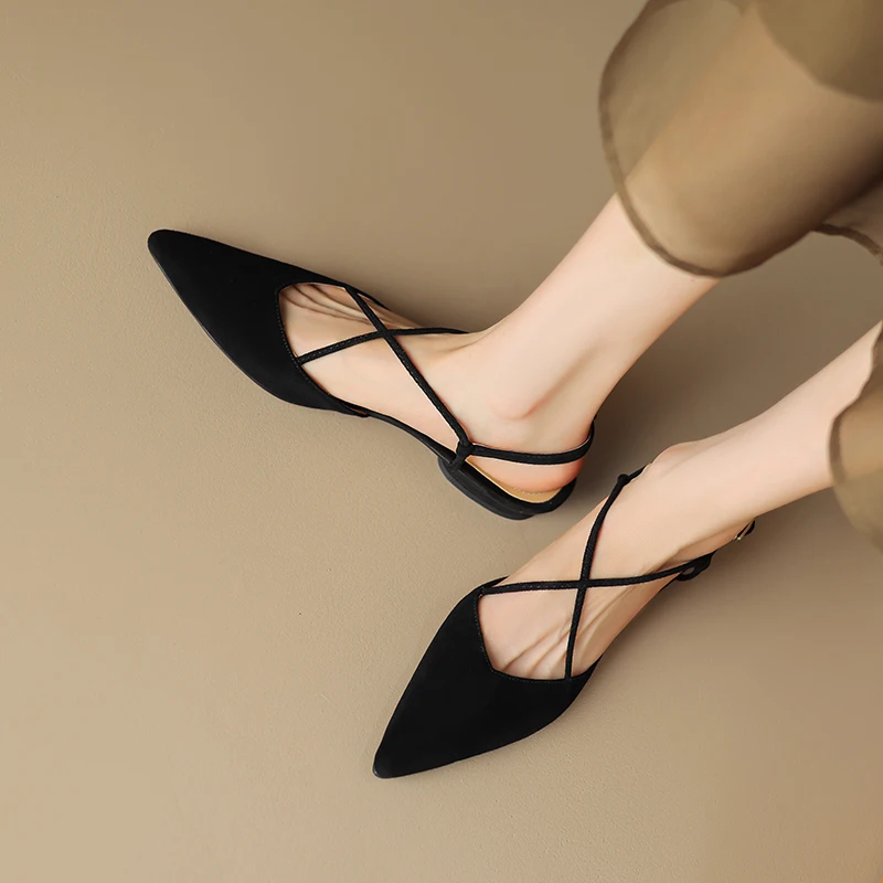 FEDONAS Basic Pointed Toe Women Sandals Cross-Tied Low Heels Pumps Genuine...