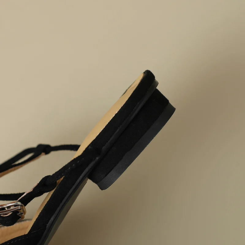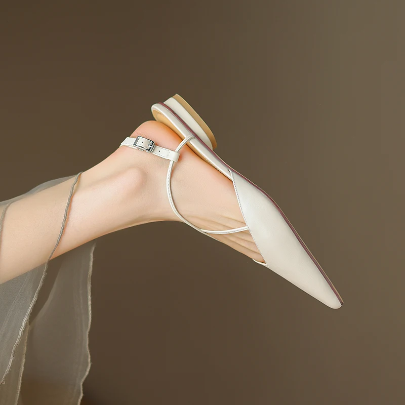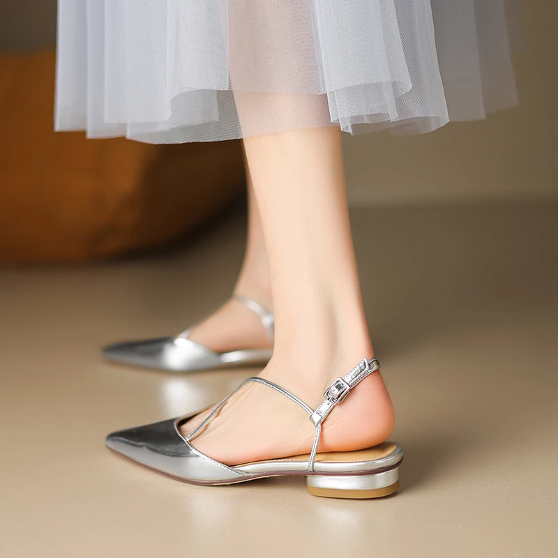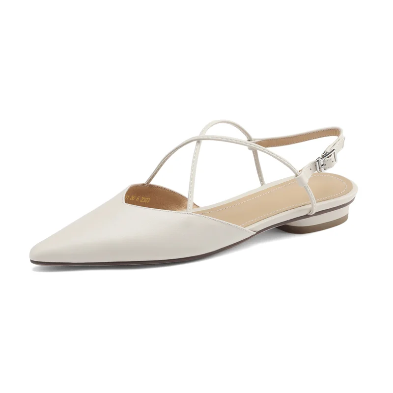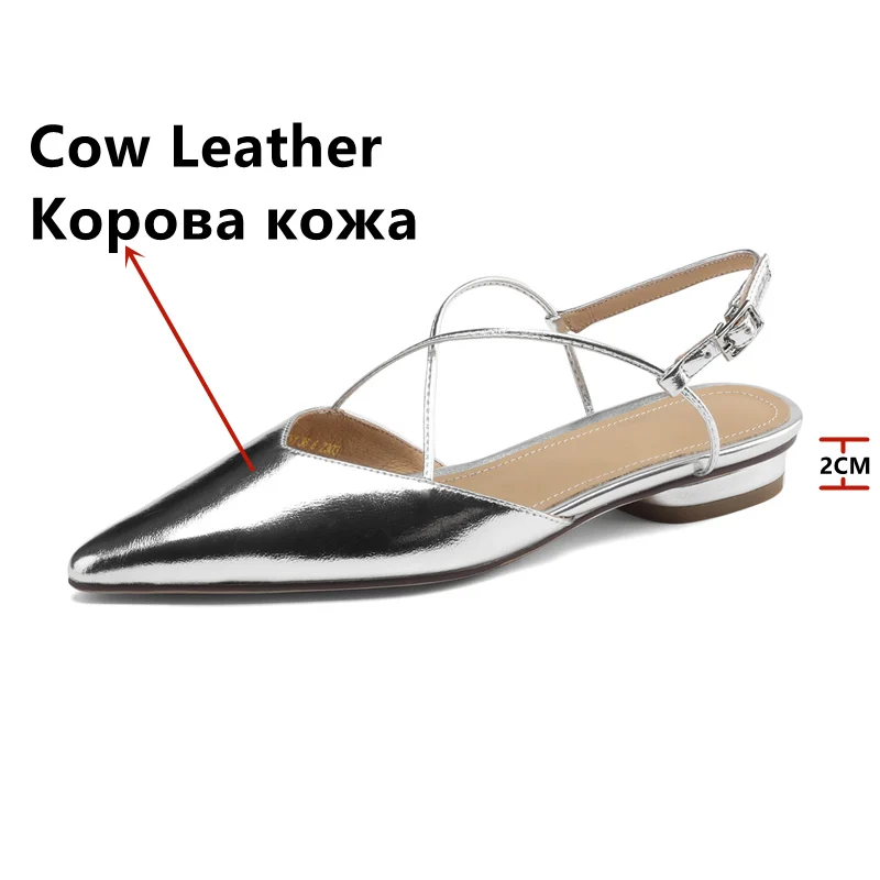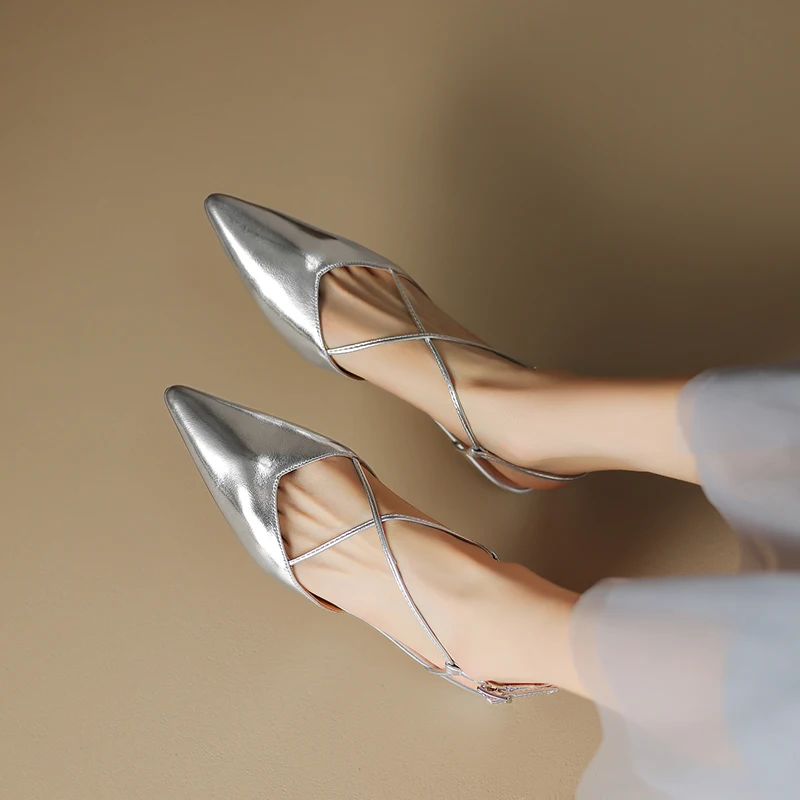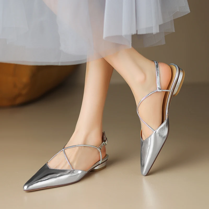 FEDONAS Basic Pointed Toe Women Sandals Cross-Tied Low Heels Pumps Genuine...
