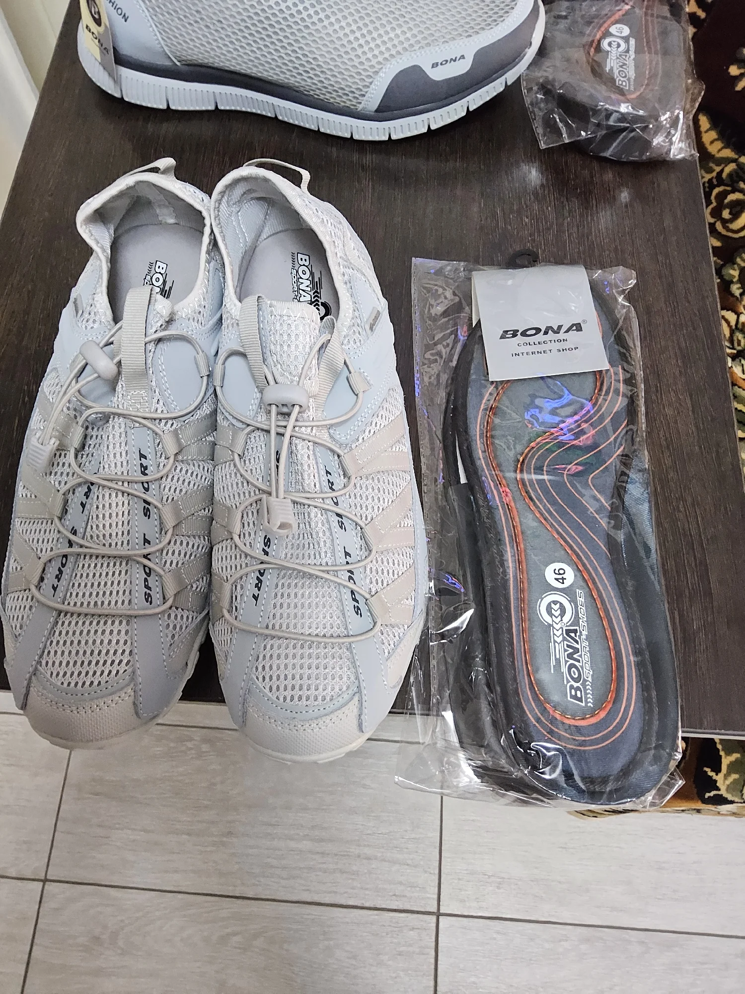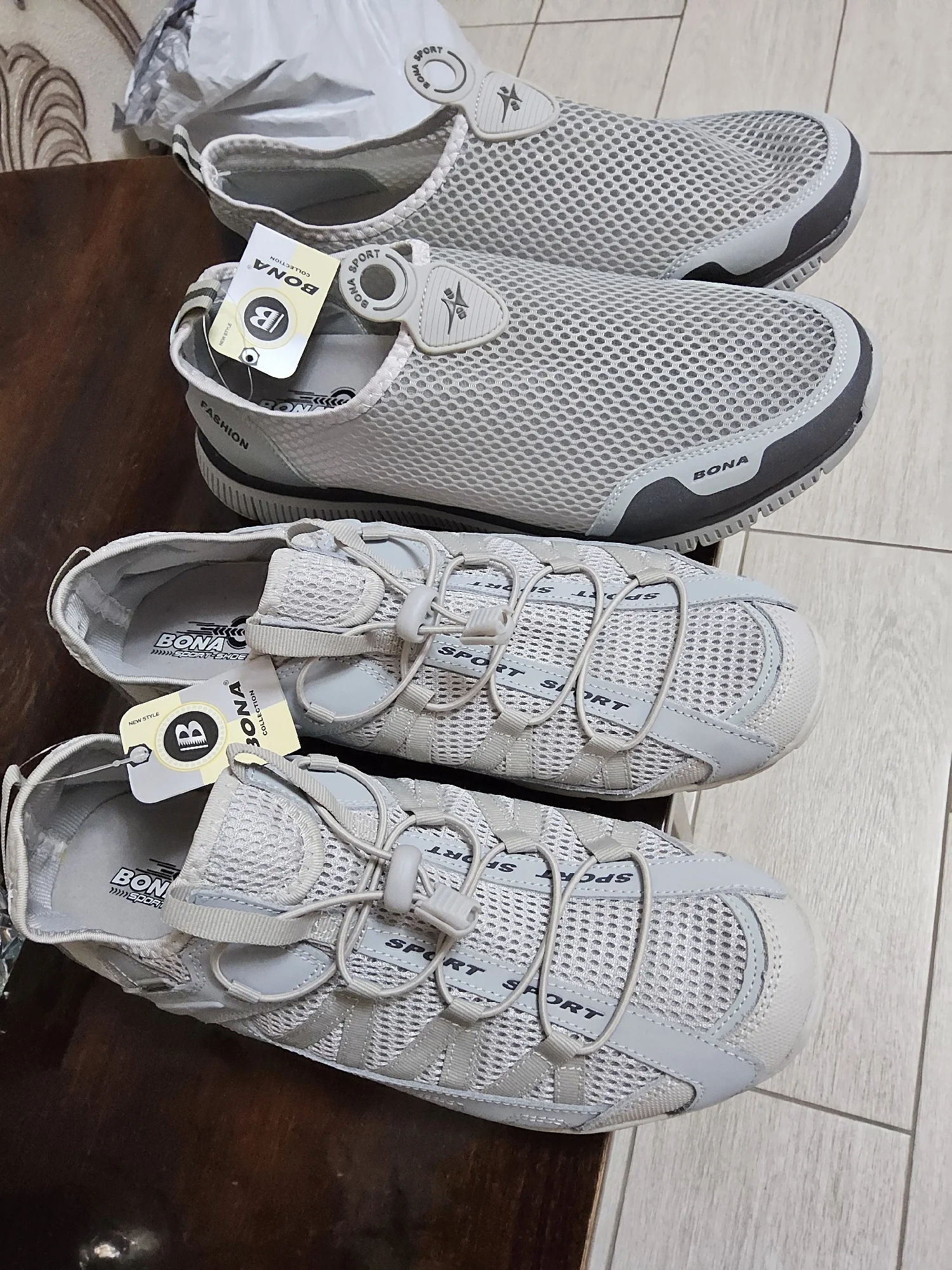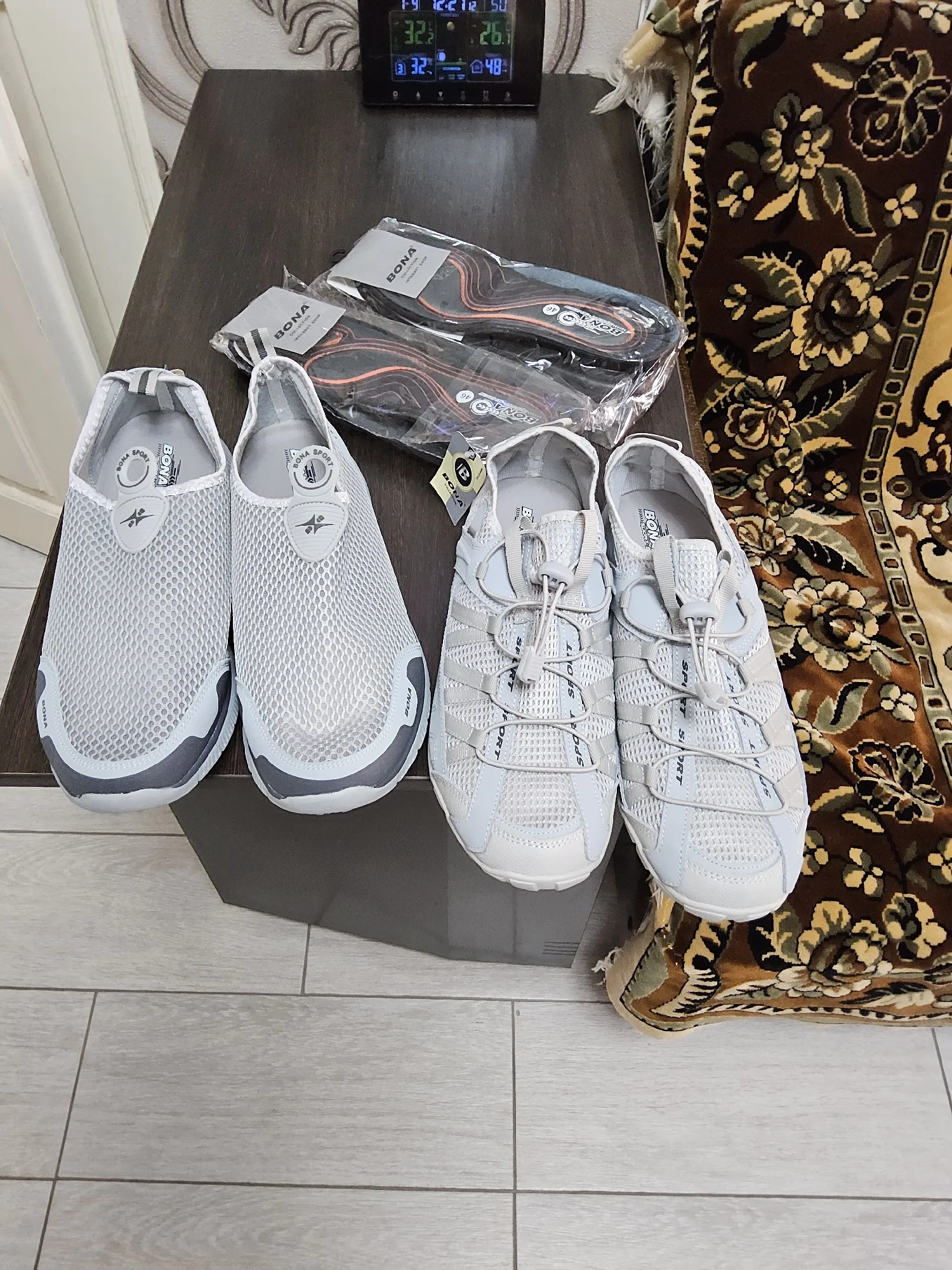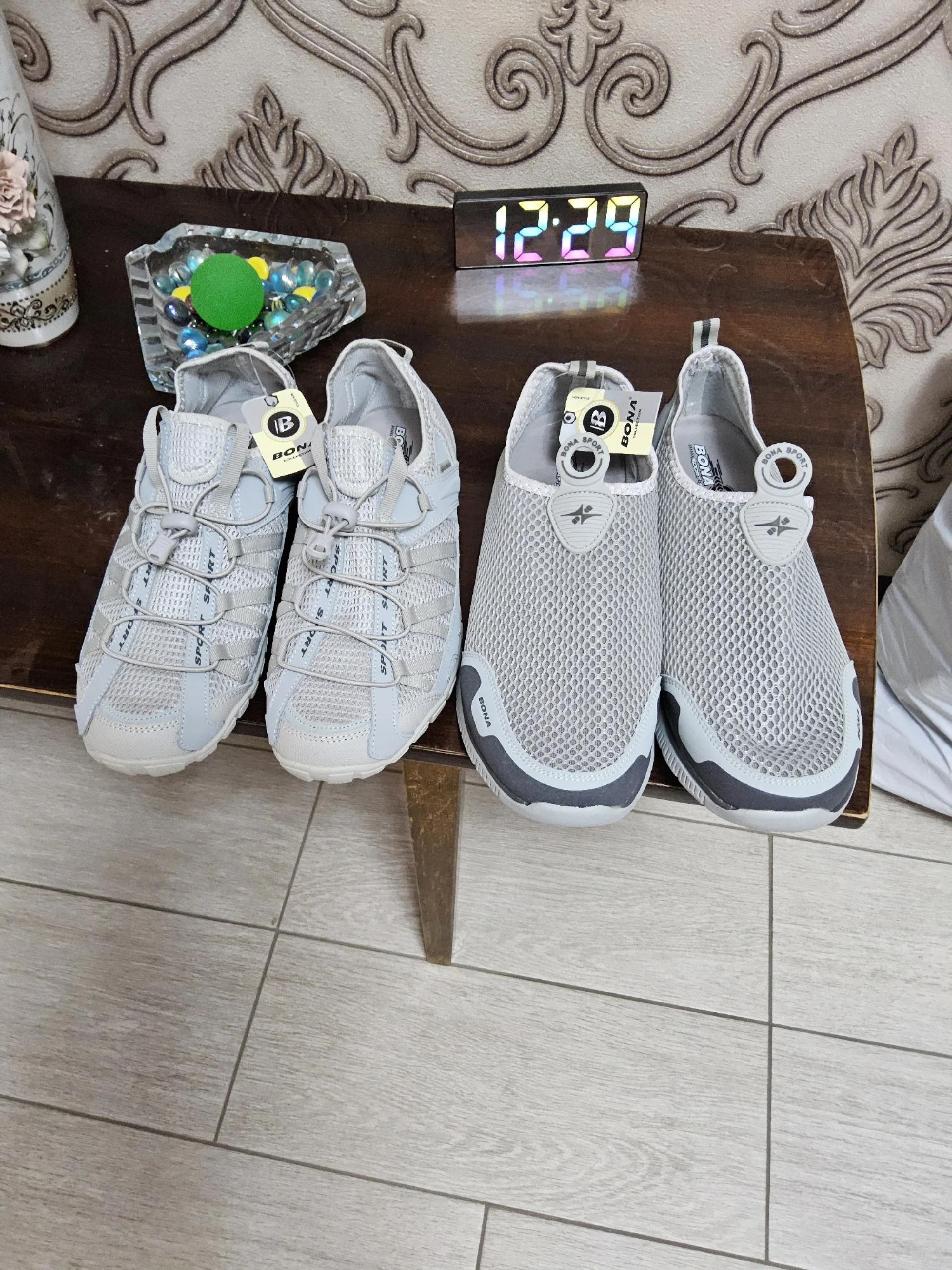 Обувь криво сшита и не соответствует размеру. 1. Брак - обувь сшита криво и не симметрично относительно друг друга на 1,0 см. - левый кроссовок прошит сбоку выше правого на 1,0 см. - а у носка наоборот правый прошит выше левого на 1,0 см. 2. Несоответствие размера - пятка мягкая, тянется за предел подошвы на 1,0 см - длина стельки 26,5 см это соответствует размеру 41, но мягкая тянущаяся пятка увеличивает посадку стопы на 1,0 см, в результате получается на 1-2 размера больше Общее впечатление: - модель интересная, материалы не плохие, исполнение отвратительное. - подошва - типа кеды, литая резина, без пустот (это плюс), однослойная, без амортизирующей прослойки из мягкой резины (это минус), ноге жестко и некомфортно. - стелька (говоно) очень мягкий полеуретан (никак не смягчает жесткость подошвы), стоит сразу заменить на перфорированную (дышащую) из более плотного полиуретана, это добавит амртизации за одно. - основной материал похож на натуральную кожу, но х/з. - шнурки резинка (говно) сильно тянутся, стоит заменить, иначе нет натяга в шнуровке. - пятка мягкая (с пляжным вариантом носки типа тапок без пятки), из за этого тянется удлиняя посадку стопы на 1-1,5 см, а это плюс 1-2 размера. - исполнение дешовое без изгиба под стопу (привет плоскостопие), необходимо под стельку вклеивать супинатор (купить или вырезать из плотного полиуретана). Статистика покупок «Бона»: - покупал 4 раза разные, 3 из 4 - брак, кривая обувь (либо сразу на дачу, либо подарить бомжам), спор, частичный возврат денег через Али. Вывод: - либо качество изготовления лотерея, либо продавец через Али сбывает брак (расчет на лоха), обувь в принципе на весьма невзыскательный вкус. - риск брака 75%, играть в это стоит только при снижении ценника к 1.500₽, сам продавец (в чате) заявляет что производство ручное, и криво это нормально. …на фото все наглядно.