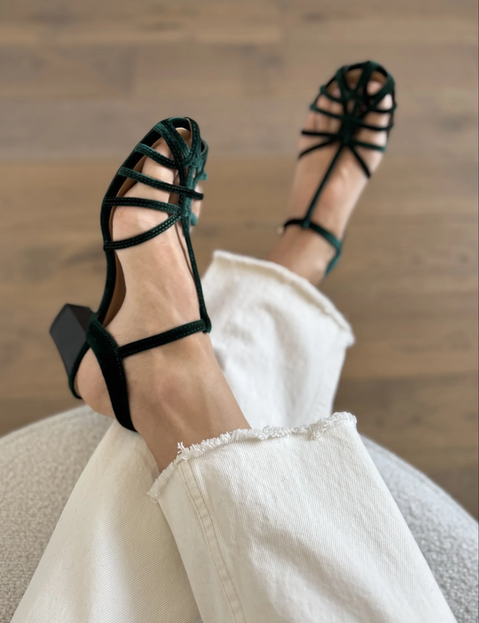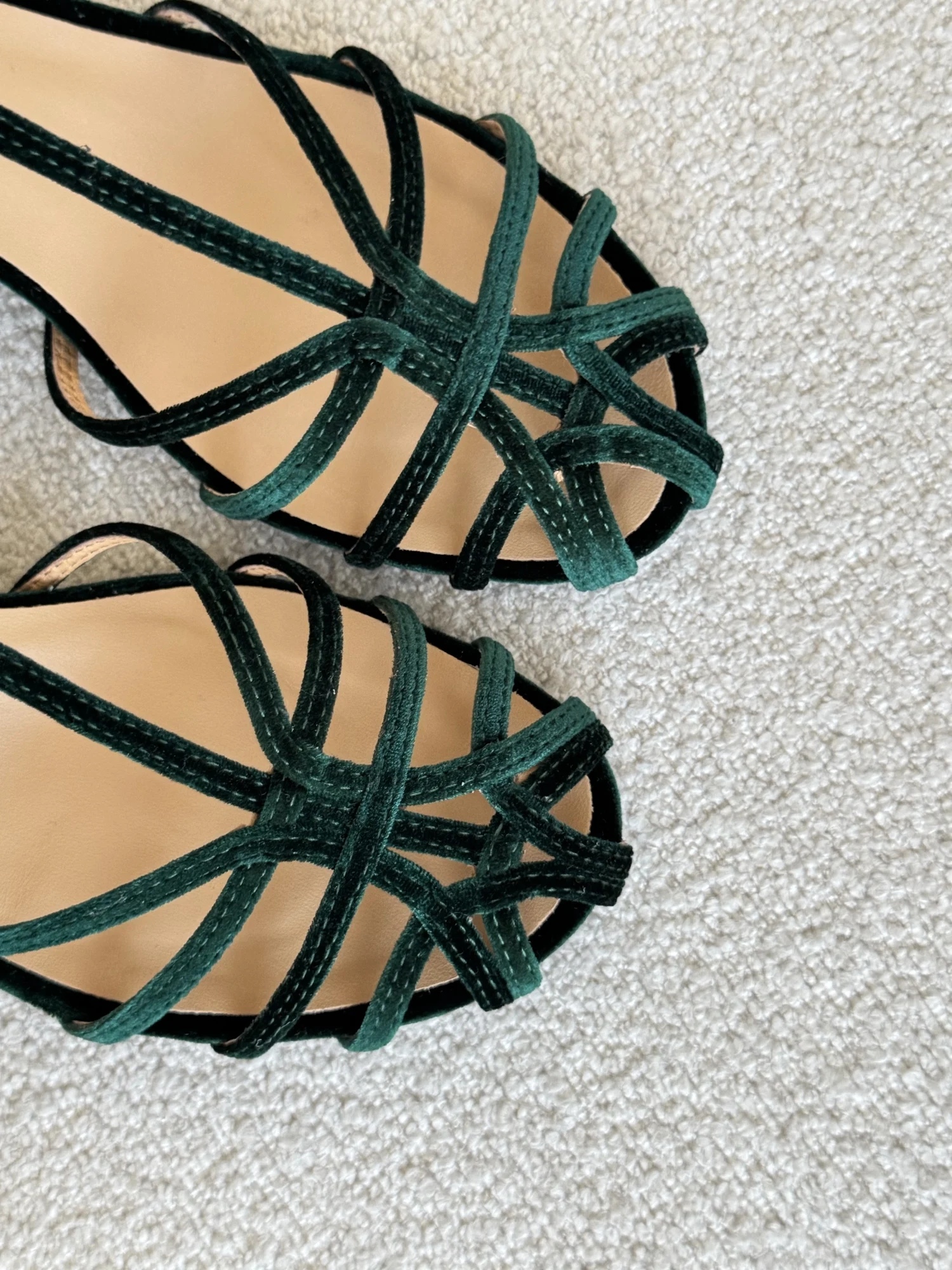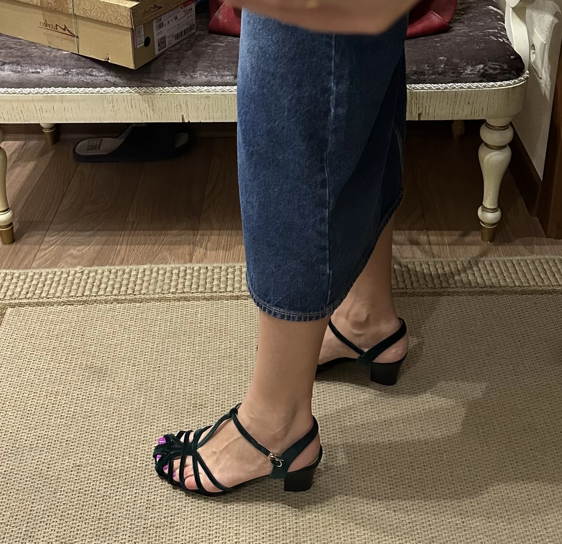 Очень красивые и элегантные босоножки! Выполнены из натуральной кожи. В носке очень удобные и мягкие, не будут натирать. Высота каблука 6 см. Я взяла размер 7.5 на стопу 24 см. Возможно, мне бы подошел и размер меньше, так как есть запас ~4-5 мм.