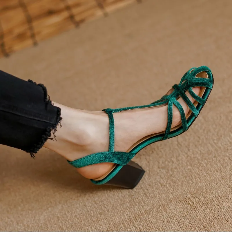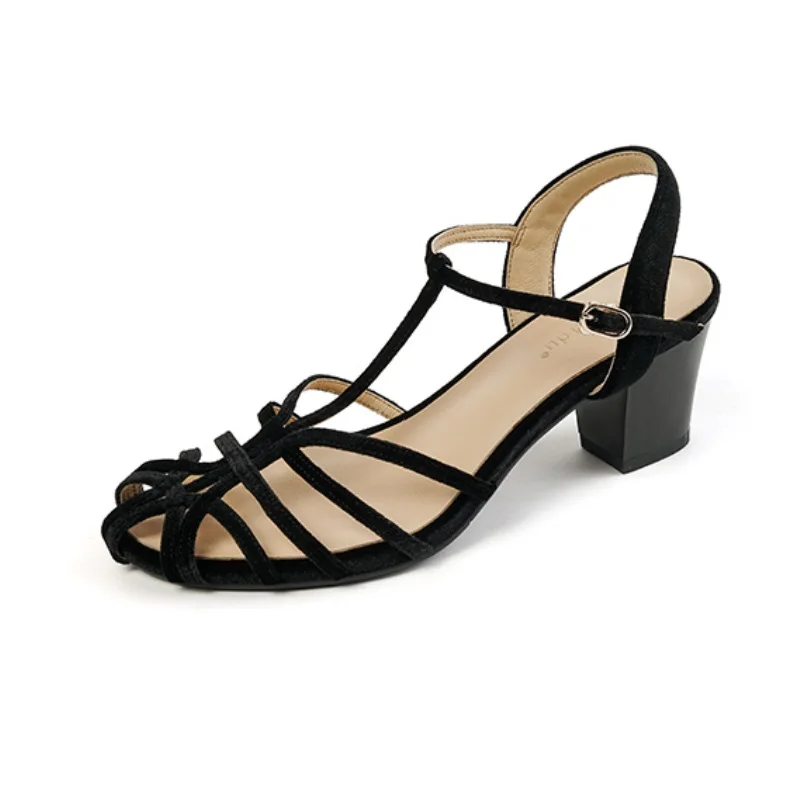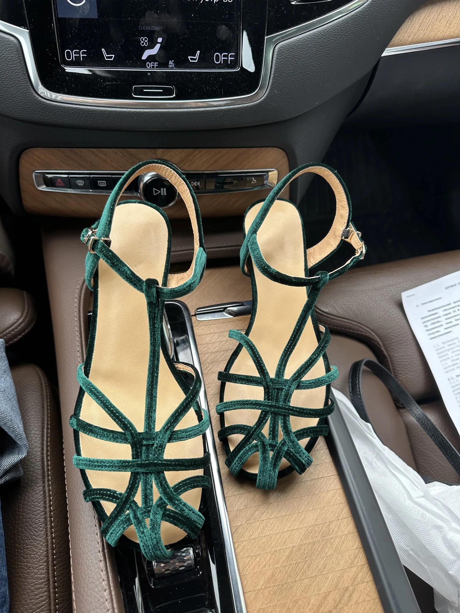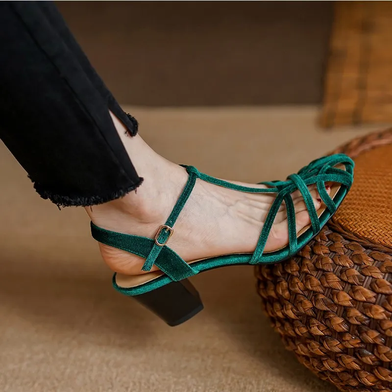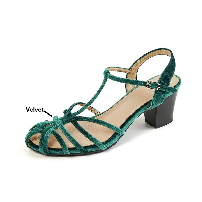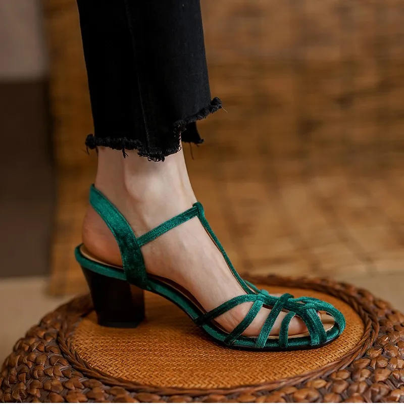 Womens' Sandals Retro Ladies Velvet Shoes Spring Vintage Gladiator Buckle Strap...