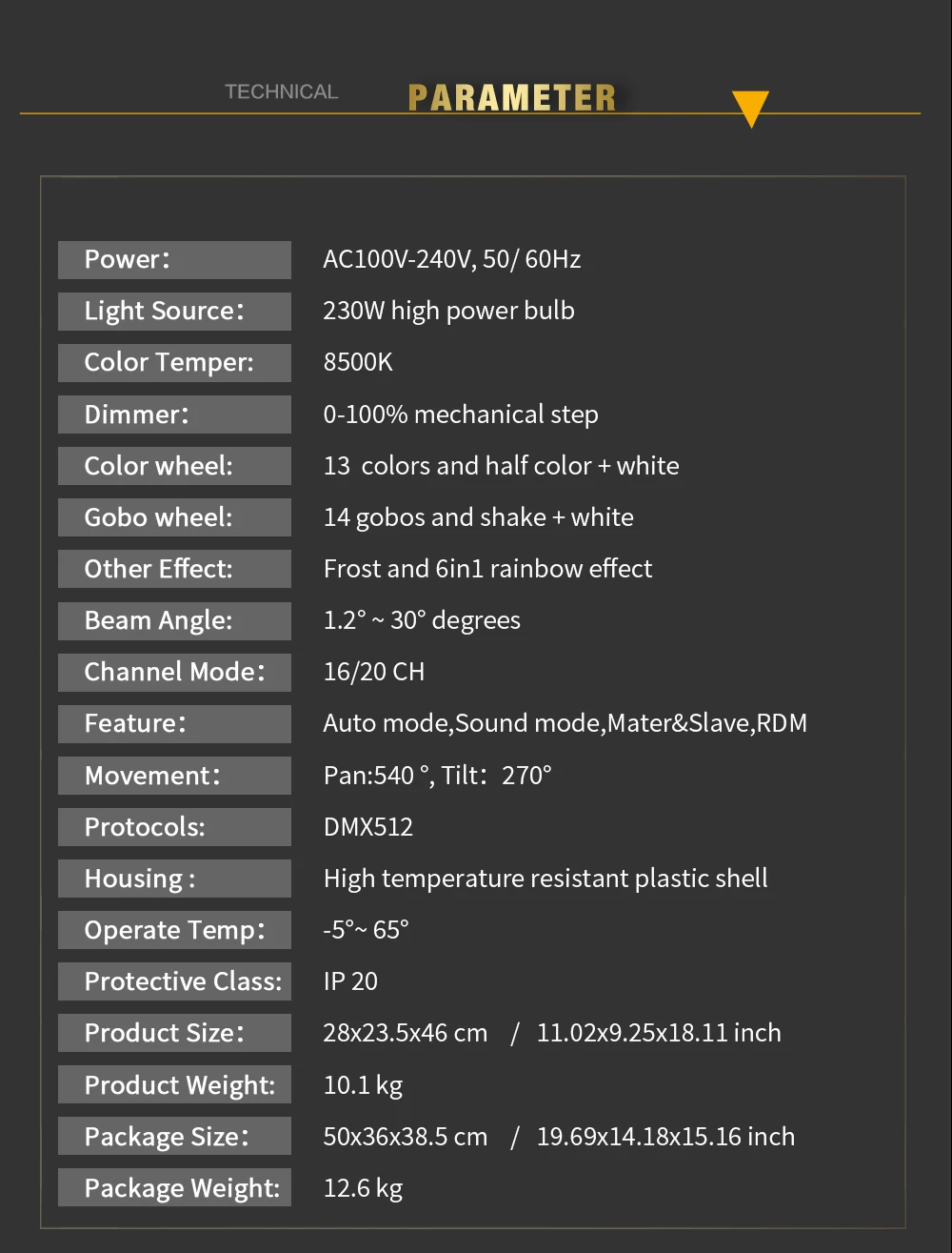 SHEHDS Мини-лампа луч 230 Вт 7R