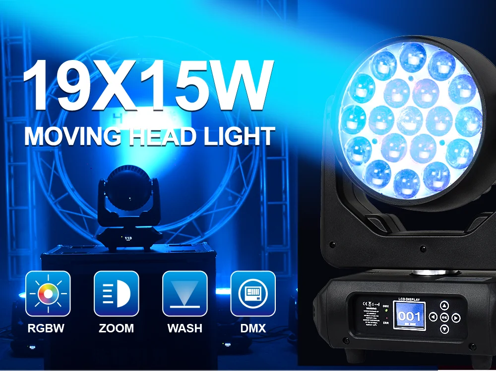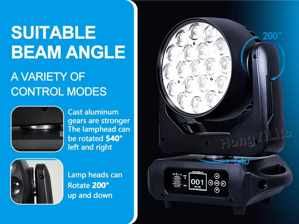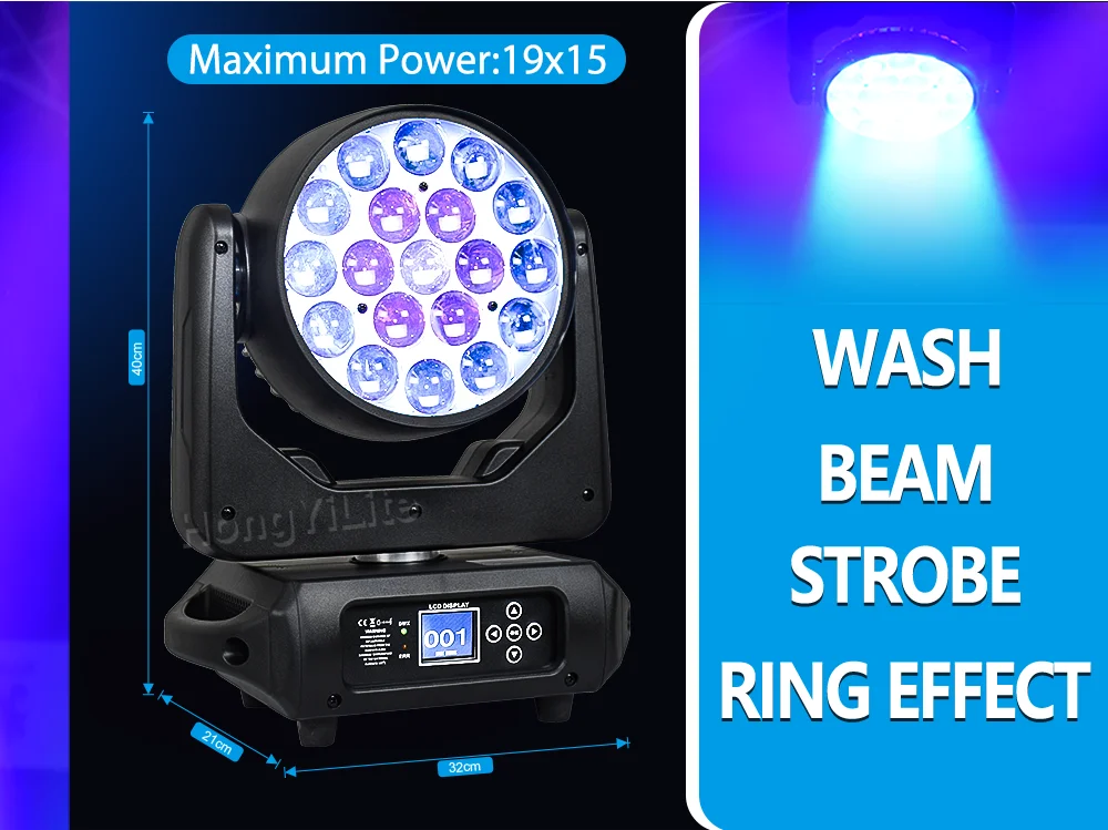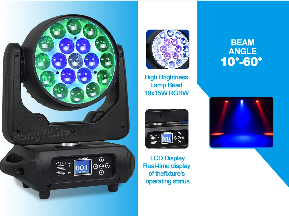 Hong Yi Stage Lighting LED 19x15W RGBW Beam Lyre Wash Zoom