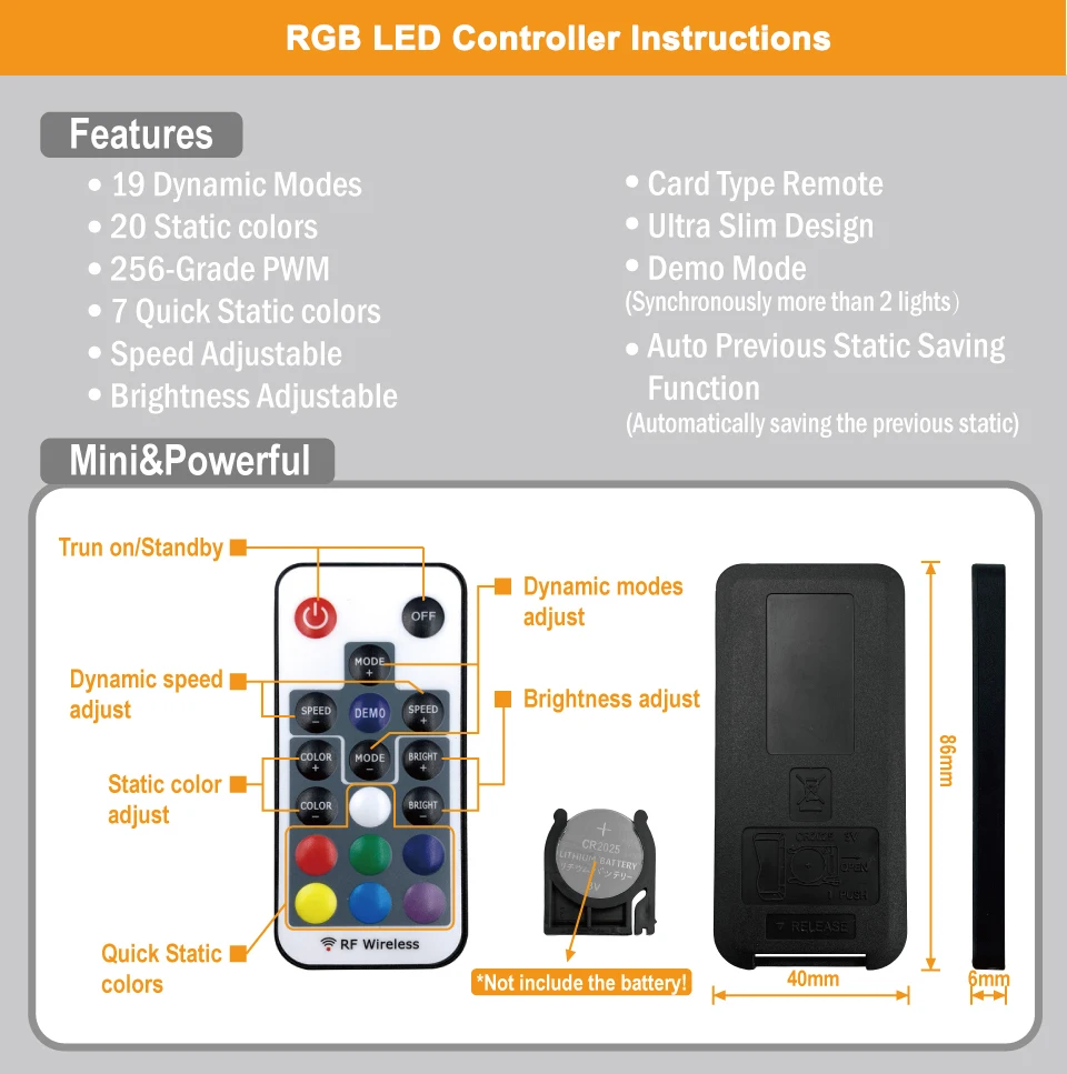 Note:1X Remote Controller(Only for the RGB Changeable one,not include battery.)