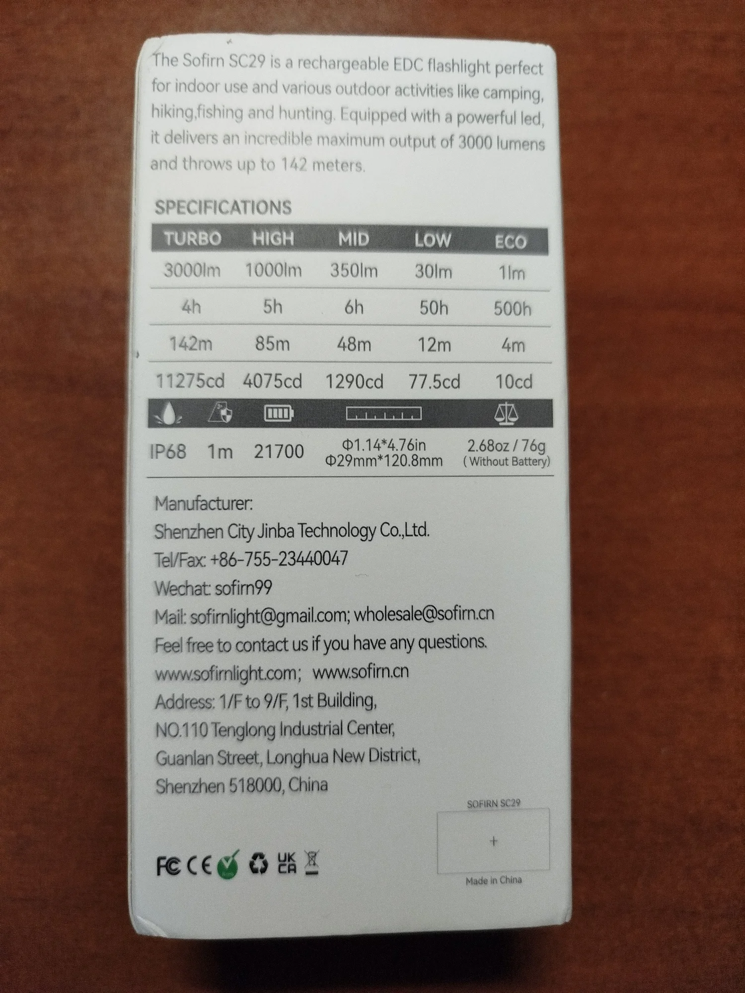 7 дней до Польши. Быстрая доставка. Посылка была хорошо упакована. Стоят заказы. Фонарик очень прочный, как и другие продукты Sofirn. Я рекомендую. На фото показано сравнение SC 29 и SC18.