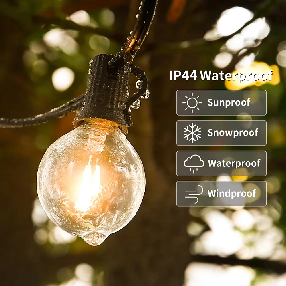 Этот уличный декоративный светильник сертифицирован UL, ROHS, ETL, который обязательно будет самым безопасным вариантом для открытой площадки. Наша техническая команда придерживается концепции экологически чистого освещения и использует энергосберегающие чипы для экономии энергии на 70% или более. Knonew уличные струнные светильники-отличный выбор, если вы хотите сэкономить на затратах на электроэнергию, но при этом привнести немного удовольствия в свое открытое пространство.