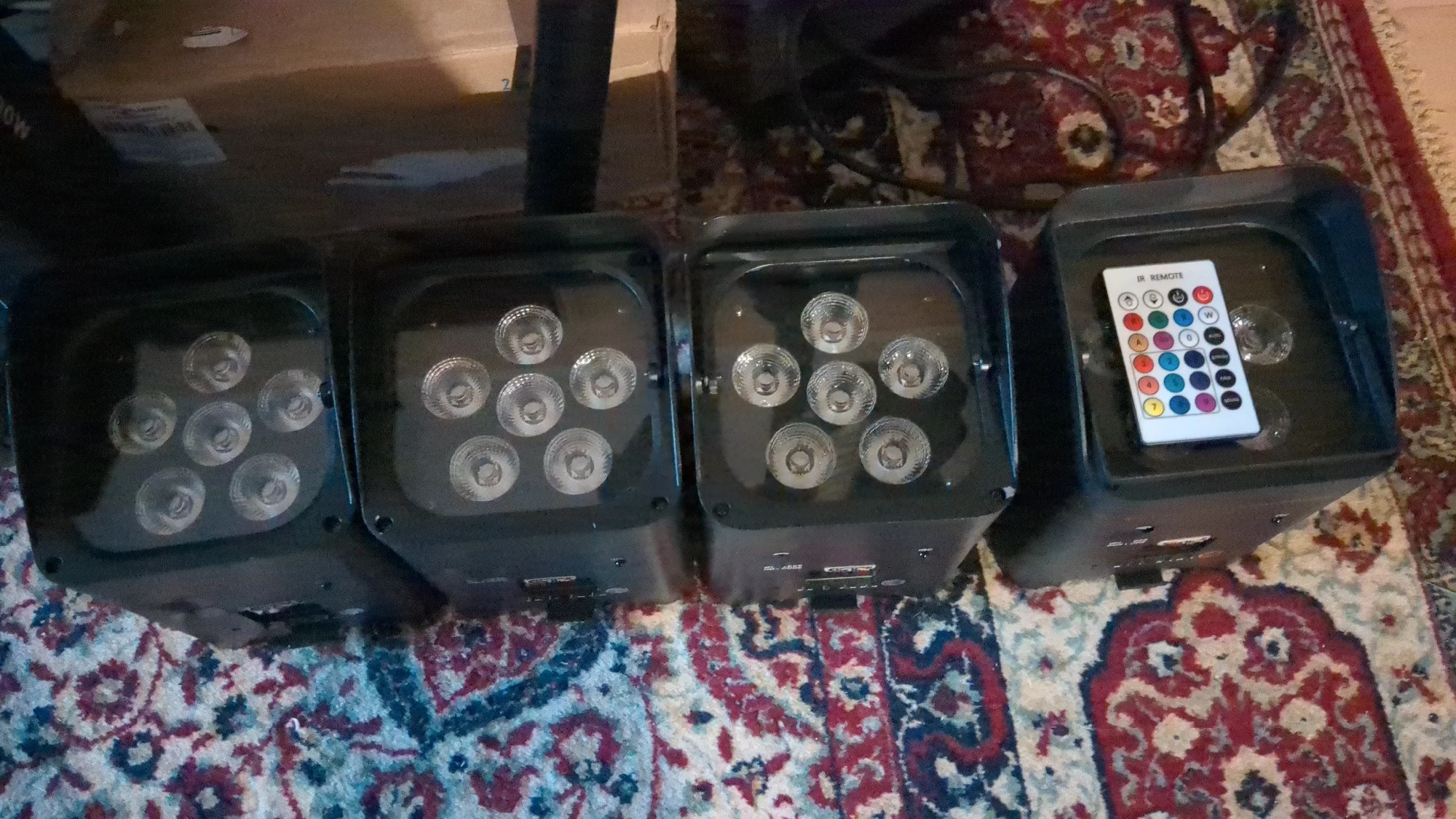 SHEHDS 4pcs 6x18w RGBWAUV LED Battery Par Wireless DMX512 Phone WIFE Wash Wall...