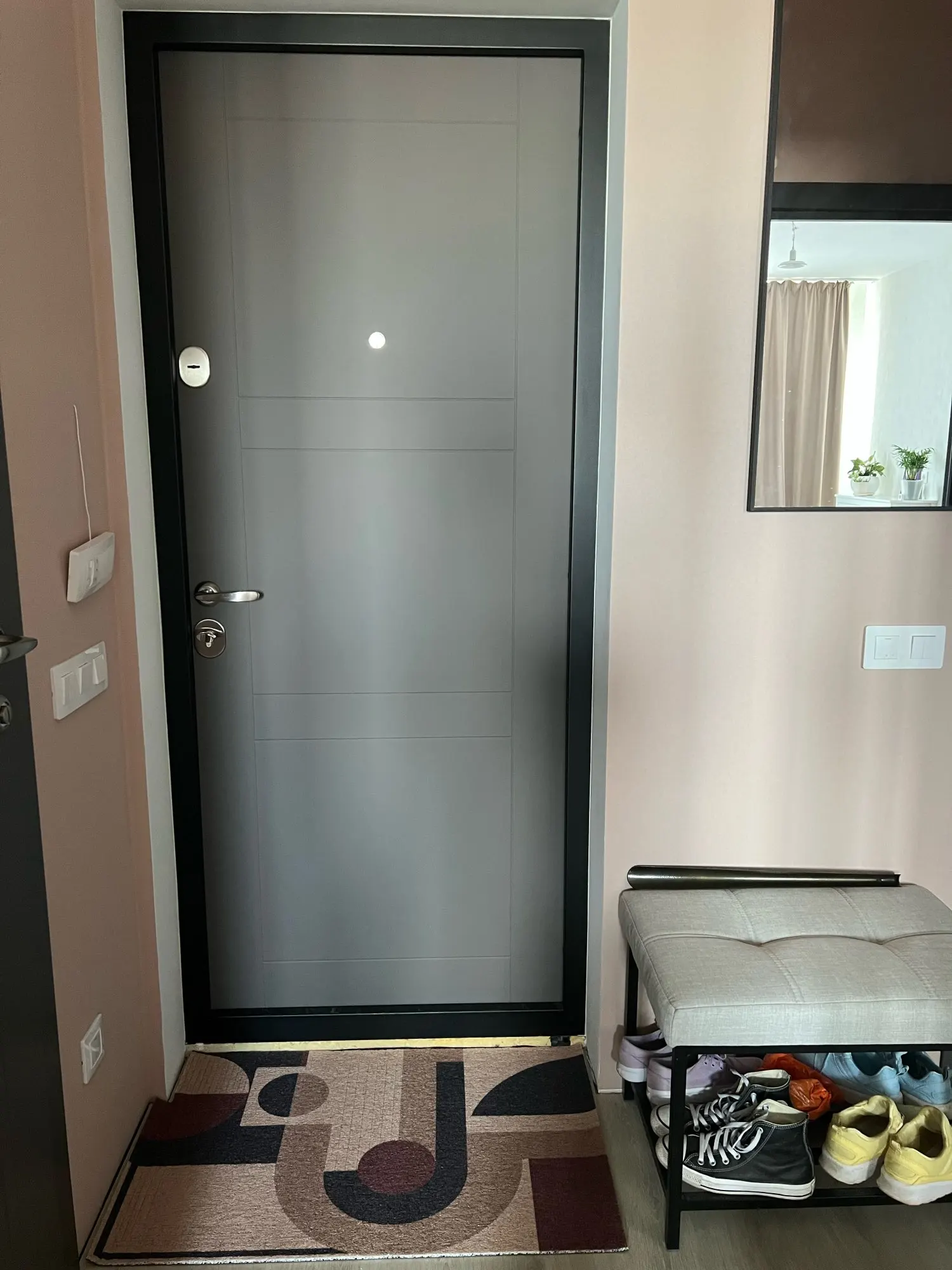 Его можно свободно разрезать на любую форму, и он подходит для внутреннего и наружного входа, прихожей, гостиной, спальни, ванной комнаты и т. д.