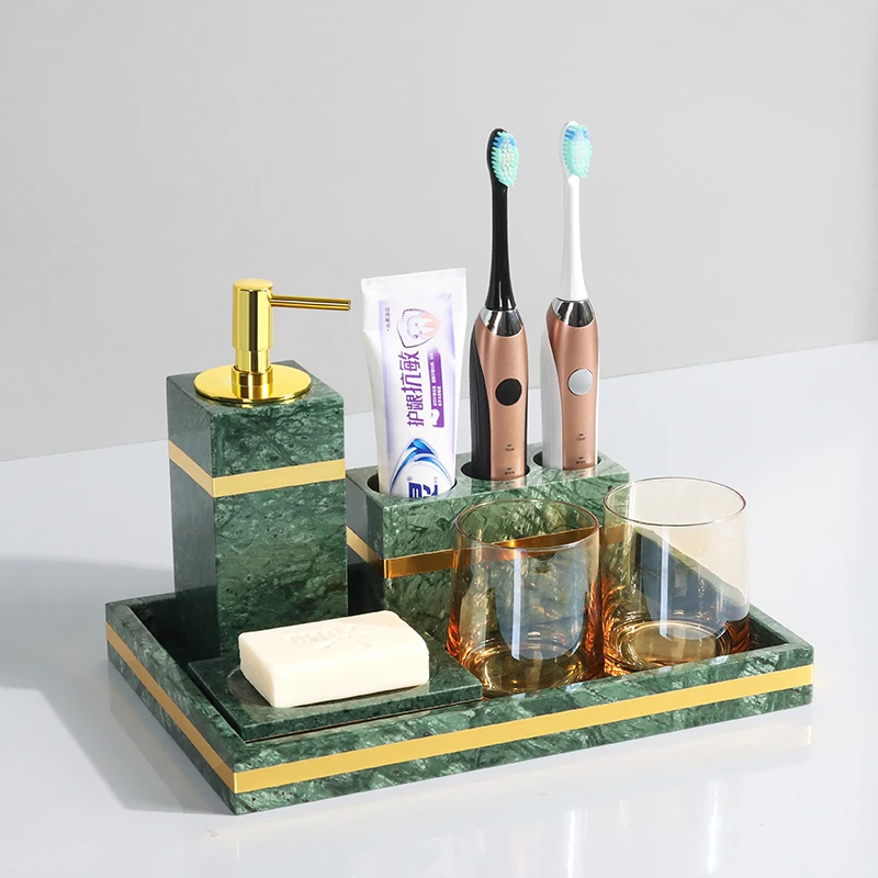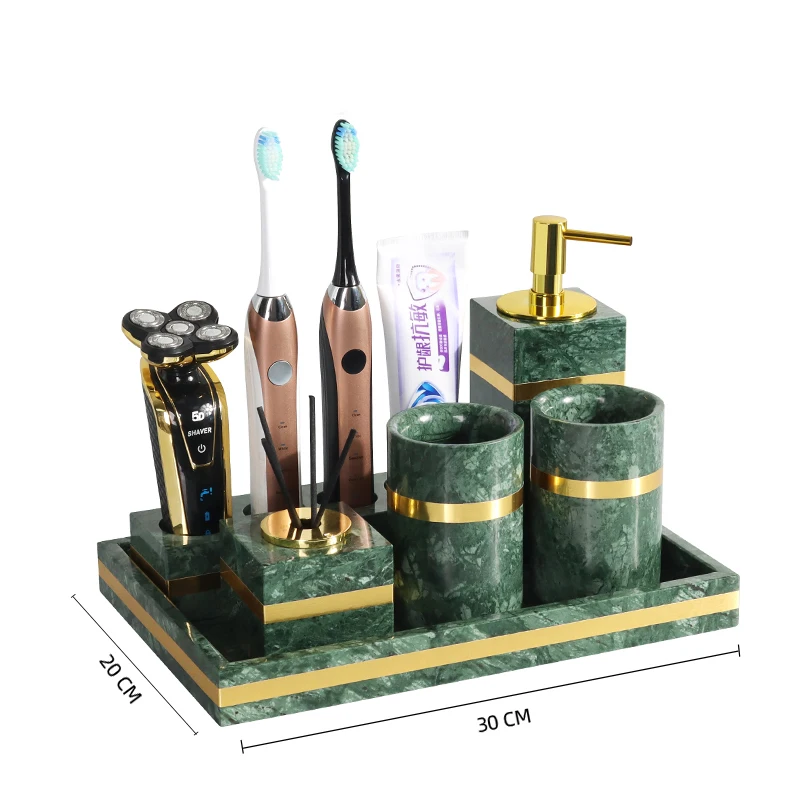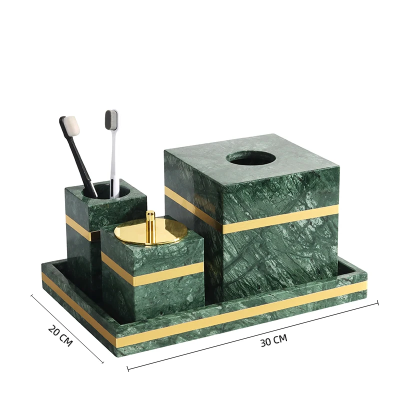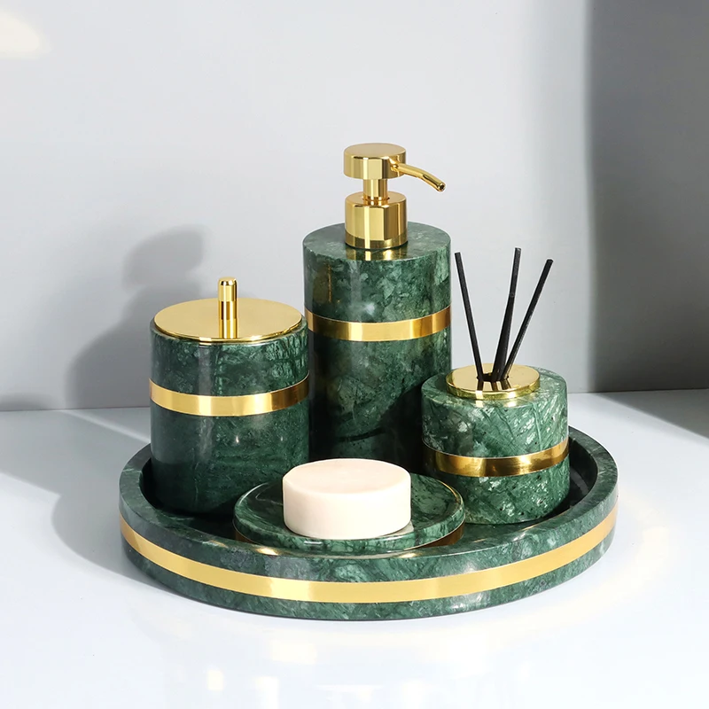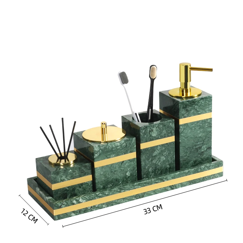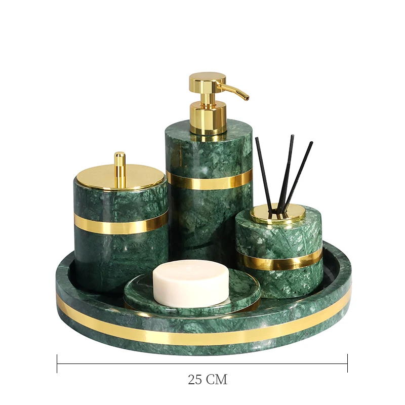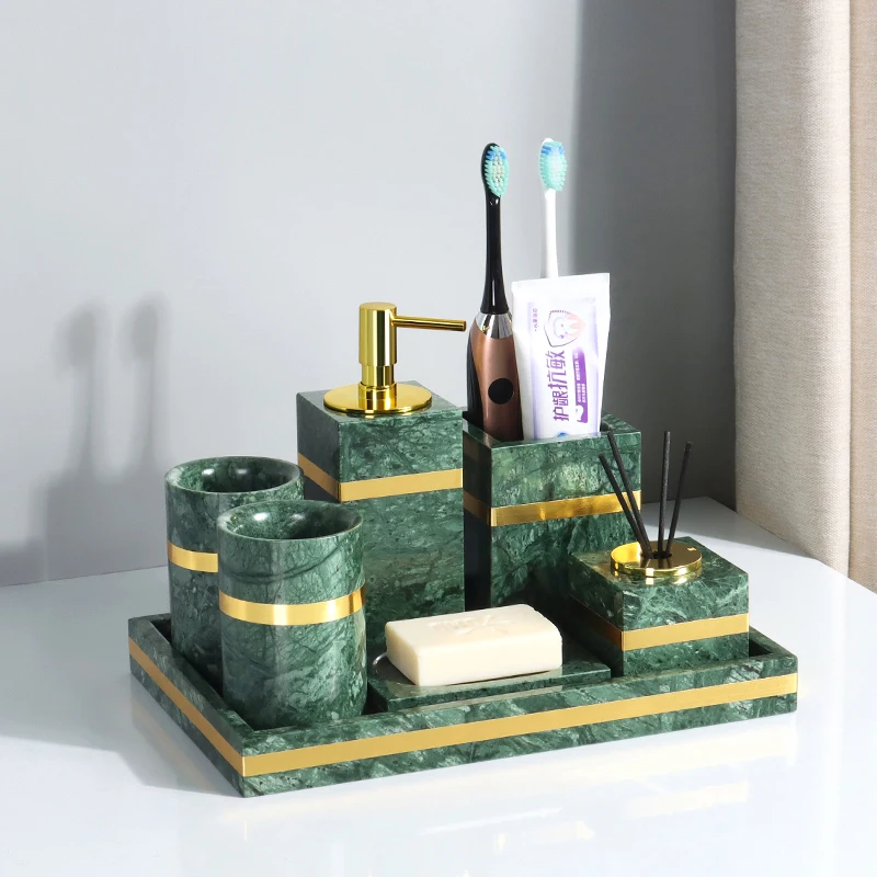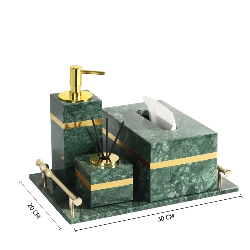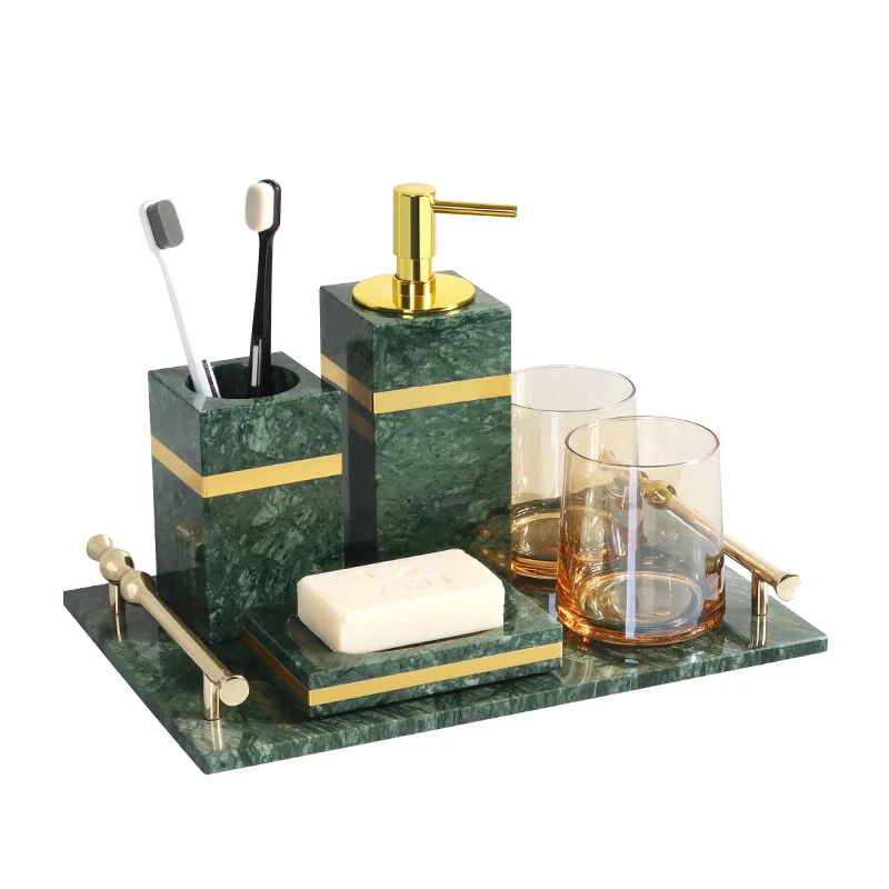 Набор аксессуаров для ванной из индийского зеленого мрамора