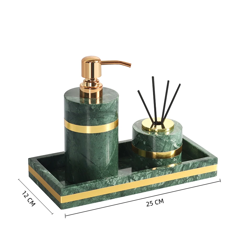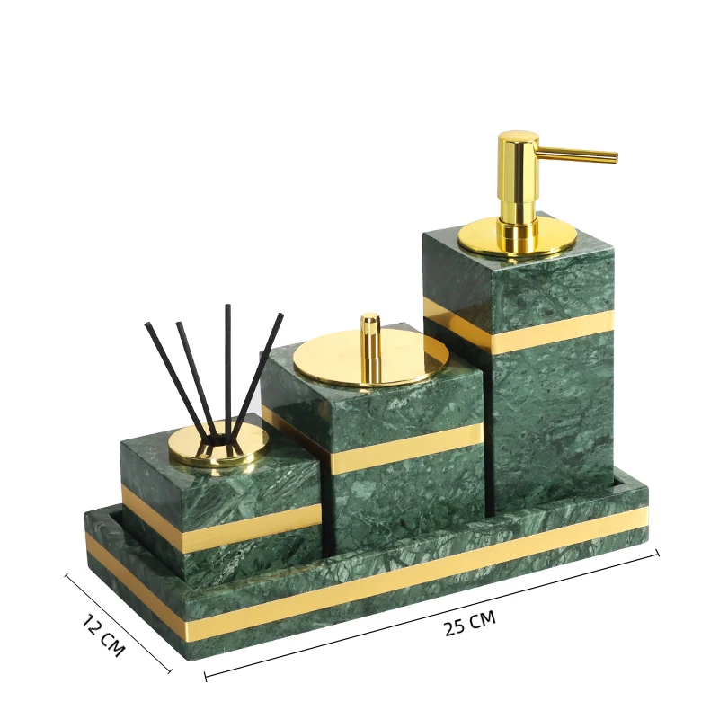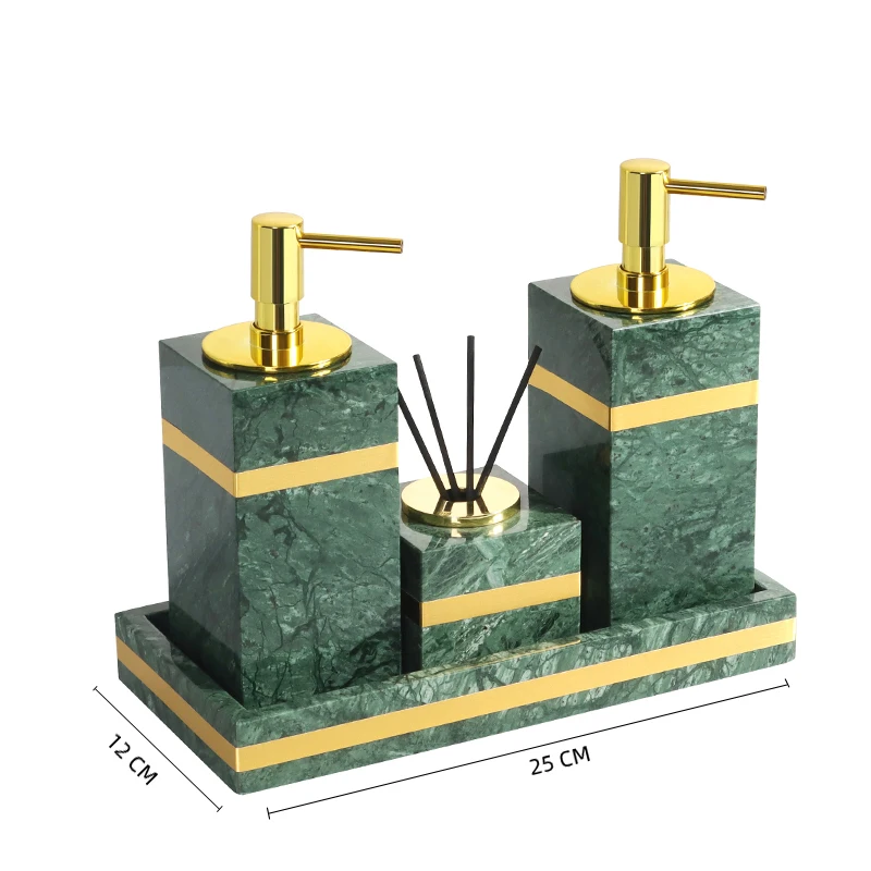 Indian Green Natural Marble Bathroom Accessories Luxury Gold Soap Dispenser...