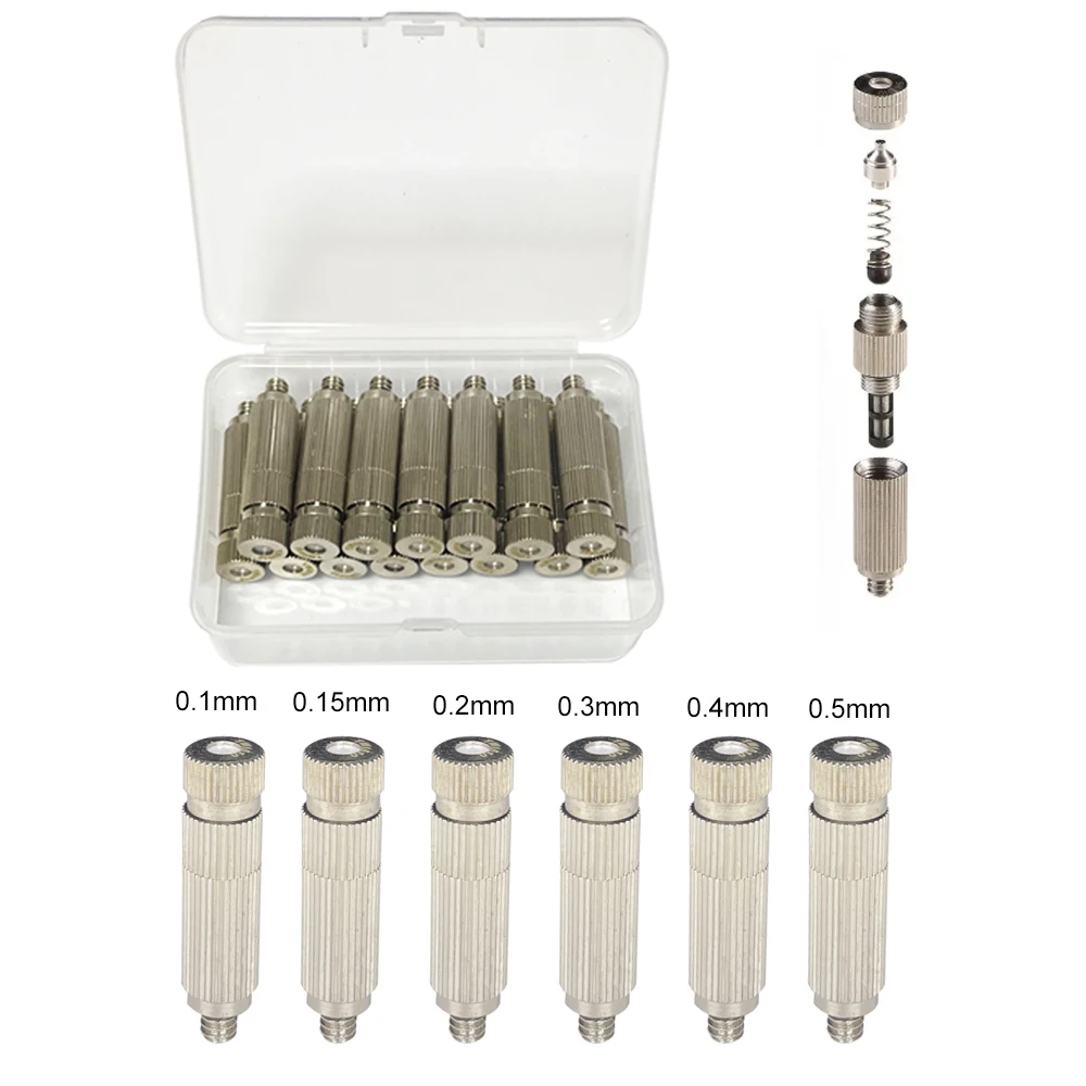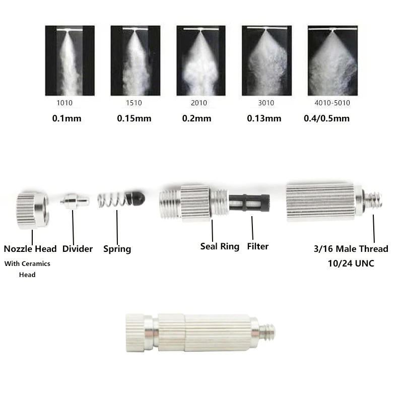 Его можно широко использовать в ландшафтном дизайне сада, заводском увлажнении, испытательном осмотре соляного тумана, искусственном тумане и других местах, необходимых для увлажнения, отверстие этого сопла пробивается прецизионным американским штамповочным станком, который обеспечивает диаметр около 0,1 мм-0,5 мм.