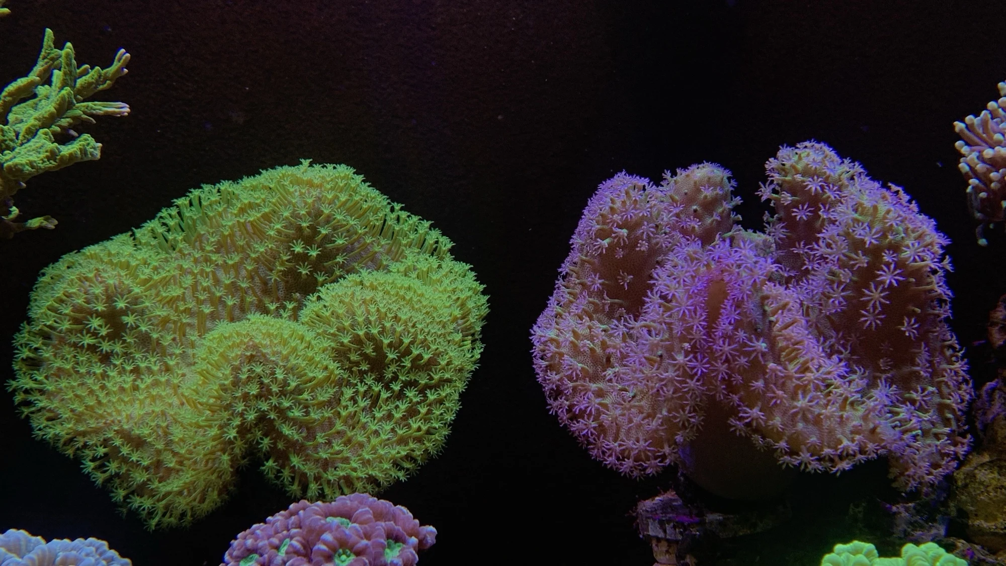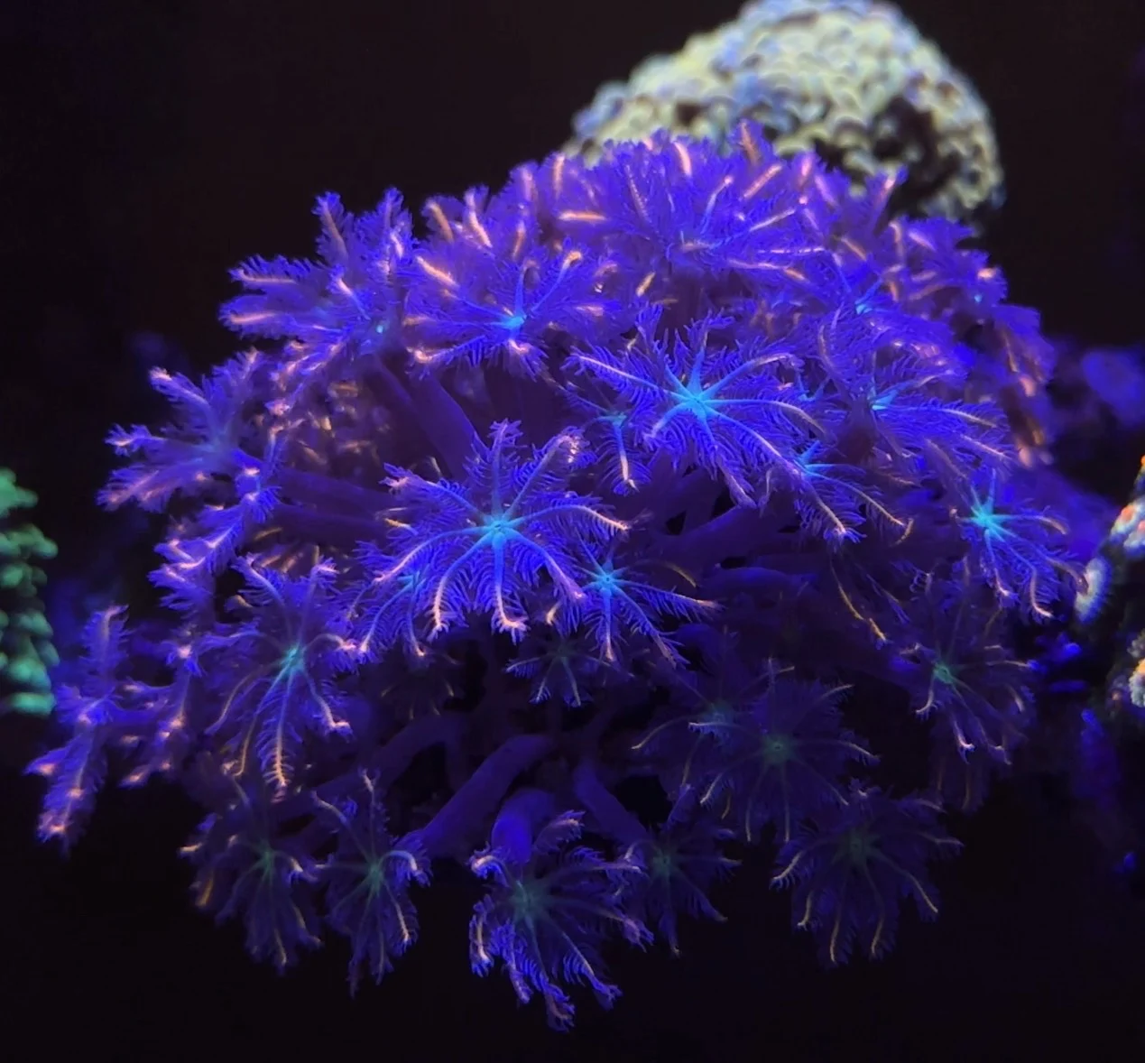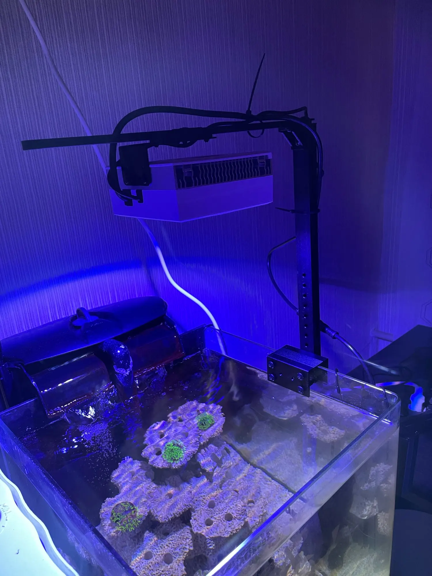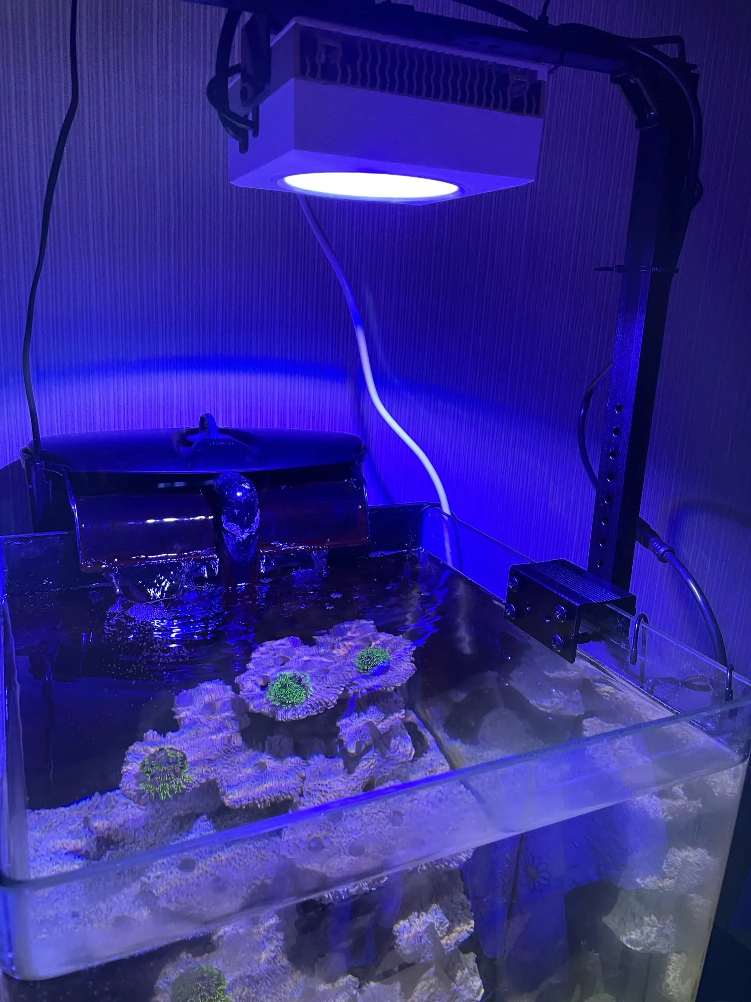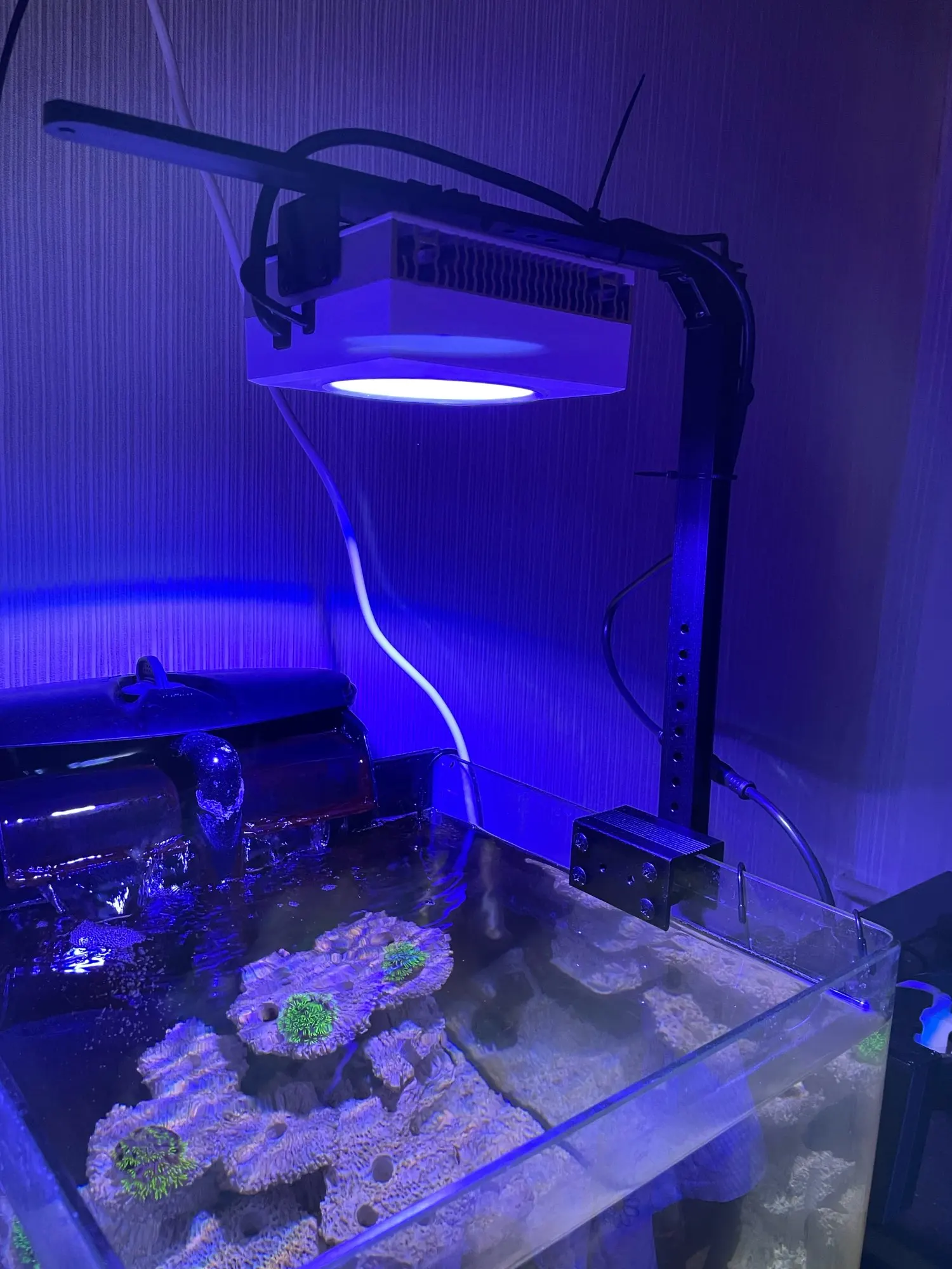 Очень быстрая доставка (4дня), кораллов пока не много, но им нравится (фото сделано с жёлтой линзой иначе на камеру все синее, в жизни не так сильно). Думаю, мягкоте норм будет. Есть несколько автоматических режимов, но можно настроить и под себя.