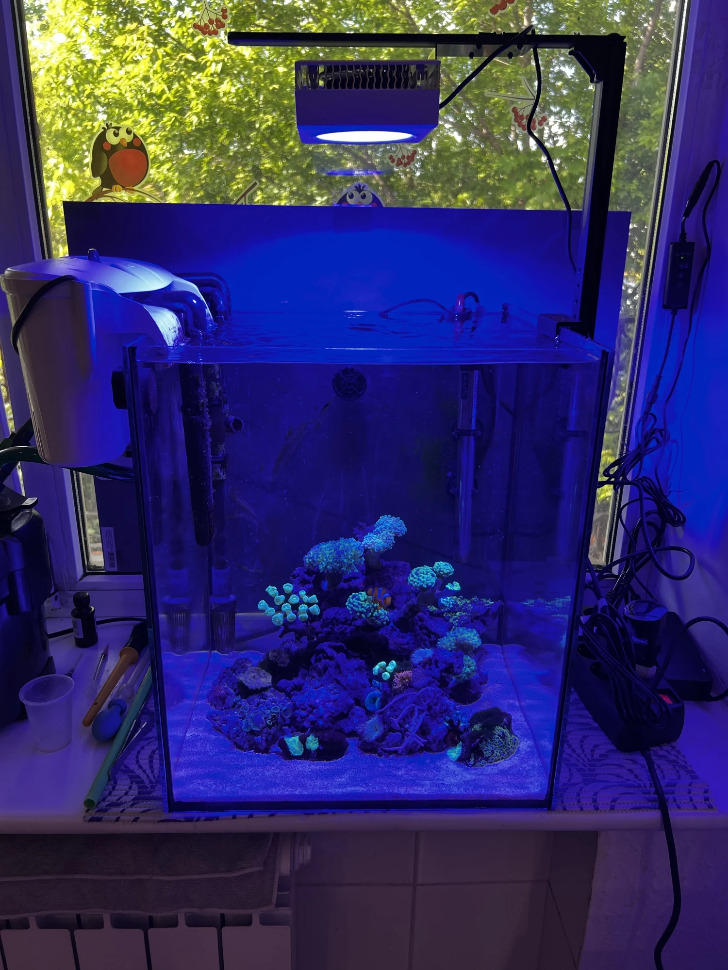 Доставка быстрая СДЕКом. Заказали 10.06 получила 16.06. Продавец общительныц. Все было отлично упаковано. Использую вот уже пол года. У меня нет требовательных кораллов, одна мягкота. Все растет. Выглядит красиво. Настроила контроллером свой режим, как мне надо. Один большой минус- шум от вентиляторов. Он существенный. Рядом спать не получится (у меня стоит рядом с кроватью). Настроила так, что бы в 21.00 уходил в ночной режим, тогда шум стихает... и до 9.00 утра. Я люблю поспать)) Днем не так слышно, перебивает шум от телевизора. Но ночью в тишине, как буд то над ухом 3 компа работают.