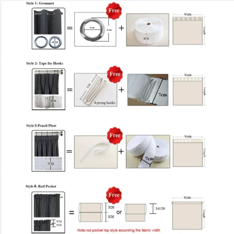 3️ Ширина занавеса = 2-кратная ширина стержня/рейки.