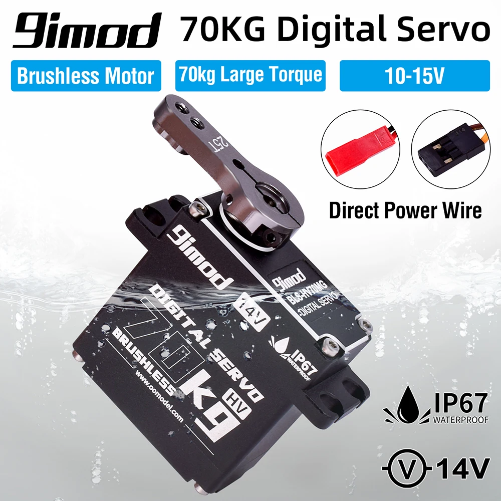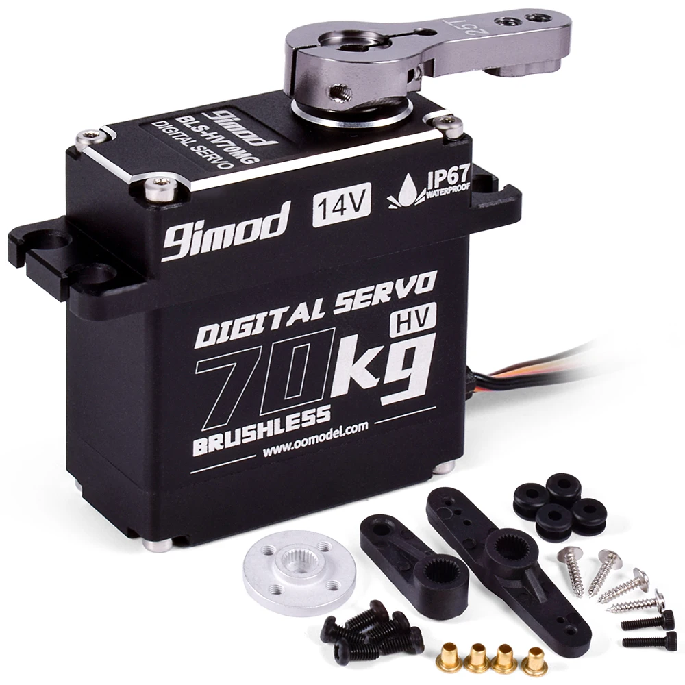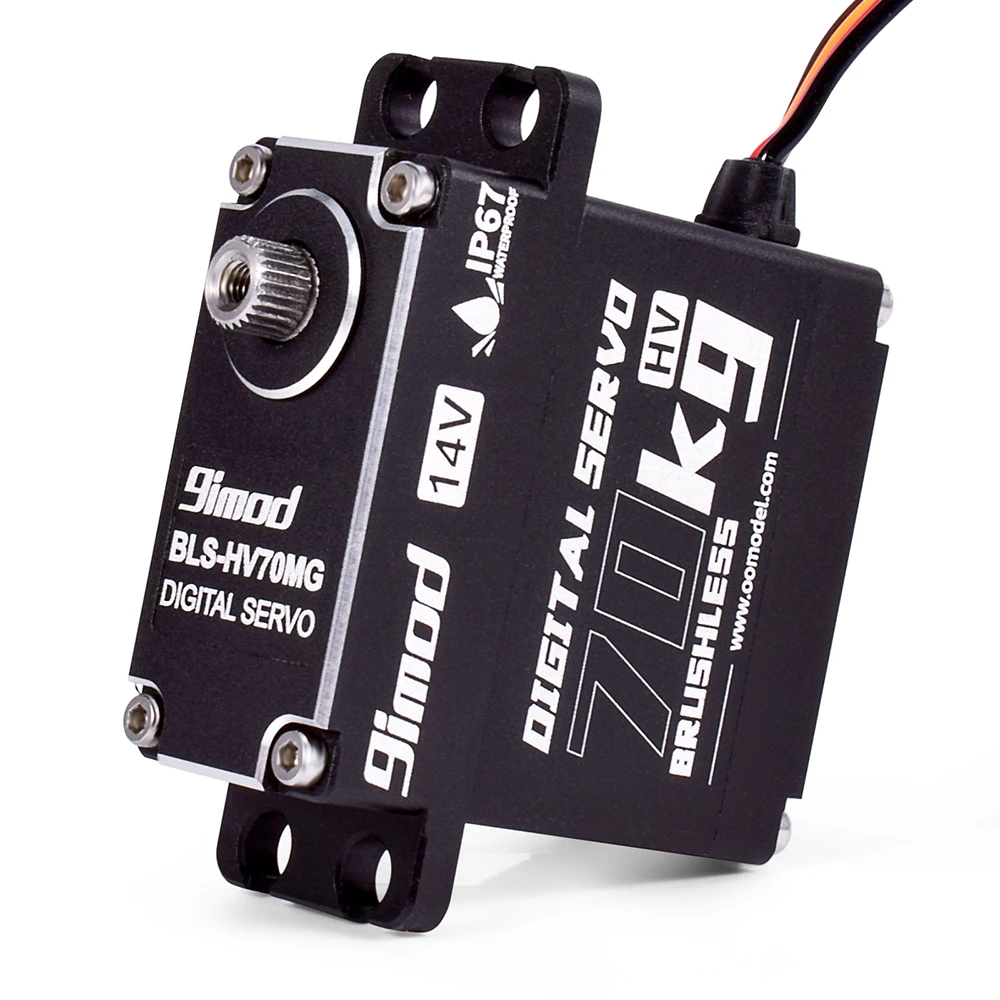 9imod BLS-HV70MG Цифровой водонепроницаемый сервопривод с большим крутящим моментом 70 кг с металлическим сервоприводом 25 т, использует бесщеточный двигатель, по сравнению с обычным сервоприводом, скорость намного выше, а реакция также быстрая, 10,0 V ~ 15V высокий диапазон рабочих напряжений.